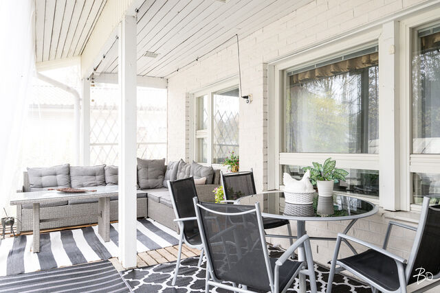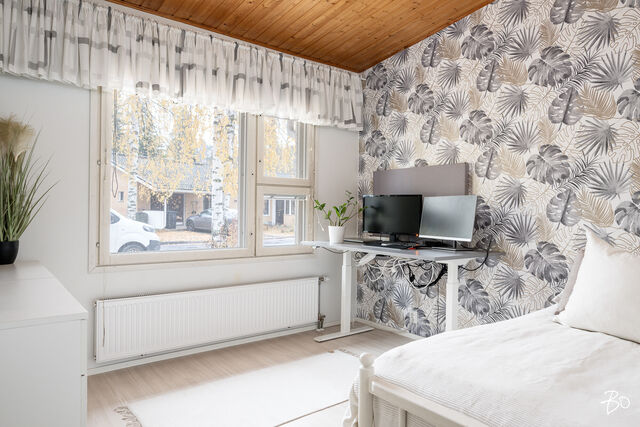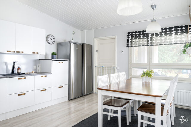 Etusivu / Pohjois-Savo / Kuopio / Kivikaari 7 1 / 1 Kivikaari 7 Litmanen, Kuopio | Omakotitalo | 5h,khh,kph,s,2wc,vh,at, työh. 259 000 € Velaton hinta 120,0 m2 Asuinpinta-ala 159,0 m2 Kokonaispinta-ala 1989 Rakennusvuosi Seuraava esittely: 30.10.2025 klo 17.00-17.30 Laajasti remontoitu koti LitmaseltaTässä yksitasoisessa omakotitalossa täyttyy monen kodinetsijän useimmat kriteerit. Rauhallinen sijainti pienen päättyvän tien varrella, hyvä pohjaratkaisu ja isoja remontteja jo takana päin. Kotiin on uusittu mm. vesikatto aluskatteineen, käyttövesiputkisto, sekä vesikiertoiset patterit. Uusi kaukolämpökeskus on asentamista vaille valmiina. Astellessasi eteiseen, aukeaa sinulle näkymä kodin olohuoneeseen ja avoimeen keittiötilaan. Tilan jakaa uudehko Tulikiven Lasse leivinuuni, joka on asennettu v. 2022. Lämpö jakautuu näin leivinuunista mukavasti oleskelutiloihin. Makuuhuoneita kodissa on neljä ja näiden lisäksi v. 1995 on entinen varastohuone muutettu työhuoneeksi. Erillisiä wc-tiloja eli toiletteja löytyy kaksin kappalein, molemmat on toki jo remontoitu. Valkoinen Topi -keittiö on vuodelta 2017. Kaikki rungot, ovet ja kodinkoneet on uusittu remontin yhteydessä. Tämän keittiön erikoisuus on 90 cm leveä induktiotaso, jossa sopii varmasti kokkailemaan koko perheelle evästä. Kaappi- ja laskutilaa on reilusti. Mikroaaltouuni on integroitu. Kylpyhuone ja saunaosasto on saneerattu v. 2021. Kylpyhuoneesta löytyy tunnelmavalaistusta, tuplasuihkut ja saunassa lempeät löylyt tarjoilee Tulikiven Huurre -kiuas. Saunasta pääset vilvoittelemaan omalle terassille. Takapihalla on rauhalliset puistometsäiset maisemat, sekä sopivasti tilaa niin pihapeleille kuin puutarhanhoidolle.Koulut, päiväkodit ja peruspalvelut löytyvät turvalliselta kävelyetäisyydeltä. Kulkuyhteydet moottoritielle on hyvät, keskustaan ja Matkukseenkin ajelet täältä nopeasti. Koiran kanssa pääset näppärästi lenkille suoraan takapihalta, astumatta asfaltille. Etätyöt hoituvat valokuituyhteydellä, Global Connect tai Valoo. Avaimetkaan ei enää unohdu, kun ulko-ovessa on Yale Doormanin älylukko.Ajatko tänä talvena autosi jo omaan autotalliin? Kuntotarkastus tehty 23.10.2025, Sustera.Lisätiedot; Roope Puurunenroope@bo.fi050 554 4542Kiinteistönvälittäjä, LKV, LVV, partner Kiinnostaako tämä kohde?Ota meihin yhteyttä tai jätä viesti Roope Puurunen kiinteistönvälittäjä LKV, LVV, partner 050 554 4542 roope@bo.fi Tutustu välittäjään Varaa aika kalenteristani RakennusRakennusvuosi (aloitettu)1989Käyttöönottovuosi1989RakennusmateriaaliPuu, tiiliKattotyyppiHarjakattoKatePeltikateKaton kuntoHyväAsuinpinta-ala120,0 m2 (159,0 m2)Lisätietoja pinta-alastaHuoneistoala 120 m2, kerrosala 159 + 37m2.Kerrokset1Muut tilat39,0 m2LämmitysVesikiertoinen patterilämmitys, uuni/takka. Vesikiertoiset patterit uusittu v. 2023, uusi kaukolämpökeskus on valmis asennettavaksi.Lämmitysjärjestelmän kuvausKauko, puuHuoneluku5h,khh,kph,s,2wc,vh,at, työh.Keittiön muut varusteetLiesikupu, mikroaaltouuni, astianpesukone, kiinteät valaisimetLiesiInduktioliesiKeittiön työtasojen materiaaliLaminaattiKeittiön lattiamateriaaliVinyyliKeittiön seinien materiaaliMaalattu, lasikuitutapettiKylpyhuoneen varustusLattialämmitys, suihku, kiinteät valaisimetKylpyhuoneen lattiamateriaaliLaattaKylpyhuoneen seinämateriaaliKaakeliSaunaAsunnossa on saunaSaunan kuvaus, lisätiedot ja varustusTulikiven kiuas "Huurre", valkovahattu haapapaneeli, kuusi kelo-paneeli ja kuusilankkulauteet.Saunan lattiamateriaaliLaattaSaunan seinämateriaaliPuuWC-tilojen kuvausVarustus: lattialämmitys, lattiakaivo, peilikaappi, bidee-suihkuLukumäärä: 2Lattiamateriaalit: laattaSeinämateriaalit: kaakeliKodinhoitohuoneVarustus: pesukoneliitäntä, lattiakaivoLattiamateriaalit: laattaSeinämateriaalit: maalattuMakuuhuoneen kuvaus, lisätiedot ja varustusLukumäärä: 4Lattiamateriaalit: laatta, laminaattiSeinämateriaalit: maalattu, tapettiOleskelutilojen kuvaus, lisätiedot ja varustusLattiamateriaalit: vinyyliSeinämateriaalit: maalattu, tapettiTakkatiedotTakkaMuut säilytystilatVaatehuoneTehdyt korjauksetUusi lämmönvaihdin on odottamassa, asentamista vaille siis valmiina. 2025 Kaski -ulko-ovi uusittu 2024 Yläpohjan lisäeristeet 2023 Yale Doorman älylukko vaihdettu etuoveen 2023 Takapiharemontti + pihavalo, kasvihuone + pihavarasto, "terassin" jatko 9/2023 Käyttövesiputket ja vesikiertoiset patterit uusittu 2022 Leivinuuni uusittu, Tulikivi "Lasse" 2022 Yhden makuuhuoneen lattian laatoitus 2022 Viemärit huuhdeltu ja putsattu 2022 Sadevesiviemärit huuhdeltu ja putsattu 2021 Etupihalle asfalttimurske, uusi pakastin 2021 Sauna, kylpyhuone, khh ja wc remontti 2020 Sisäkaton maalaus, seinien maalaus, eteisen lattian uusinta + seinät, etupihan kuusen kaato 2019 Vesikattoremontti (+ aluskate) 2018 Isomman wc remontti 2018 Etupihan paloposti + palokatko autotalli-lämmönjakohuone 2018 Ison wc:n viemärin kuvaus, kaivon paikannus, huuhtelu + putsaus 2017 Keittiöremontti, kaikki uusittu. Topi -keittiöt. (kodinkoneet, keittiön sähköt, kaapinovet, rungot jne.) 2017 Makuuhuoneiden lattiat uusittu, seinät tasoitettu, maalattu, kattoihin MDF -paneelit, + työhuoneen takaseinälle liukuovet. 2017 Vinyylilankkulattiat asennettu, vanha koivuparketti alla. 1995 Entinen varastohuone muutettu työhuoneeksi, tästä löytyy luvat ja loppukatselmuspöytäkirja. Kauppaan ei kuuluPolttopuut.KuntoHyväLisätietoa kunnostaKts. kuntotarkastusraportti KiinteistötiedotKiinteistötunnus297-32-128-4-L1TyyppiTonttiTontin tyyppiTasamaatonttiTontin koko855,00 m2Tontin omistusVuokrattuTontin vuokrasopimus päättyy30.04.2039Tontin vuokra456,00 €Tontin vuokraajaKuopion kaupunkiPanttikirjat246 587,00 €Lisätietoja tontistaTie perilleVesijohtoKunnanViemäriKunnanRakennusoikeus, e-luku0.30 AsumiskustannuksetLämmitys100,00 €Kiinteistövero461,34 €Muut maksut / lisätietoa maksuistaHulevesimaksu 40 euroa/vuosi. Talvikunnossapi