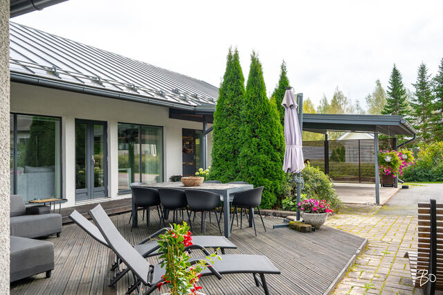 Etusivu / Varsinais-Suomi / Raisio / Jokirannankatu 26 1 / 1 Jokirannankatu 26 Ihala, Raisio | Omakotitalo | 5-6h, k, kph/wc, wc, khh, kph, s, 2 ak, var, kellari 595 000 € Velaton hinta 182,0 m2 Asuinpinta-ala 2007 Rakennusvuosi Tyylikäs kivitalokoti huippusijainnilla Vesa Arosuon suunnittelema Lammi-kivitalo tarjoaa arkkitehtuuria, laatua ja toimivuuttaTervetuloa tutustumaan tähän poikkeuksellisen hienoon kotiin, joka yhdistää harkitun arkkitehtuurin, ajattoman tyylin ja modernit päivitykset. Vuonna 2007 valmistunut Lammi-kivitalo on Vesa Arosuon suunnittelema: pohjaratkaisu on toimiva, tilat avarat ja valoisuus vertaansa vailla.Koti on kokenut kattavan päivityksen vuosina 20222023. Uudistuksia ovat muun muassa maalämpöjärjestelmä, seinä- ja lattiapintojen uusiminen sekä kylpyhuoneen nykyaikaistaminen. Kokonaisuus on nyt moderni, energiatehokas ja huoliteltu.Asuinpinta-alaa on runsaasti ja käytännölliset säilytystilat jatkuvat myös kellarikerrokseen, josta löytyy monipuolisia lämpimiä tiloja eri käyttötarkoituksiin. Kodissa on neljä reilun kokoista makuuhuonetta, jotka sopivat hyvin niin isommalle perheelle kuin etätyöskentelyynkin.Kodin sydämenä toimii korkea ja valoisa olohuone, jonka näyttävä, kaksisuuntainen takka luo tunnelmaa ympärilleen. Avara avokeittiö saarekkeineen kutsuu kokkaamaan ja seurustelemaan se on kuin luotu yhteisiin hetkiin.Ulkotilat on suunniteltu ja hoidettu huolella: aurinkoinen terassi ja suojaisa piha tarjoavat omaa rauhaa ja tilaa rentoutua. Kahden auton katos tuo arkeen sujuvuutta, ja tontti itsessään on hyvin hoidettu kokonaisuus.Sijainti on erinomainen rauhallinen ja viihtyisä alue, josta on loistavat kulkuyhteydet niin Turkuun, Raisioon kuin ohikulkutiellekin. Lähistöltä löytyvät myös koulu ja päiväkoti, mikä tekee arjesta mutkatonta.Tämä koti on nähtävä paikan päällä tervetuloa ihastumaan!Esittelen tätä kotia Sinulle mielelläni.Sovitaan sinulle sopiva esittelyaika.Anna-Maija Kasvi LKV, KTM0404105244anna-maija.kasvi@bo.fihttps://bo.fi/henkilo/anna-maija-kasvi/Facebook: http://www.facebook.com/annamaijabolkvInstagram: http://www.instagram.com/annamaijabolkv/ Kiinnostaako tämä kohde?Ota meihin yhteyttä tai jätä viesti Anna-Maija Kasvi kiinteistönvälittäjä LKV, KTM, partner 040 410 5244 anna-maija.kasvi@bo.fi Tutustu välittäjään Varaa aika kalenteristani RakennusKäyttöönottovuosi2007RakennusmateriaaliKiviRakennusmateriaalien kuvausLammi kivitaloKattotyyppiHarjakattoKatePeltiAsuinpinta-ala182,0 m2 (182,0 m2)Lisätietoja pinta-alastaRakennuslupapiisrustusten mukainen huoneistoala on 182 m2, kerrosala 220 m2 ja kokonaisala 285 m2. Huoneistoalassa ei ole mukana kellarin tiloja. Pinta-ala ei ole tarkistusmitattu.Kerrokset1Muut tilat0,0 m2LämmitysMaalämpö loppukatselmoitu 2023Lämmitysjärjestelmän kuvausMaalämpöHuoneluku5-6h, k, kph/wc, wc, khh, kph, s, 2 ak, var, kellariKeittiön kuvaus, lisätiedot ja varustusUpea avokeittiö osana oleskelutiloja. Varustelu: Festivo jääkaapi ja pakastin, induktioliesi, uuni, mikroaaltouuni, astianpesukone, viinikaappi, kaapistot, saareke.Keittiön lattiamateriaaliParkettiPesutilojen kuvaus, lisätiedot ja varustusKodissa on kaksi kylpytilaa. Pääkylpyhuone on remontoitu tyylikkäässti 2022-2023, 2 suihkua. Kylpyhuone/WC: suihku, suihkuseinät, wc-istuin, allaskaappi, allas, peili, liiketunnistinvalot.Kylpyhuoneen lattiamateriaaliLaattaKylpyhuoneen seinämateriaaliKaakeliSaunaAsunnossa on saunaSaunan lattiamateriaaliLaattaSaunan seinämateriaaliPuuWC-tilojen kuvausTunnelmallinen erillinen wc. Varustelu: wc-istuin, allaskaappi, allas, hana, liiketunnistinvalot.Lattiamateriaalit: laattaKodinhoitohuoneVarustelu: laatan päälle asennettu mittatilausmatto, tasot, kaapistot, allas, pyykinpesukoneliitäntä, kuratralli.Lattiamateriaalit: laattaMakuuhuoneen kuvaus, lisätiedot ja varustusPäämakuuhuoneessa kokolattiamatto, muissa parkettilattia.Oleskelutilojen kuvaus, lisätiedot ja varustusUpea kahteen suuntaan avautuva varaava takka. Suuret ikkunat suojaisalle terassille.Lattiamateriaalit: parkettiSeinämateriaalit: maalattuMuut tilatEteisessä laattalattia, jonka päälle asennettu mittatilausmatto. Kellari jaettu kahteen tilaan. Toisessa tilassa laminaattilattia, toisessa tilassa betonilattia.TulisijaNuohottu 01/2026TakkatiedotTakkaTehdyt korjaukset2022-2023: -maalämpö asennettu -ilmalämpöpumppu -kodin sisäseinät ja -katot maalattu -parketit hiottu ja lakattu (julkitilalakka) -spottivalot vaihdettu ledeiksi -kellarin portaat uusittu -pääkylpyhuone uusittu vesieristeineen (vesieristys, laatat, suihkut, lasiovi) -erillinen wc: uusittu peili, allas, hana, allaskaappi, liiketunnistinvalaistus -wc/kph: uusittu taso, lavuaari, hana, liiketunnistinvalaistus -kodinhoitohuone: taso uusittu, lattiaan mittatilausmatto (Sepri) -pukuhuone: istumataso uusittu, lattiaan mittatilausmatto (Sepri) -päämakuuhuone ja vaatehuone: kokolattiamatto (Sepri) -keittiö: saarekkeen pinta maalattu ja asennettu lasitaso (Kaune) -eteinen: istuintaso uusittu, lattiaan mittatilausmatto (Sepri) -terassi öljytty -uusittu pistorasioita ja katkaisijoita 2025: -maalattu eteinen, aula, olohuone, takka -öljytty saunan seinät ja lauteetMuuta kauppaan kuuluvaaIlmalämpöpumppu, roska-astiat, kiinteät valaisimet, kiinteät vaatekaapitKauppaan ei kuuluIrtainKuntoHyväLisätietoja energiatodistuksestaMyyjä teettää energiatodistuksen ennen kaupantekoa KiinteistötiedotKiinteistötunnus680-7-7033-2TyyppiTonttiTontin koko1 048,00 m2Tontin omistusOmaPanttikirjat300 000,00 €Lisätietoja tontistaTie perilleVesijohtoKunnanViemäriKunnanLisätietoja rakennusoikeudestaRakennusoikeus on käytetty AsumiskustannuksetMuut maksut / lisätietoa maksuistaSähkö kulutuksen mukaan (Nykyisen omistajan vuosikulutus olut n. 14500 kWh. Kulutus saattaa vaihdella eri ihmisillä kulutustottumusten mukaan.). Vesi ja jätevesi kulutuksen mukaan. Jätehuolto sopimuksen mukaan. Kiinteistövero 781,69