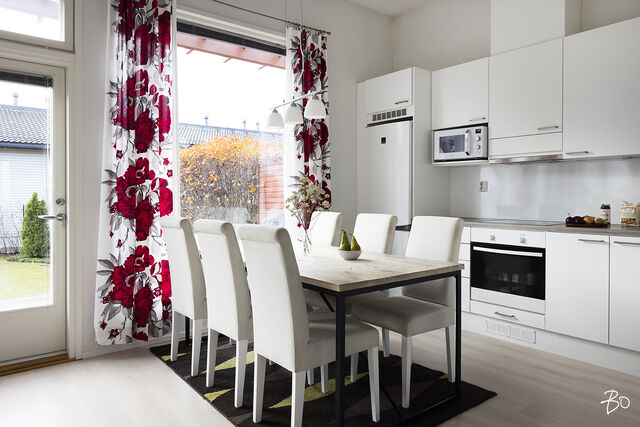Etusivu / Uusimaa / Vantaa / Turnajaistie 5 1 / 1 Turnajaistie 5 Kannisto, Vantaa | Rivitalo | 3h+k+s 318 000 € Velaton hinta 70,0 m2 Asuinpinta-ala 378,00 €/kk Hoitovastike 2015 Rakennusvuosi Hyväkuntoinen yksitasoinen rivitalon päätykolmio sijaitsee omalla tontilla rauhallisella Kanniston pientaloalueella.Tässä kodissa on hyvä pohjaratkaisu ja tehokkaat neliöt. Korkeiden huoneiden ansiosta koti on avara ja tilava. Asunto koostuu kahdesta makuuhuoneesta, olohuoneesta, avokeittiöstä ja saunaosastosta. Lähes lattiaan ulottuvat ikkunat olohuoneessa avautuvat viihtyisälle takapihalle, jonne on käynti olohuoneeesta. Kesähelteillä asumismukavuutta lisää viilentävä ilmalämpöpumppu.Säilytystilaa on runsaasti huoneiston kaapistoissa, ulko-oven vieressä sijaitsevassa kylmässä ulkovarastossa ja yhtiön tarjoamassa lämpimässä varastotilassa.Samalla myydään myyjän omistamat kaksi erillisillä osakkeilla olevia piha-autopaikkoja (AP 15 ja AP16) hintaan 1000 euroa /kpl.Alue on rauhallinen ja ulkoilumahdollisuudet ovat hyvät ja monipuoliset.Tervetuloa tutustumaan tähän valoisaan ja kauniiseen kotiin!Katriina Kuusisto, LKV, KiAT, IAT040 505 3634katriina.kuusisto@bo.fi Kiinnostaako tämä kohde?Ota meihin yhteyttä tai jätä viesti Katriina Kuusisto kiinteistönvälittäjä LKV, KiAT, IAT, partner 040 505 3634 katriina.kuusisto@bo.fi Tutustu välittäjään Varaa aika kalenteristani HuoneistoOsakkeet1777-1974HallintamuotoAsunto-osakeyhtiöHuoneluku3h+k+sKerros/Kerroksia1/1Asuinpinta-ala70,0 m2Muut tilat0,0 m2Lisätietoja pinta-alastaPinta-ala ei ole tarkistusmitattu Yhtiöjärjestyksen mukainen. Isännöitsijäntodistuksen mukainen. Toimeksiantajan ilmoittama.NäkymätHuoneiston takapihalleKeittiön kuvaus, lisätiedot ja varustusLattia: laminaatti Seinät: maalattu jääkaappipakastin (Rosenlew), astianpesukone (Rosenlew), liesituuletin, keraaminen liesitaso, integroitu uuni, työtasot lamminaattiPesutilojen kuvaus, lisätiedot ja varustusLattia: laatta Seinät: kaakeli wc-istuin, suihku, suihkuseinä, pesukoneliitäntä, peilikaappi, allaskaappi, lattialämmitys, bideesuihkuSaunan kuvaus, lisätiedot ja varustusLattia: laatta Seinät puupaneeli Katto paaneloitu kuituvalot, lattialämmitys, Harvian Cilindro pylväskiuas, lasioviMakuuhuoneen kuvaus, lisätiedot ja varustusLattia: tammilautaparketti (nordic white) Seinät: maalattu LiukuovikaapistotLukumäärä: 2Oleskelutilojen kuvaus, lisätiedot ja varustusLattia: laminaatti Seinät: maalattu isot ikkunat takkavarausMuut säilytystilatUlkovarasto, muu erillinen varastoMuutostyöt huoneistossaTerassin rakentaminen, viilentävän ilmalämpöpumpun asentaminen, luvat saatu taloyhtiöltä.KuntoHyväTakkatiedotTakkavaraus Kiinteistö- ja yhtiötiedotYhtiön nimiAsunto Oy Vantaan HaraldTontin omistusOmaTontin koko5 190,00 m2Käyttöönottovuosi2015RakennusmateriaaliPuuKattotyyppiHarjaKateTiiliLämmitysjärjestelmäKaukoEnergiatodistusKylläLisätietoja energiatodistuksestaVoimassaolo 19.08.2025 astiEnergialuokkaC2013Tehdyt korjaukset ja remontit2025 palovaroittimien uusiminen, 2024 sähköautojen latauskartoitus, väliaidan korotus, valokatteet ja etuoven kaiteiden maalaus, pergolaoiden korjaus, 2023 märkätilojen lattiakaivojen tiivistysten ja vesieristysten tarkastus, 2022 pergoloiden tarkastus, 2021-2022 paloikkunoiden tarkastukset ja tiivistyskorjaukset, uudet jäteastiat (metalli/lasi), 2020 jäteastioiden jako, Ylä- ja alapohjien takuukorjaukset, 2019 ylä- ja alapohjien kuntotarkastus, 2016 terassienrakentaminenTiedossa olevat tulevat korjaukset/remontit2025 katon puhdistus, salaojien tarkastus, 2025-2026 sähköautojen latauskartoituksen mahdolliset jatkotoimenpiteet, 2026 IV-kanavien nuohous ja ilmanvaihdon tasapainotus, 2026-2027 rakennusten ulkoseinien huoltomaalausSähköpistokepaikkoja21Lainat47 368,42 €Kiinnitykset2 425 013,00 €IsännöitsijäFluxio Isännöinti Oy Toivo Tapaila 010 339 0533KiinteistönhoitoHuoltoyhtiöYhtiön tilat ja varusteluKellarikomero, kaapeli-tv, huoneistokohtaiset varastot. Koneellinen ilmanvaihto lämmöntalteenotolla Muita tietojaPalvelutAlepaKouluKanniston koulu (1-8 luokat)PäiväkotiKanniston päiväkotiLisätietoa kaavoituksestaVantaan kaupunkiVapautuuSopimuksen mukaanLisätietoa palveluistaErinomaiset liikunta- ja ulkoilumaastot AsumiskustannuksetHoitovastike378,00 €/kk (5,40 €/m2)Erityisvastike70,00 €Yhtiövastike yhteensä448,00 €Vesi29,00 €/hlö/kkAutopaikka67,50 €/kkMuut maksut / lisätietoa maksuistaVesimaksuennakko 29,00 /hlö/kk Vedestä ja jätevedestä suoritetaan eri korvaus, jonka suuruuden määrää yhtiön hallitus huoneistokohtaisen vedenmittauksen perusteella. Autopaikkamaksu on 33,70 /kk/ autopaikka. Yhtiökokous 14.5.2025 päätti antaa hallitukselle valtuudet periä enintäänkaksi ylimääräistä hoitovastiketta (voimassa seuraavaan varsinaiseen yhtiökokoukseen asti). Käyttösähkö kulutuksen mukaan / oman sähkösopimuksen mukaisesti. Kotivakuutusmaksut omien sopimusehtojen mukaisesti. Varainsiirtovero 1,5 % velattomasta kauppahinnasta. HintaMyyntihinta318 000,00 € (4 542,86 €/m2)Velaton hinta318 000,00 € (4 542,86 €/m2)MaksutapaKäteinen. Sinua voisi kiinnostaa Asunnon hinta-arvio ja arviokäynti Asunnon hinta-arvio ja arviokäynti Mitä hinta-arvio maksaa tai miten arviokäyntiä varten kannattaa valmistautua? Katso vastauksemme usein kysyttyihin ky… Sneak Peek® Sneak Peek® Sneak Peek® -palvelumme on askeleen edellä! Löydä alueesi uusimmat ja upeimmat asunnot jo ennen kuin ne ilmestyvät as… Asuntovahti Asuntovahti Etsimässä uutta asuntoa? Aseta itsellesi Bo-asuntovahti. Saat tiedon heti, kun unelmiesi asunto tulee myyntiin. Bo Match Bo Match Kun asuntounelmat ja unelmien asunnot kohtaavat, syntyy Bo Match. Tutustu uudenlaiseen tapaan käydä asuntokauppaa.