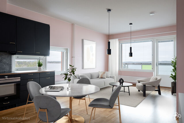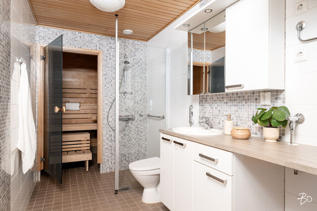 Etusivu / Pohjois-Savo / Kuopio / Järvihelmenkatu 9 1 / 1 Järvihelmenkatu 9 Lehtoniemi, Kuopio | Kerrostalo | 3h+k+s 239 000 € Velaton hinta 65,0 m2 Asuinpinta-ala 234,00 €/kk Hoitovastike 2014 Rakennusvuosi Seuraava esittely: 09.11.2025 klo 12.00-12.30 Tervetuloa unelmien kotiin, jossa avautuu upeaakin upeampi järvimaisema ja jossa moderni skandinaavinen sisustus yhdistyy toiminnallisiin ratkaisuihin.Tämä päätyhuoneisto sijaitsee kerrostalon kahdeksannessa kerroksessa, tarjoten ainutlaatuista rauhaa ja yksityisyyttä. Valoisassa kolmen huoneen asunnossa on tilava olohuone, joka sulautuu saumattomasti laadukkaaseen keittiöön. Oma sauna ja tilavat kylpyhuonetilat tekevät arjesta nautinnollista. Asunnon ajattomat materiaalivalinnat ja tarkkaan harkitut yksityiskohdat luovat harmonisen kokonaisuuden, jossa on helppo viihtyä.Taloyhtiössä on arvostettuna kiinteistönä oma tontti ja erittäin hyvin hoidetut yhteiset tilat. Kiinteistön viihtyisällä oleskelualueella voi nauttia kesäpäivistä aivan veden äärellä, kiitos oman rannan, josta löytyy myös venelaituri. Tämä taloyhtiö tarjoaa asukkailleen käytännöllisyyttä ja laadukasta asumista yhdistettynä luonnon läheisyyteen.Järvihelmenkatu sijaitsee suositulla ja rauhallisella alueella Lehtoniemessä, jossa palvelut ovat sopivan matkan päässä. Lähietäisyydellä ovat niin päiväkoti, koulu kuin muutkin päivittäispalvelut, mikä tekee arjen sujuvaksi. Samalla alue tarjoaa upeat ulkoilumahdollisuudet, joten aktiivinen elämäntapa onnistuu vaivatta. Tämä asunto tarjoaa sinulle mahdollisuuden nauttia niin kaupungin kuin luonnon parhaista puolista.Älä jää paitsi tästä ainutlaatuisesta mahdollisuudesta tule tutustumaan tähän viehättävään kotiin ja ihastu itse! Kiinnostaako tämä kohde?Ota meihin yhteyttä tai jätä viesti Mia Kosonen asuntomyyjä, KiAT, partner 041 313 9450 mia.kosonen@bo.fi Tutustu välittäjään Varaa aika kalenteristani HuoneistoOsakkeet25431-26080HallintamuotoAsunto-osakeyhtiöHuoneluku3h+k+sKerros/Kerroksia8/10Asuinpinta-ala65,0 m2Muut tilat0,0 m2Lisätietoja pinta-alasta Yhtiöjärjestyksen mukainen. Isännöitsijäntodistuksen mukainen.NäkymätUpea Kallavesimaisema huoneiston parvekkeeltaParvekeLasitettuParvekkeen ilmansuuntaItäHissiTaloyhtiössä on hissiLiesiKeraaminen liesi, integroitu liesi, erillisuuniKeittiön työtasojen materiaaliLaminaattiKeittiön lattiamateriaaliParkettiKeittiön seinien materiaaliMaalattuKylpyhuoneen varustusSuihkuseinä, pesukoneliitäntä, lattialämmitys, wc-istuin, suihku, peilikaappi, kiinteät valaisimet, kylpyhuonekaapistoKylpyhuoneen lattiamateriaaliLaattaKylpyhuoneen seinämateriaaliKaakeliSaunan lattiamateriaaliLaattaSaunan seinämateriaaliPuuMakuuhuoneen kuvaus, lisätiedot ja varustusLukumäärä: 2Lattiamateriaalit: parkettiSeinämateriaalit: maalattuOleskelutilojen kuvaus, lisätiedot ja varustusLattiamateriaalit: parkettiSeinämateriaalit: maalattuMuut säilytystilatMuu erillinen varastoMuutostyöt huoneistossaKeittiöremontti/ovet vaihdettu ja rungot maalattu. Uusittu jääkaappi/pakastin ja uuni v. 2021 KuntoHyvä Kiinteistö- ja yhtiötiedotYhtiön nimiAsunto Oy Kuopion RantahelmiTontin omistusOmaTontin koko3 343,00 m2Käyttöönottovuosi2014RakennusmateriaaliTiili, betoniKattotyyppiTasakattoKateHuopakateLämmitysjärjestelmäKaukoEnergiatodistusKylläEnergialuokkaC2013Tehdyt korjaukset ja remontit2021 Palovaroittimet uusittu 2022 Sähköautolatausinfra kaikille autopaikoille 2022 Latauspäätteet taloyhtiön autopaikoille 2022 Ilmanvaihtokanavien puhdistus ja ilmamäärien säätö 2023 Autohalliin ja varastotiloihin palonilmaisin järjestelmä Tiedossa olevat tulevat korjaukset/remontitEi tiedossa merkittäviä korjauksiaAutokatokset14Sähköpistokepaikkoja16Lunastusoikeus osakkaillaKylläMuut rajoituksetJos varasto, autohalli ja autokatospaikan hallintaan oikeuttava osake siirtyy millä tahansa saannolla ulkopuoliselle osakkaalle, on osakkeen omistajilla lunastus mahdollisuus. 15§, tarkemmin yhtiöjärjestyksessä.Lainat747 761,65 €IsännöitsijäOiva isännöinti / Lauri KauhanenKiinteistönhoitoHuoltoyhtiöYhtiön tilat ja varusteluUrheiluvälinevarasto, kaapeli-tv. Yhtiön ranta-alueella sijaitsee 20 yhtiön hallinnassa olevaa venepaikkaa. Muita tietojaPalvelutLehtoniemen alueella S-market jossa postin palvelu automaatit.KouluMartti Ahtisaaren ala-kouluPäiväkotiAlueella useitaLisätietoa kaavoituksestaKuopion kaupunkiVapautuu01.11.2025 AsumiskustannuksetHoitovastike234,00 €/kk (3,60 €/m2)Yhtiövastike yhteensä234,00 €Vesimaksun perusteOma mittari HintaMyyntihinta239 000,00 € (3 676,92 €/m2)Velaton hinta239 000,00 € (3 676,92 €/m2)MaksutapaKäteinen. Sinua voisi kiinnostaa Asunnon hinta-arvio ja arviokäynti Asunnon hinta-arvio ja arviokäynti Mitä hinta-arvio maksaa tai miten arviokäyntiä varten kannattaa valmistautua? Katso vastauksemme usein kysyttyihin ky… Sneak Peek® Sneak Peek® Sneak Peek® -palvelumme on askeleen edellä! Löydä alueesi uusimmat ja upeimmat asunnot jo ennen kuin ne ilmestyvät as… Asuntovahti Asuntovahti Etsimässä uutta asuntoa? Aseta itsellesi Bo-asuntovahti. Saat tiedon heti, kun unelmiesi asunto tulee myyntiin. Bo Match Bo Match Kun asuntounelmat ja unelmien asunnot kohtaavat, syntyy Bo Match. Tutustu uudenlaiseen tapaan käydä asuntokauppaa.