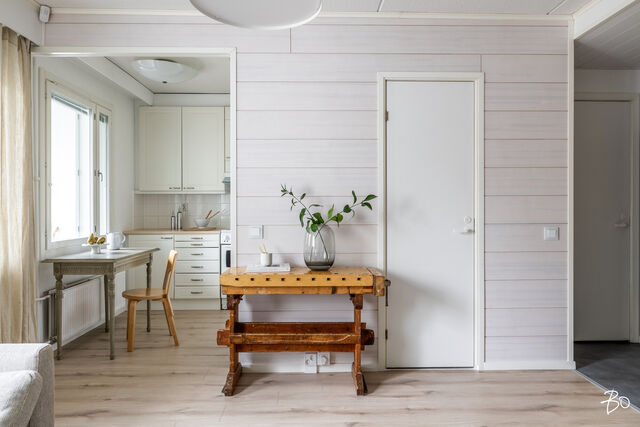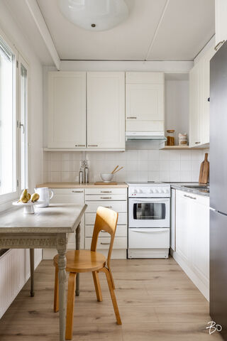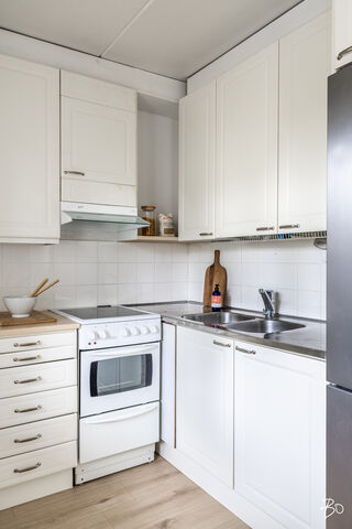 Etusivu / Uusimaa / Helsinki / Heinäpellonkuja 1 1 / 1 Heinäpellonkuja 1 Ylä-Malmi, Helsinki | Kerrostalo | 1h+k (yj: 1 h+kk) 136 000 € Velaton hinta 33,0 m2 Asuinpinta-ala 158,40 €/kk Hoitovastike 1983 Rakennusvuosi Heinäpellonkujan koti on täynnä hyvää fiilistä ja fiksuja ratkaisuja. Tämä yksiö on saanut rimaseinän ansiosta kaksion luonteen - tila on jaettu oivaltavasti, jossa avoimuus ja valoisuus säilyvät.Sisääntullessa huomio kiinnittyy tyylikkääseen sävymaailmaan: pehmeän vihreät seinät ja vaaleat pinnat tuovat tilaan lämpöä ja raikkautta. Rimaseinä rytmittää olohuonetta kauniisti ja tekee makuutilasta oman rauhallisen nurkkauksen ilman, että tila tuntuisi pieneltä.Keittiö jatkaa samaa selkeää ja ajatonta linjaa - vaaleat kaapistot, siistit pinnat ja käytännöllinen kokonaisuus tekevät arjesta sujuvaa. Kylpyhuone on taloyhtiön toimesta remontoitu vuonna 2012 ja kokonaisuus on yhä siisti ja toimiva. Tilava vaatehuone tarjoaa runsaasti säilytystilaa ja lasitettu parveke tuo asumiseen mukavasti lisätilaa ja jatkaa kodin rauhallista tunnelmaa ulos asti.Tapaninkylä on paikka, jossa arki rullaa sulavasti. Vehreät puistot, lenkkireitit ja hyvät yhteydet tekevät alueesta viihtyisän ja helpon asuinpaikan. Malmin juna-asemalle ja palveluihin on vain lyhyt matka - täällä eletään lähellä kaikkea, mutta silti omassa rauhassa.Tyylikäs, käytännöllinen ja fiksusti suunniteltu kokonaisuus - juuri sellainen koti, joka tuntuu heti omalta.Ota yhteyttä,Jaakko Haapamäki | LKV, LVV, KiAT, kaupanvahvistaja | 040 9522 162 | jaakko@bo.fiService also in Englishhttps://bo.fi/henkilo/jaakko-haapamaki/IG: @jaakko.haapamakiHarkitsetko oman asuntosi myyntiä? Pyydä minut maksuttomalle arviokäynnille sitoumuksetta. Kerron samalla lisää tämän hetkisestä asuntomarkkinatilanteesta, palveluistani ja Bo:n loistavasta välityskonseptista. Autan mielelläni! Kiinnostaako tämä kohde?Ota meihin yhteyttä tai jätä viesti Jaakko Haapamäki kiinteistönvälittäjä LKV, LVV, KiAT, kaupanvahvistaja, partneryrittäjä Jaakko Haapamäki Oy 040 9522 162 jaakko@bo.fi Tutustu välittäjään Varaa aika kalenteristani HuoneistoOsakkeet188-220HallintamuotoAsunto-osakeyhtiöHuoneluku1h+k (yj: 1 h+kk)Kerros/Kerroksia2/3Asuinpinta-ala33,0 m2Muut tilat0,0 m2Lisätietoja pinta-alasta Isännöitsijäntodistuksen mukainen. Yhtiöjärjestyksen mukainen.ParvekeLasitettuKeittiön kuvaus, lisätiedot ja varustusVarustelu: Boschin jääkaappi/pakastin, liesikupu, pieni pöytämallinen astianpesukone, keraaminen liesi. Taso vaaleaa puuta, uusittu muutama vuosi sitten, tiskipöytä. Runsaasti kaappitilaa.Pesutilojen kuvaus, lisätiedot ja varustusVarustelu: peilikaappi, pesukoneliitäntä, wc-istuin, bidee-suihku, suihkuseinä, allas, pyykkikaappi ja pyyhekuivain. Lattia laattaa, seinät kaakeloitu. Kylpyhuone on remontoitu taloyhtiön toimesta vuonna 2012.Saunan kuvaus, lisätiedot ja varustusTaloyhtiössä on sauna, mutta se ei ole käytettävissä. Taloyhtiön sauna on vuokrattu varastotilaksi.Oleskelutilojen kuvaus, lisätiedot ja varustusRemontoitu 2021-2022: lattia, rimaseinä ja listoja. Lisäksi vuosien varrella maalattu seiniä ja yksi seinä paneloitu, sekä pistorasioita uusittu. Olohuoneessa on alkovi, joka on uudistettu huonemaiseksi tilaksi rimaseinällä.SeinämateriaalitSeinät maali/paneeli/rimotusLattiamateriaalitHuoneen ja keittiön osa lattiasta on laminaattia, eteisen ja vaatehuoneen osa on vinyyliä.Muutostyöt huoneistossa2020-2022 Pintamateriaalien uusimista: lattiat, seinät maalattu, listat, keittiön tasoKuntoHyvä Kiinteistö- ja yhtiötiedotYhtiön nimiAsunto Oy Hietapellontie 2Tontin omistusOmaTontin koko9 691,00 m2Käyttöönottovuosi1983RakennusmateriaaliBetoniKattotyyppiHarjakattoKateAlumiinipeltiLämmitysjärjestelmäKaukoLisätietoja energiatodistuksestaEnergiatodistus on lakisääteinen asiakirja ja sen hankinnasta vastaa rakennuksen omistaja tai omistajan edustaja, joka asunto-osakeyhtiöissä on useimmiten taloyhtiö (hallitus/isännöitsijä). Energiatodistuslain noudattamista valvoo Asumisen rahoittamis- ja kehittämiskeskus (ARA). Mikäli todistusta ei hankita, ARA voi vaatia energiatodistuksen hankkimiseen jopa uhkasakon uhalla. Isännöitsijän antaman tiedon mukaan, uutta ollaan teettämässä noin kuukauden sisällä.Tehdyt korjaukset ja remontit2002 Julkisivujen elementtisaumojen uusiminen, salaojituksen ja sadevesikaivojen rakentaminen, talo 14 osittain ja väestönsuoja, räystäiden aluskatteiden, sadevesikourujen, syöksytorvien ja pellitysten uusiminen, kolmannen kerroksen parvekkeiden lattiarakenteiden muutostyö, alapohjan koneellisen ilmanvaihdon asennus talot 15, 16 ja 17 2005 Yhteisantenniverkon kunnostus ja digi-tv:n laiteasennukset, huippuimureiden uusiminen ja tehon muuttaminen, talot 15 ja 16, kolmen jätekatoksen uusiminen, vesikattojen aluskatteiden uusiminen ja parvekkeiden kohdalla lumiesteiden asennus 2006 Salaoja- ja sadevesiviemärien suunnittelu 2007 Pihan leikkivarusteiden uusiminen, ilmastointikanavien puhdistus, mittaus ja säätö, pääviemärin korjaus F-päädyssä, talot 15 ja 16, salaoja- ja sadevesivesien poistojärjestelmien rakentaminen, talot 14 ja 17 2008 Soneran valokaapeliyhteyden asennus, kaukolämmön lämmönsiirrinlaitteiden uusiminen 2009 Kolmannen kerroksen parvekkeiden seinien maalaus sekä parvekkeiden lattiarakenteiden täydellinen uusiminen (takuukorjaus vuoden 2002 parvekelattiaurakkaan) 2010 Maansisäisten vesijohtojen uusiminen talojen välillä (käyttövesi ja lämpö, putkilinjojen sulku- ja säätöventtiilien sekä patteriventtiilien ja termostaattien uusiminen, lämpöverkon perussäätö ja tasapainotus 2011-2013 Kylpyhuoneiden ja talosaunan saneerauksen suunnittelu ja toteutus 2014 Energiasäästöpalvelu, Ekonor/Ouman 2015 Lukkojen uusinta ja ovipuhelimet, Elisan valokuidun asennus ja taloyhtiölaajakaistaan liittyminen 2016 Porraskäytävien savunpoistoluukkujen huolto 