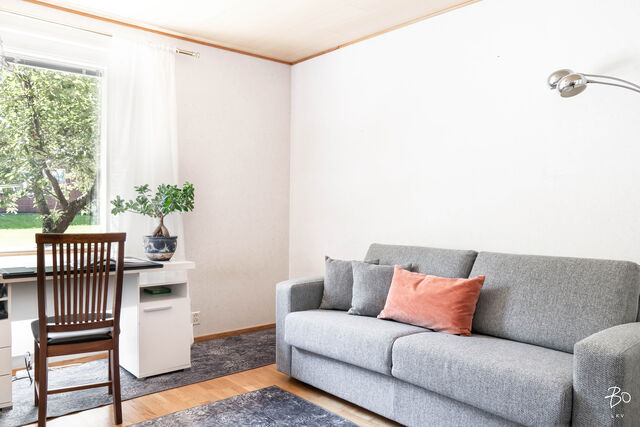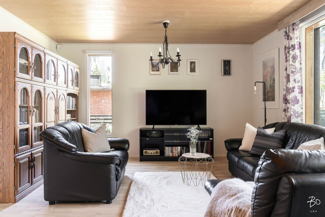 Etusivu / Uusimaa / Porvoo / Kuusikkotie 3 1 / 1 Kuusikkotie 3 Hamari, Porvoo | Omakotitalo | 2 x oh, k, rt, 3 mh, s-os., vh, erill.wc, at + autokatos 248 000 € Velaton hinta 122,0 m2 Asuinpinta-ala 153,0 m2 Kokonaispinta-ala 1973 Rakennusvuosi Yhteen tasoon rakennettu, kodikas perheasunto rauhallisella ja viihtyisällä alueella! Tämän kodin valtteina ovat 70-luvulle tyypilliset, suuret ikkunat, jotka avautuvat ihanan vehreälle pihalle. Isot oleskelutilat ja keittiö muodostavat avaran kokonaisuuden talon sydämeen, jossa perinteinen tiilipintainen takka lämmittää ja luo tunnelmaa. Ilmalämpöpumpun ansiosta asumismukavuudesta voi nauttia ympäri vuoden - kesällä viilentäen ja talvella lämmönlähteenä. Suuri, kaunis piha sijaitsee suojaisasti talon takana. Pihalta löytyy myös viihtyisä paviljonki kesäpäiviin, muurattu ulkogrilli sekä lasten iloksi oma leikkimökki.1970-luvun alkupuolella rakennettua taloa on kunnostettu vuosien varrella huolellisesti aina tarpeen mukaan. Viimeisimpänä, vain vuosi sitten, vaaleasävyiset pesutilat on remontoitu ja päivitetty kauniisti tähän päivään.Auton saa suojaan autotalliin, ja toiselle autolle on paikka katoksessa. Autotallin yhteydessä on lisäksi runsaasti varastotilaa.Talo sijaitsee päättyvän tien varrella, mikä luo turvallisen ympäristön lasten leikeille ja liikkumiselle. Päiväkoti, koulu ja Hamarinranta ovat kaikki noin kilometrin säteellä kiinteistöltä. Kiinnostaako tämä kohde?Ota meihin yhteyttä tai jätä viesti Jatta Toivola kiinteistönvälittäjä LKV, partner 040 764 4316 jatta@bo.fi Tutustu välittäjään Varaa aika kalenteristani RakennusKäyttöönottovuosi1973RakennusmateriaaliPuu, tiiliKattotyyppiAumakattoKateKonesaumattu peltiKaton kuntoTasakatto muutettu aumakatoksi vuonna 1985. Vesikatto uusittu lyhteiden kohdalta vuonna 2005.Asuinpinta-ala122,0 m2 (153,0 m2)Lisätietoja pinta-alastaMuut tilat kylmä varasto 11 m2 ja autotalli 20 m2. Kerroala asunto-osa 146 m2, koko talon kerrosala 177 m2. Lisäksi ullakotilaan on tehty huonetila, jossa oma wc.Kerrokset2Muut tilat31,0 m2IlmanvaihtojärjestelmäKoneellinen poisto kph:ssa ja liesituulettimen kauttaLämmitysjärjestelmän kuvausSähkö, ilmalämpöpumppuLämmön jakotapaSähköpatterilämmitys, muuHuoneluku2 x oh, k, rt, 3 mh, s-os., vh, erill.wc, at + autokatos Keittiön kuvaus, lisätiedot ja varustusKeittiössä psk-liitäntä.Keittiön muut varusteetMikroaaltouuni, astianpesukone, kiinteät valaisimet, liesituuletin / hormiLiesiSähköliesi, erillisuuniKeittiön työtasojen materiaaliPuuKeittiön lattiamateriaaliLaattaKeittiön seinien materiaaliLasikuitutapetti, osalaatoitusPesutilojen kuvaus, lisätiedot ja varustusAllaskaappi, allas.Kylpyhuoneen varustusLattialämmitys, wc-istuin, peilikaappi, kiinteät valaisimetKylpyhuoneen lattiamateriaaliLaattaKylpyhuoneen seinämateriaaliKaakeliSaunaAsunnossa on saunaSaunan lattiamateriaaliLaattaSaunan seinämateriaaliPuuWC-tilojen kuvausAllaskaappi, peilikaappi, wc-istuin, lattialämmitys.Lattiamateriaalit: laattaSeinämateriaalit: kaakeliMakuuhuoneen kuvaus, lisätiedot ja varustusMakuuhuoneiden lattiat uusittu 2000-2002.Lukumäärä: 3Lattiamateriaalit: parkettiSeinämateriaalit: tapettiOleskelutilojen kuvaus, lisätiedot ja varustusOlohuoneen lattia uusittu 2024.Lattiamateriaalit: parkettiSeinämateriaalit: maalattuMuut tilatYläkerrassa lankkulattia/mänty.TakkatiedotTakkaMuut säilytystilatVaatehuone, ulkovarastoTehdyt korjaukset- 1985: asuinrakennuksen laajennus ja tasakaton muutos aumakatoksi, sadevesikourut uusittu, ullakkohuone rakennettu -1997 vesiputkisto uusittu kokonaan vesimittarilta eteenpäin - 2000 alakerran wc:n lattia uusittu, lisätty lattialämmitys - 2005 ullakkohuoneen kattoon lisäeristys ja tuuletus, keskuspölynimurin putkiston asennus, kattoikkuna uusittu, pikku makuuhuoneiden patterit uusittu - 2010 vesikatto maalattu -2010-luvulla uusittu keittiön vesihanan sekoittaja - 2019 viemärilinjan painauman korjaaminen läheltä runkoviemäriä, tarkastuskaivon uusinta - 2020 ikkunoita maalattu - 2021 betoniset loiskevesikupit osiittain uusittu - 2022 sokkeli maalattu - 2023 yläkerran wc:n lattia uusittu, alakerran wc:n seinät ja katto uusittu, wc:n pöntöt uusittu, kph:n ja alakerran wc:n vesihanojen sekoittajat uusittu. - 2024 kph ja sauna remontoitu (mm. lattialämmitys, lämminvesivaraaja, lattiakaivo, putkisto ja sähköistys sekä lattialaatat ja seinäkaakelit uusittu), olohuoneiden patterit uusittu Rakennusluvalle 45/1985/asuinrakennuksen laajennus sekä kattomuutos on pidetty loppukatselmus 4.12.1985. Kattomuutos 2005.Muuta kauppaan kuuluvaaLeikkimökki, huvimaja ja pavilijonki, ulkogrilli/uuni.KuntoTyydyttäväEnergiatodistusKylläEnergialuokkaE2018 KiinteistötiedotKiinteistötunnus638-417-1-645Kortteli/Kiinteistön nimi638-417-1-645TyyppiOmakotitaloTontin koko713,00 m2Tontin omistusVuokrattuTontin vuokrasopimus päättyy31.12.2052Tontin vuokra2 195,00 €Tontin vuokraajaPorvoon kaupunkiPanttikirjat50 000,00 €Lisätietoja tontistaTie perilleVesijohtoKunnanViemäriKunnanRakennusoikeus, e-luku0.30 AsumiskustannuksetSähkölämmitys328,00 €Vesi ja jätevesi51,00 €Puhtaanapito38,00 €Kiinteistövero333,00 €Muut maksut / lisätietoa maksuistaTontin vuokra 2 195 euroa/vuosi, valokuitu 66 euroa/kk + nettilittymämaksu. Lämmityskulu sisältää myös käyttösähkön. Mikäli uusi omistajat haluaa hälytys- ja valvontajärjestelmän nykyisten omistajien kustannus on (Verisure) 795 euroa/vuosi, HintaVelaton hinta248 000,00 €Myyntihinta248 000,00 € VapautuuSopimuksen mukaanMaksuehtoKäteinen. Sinua voisi kiinnostaa Asunnon hinta-arvio ja arviokäynti Asunnon hinta-arvio ja arviokäynti Mitä hinta-arvio maksaa tai miten arviokäyntiä varten kannattaa valmistautua? Katso vastauksemme usein kysyttyihin ky… Sneak Peek® Sneak Peek® Sneak Peek® -palvelumme on askeleen edellä! Löydä alueesi uusimmat ja upeimmat asunnot jo ennen kuin ne ilmestyvät as
