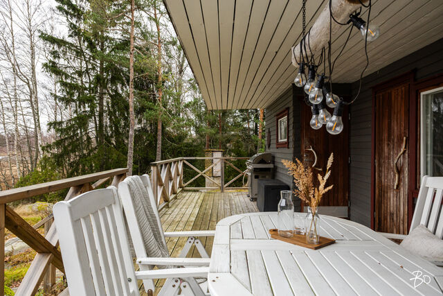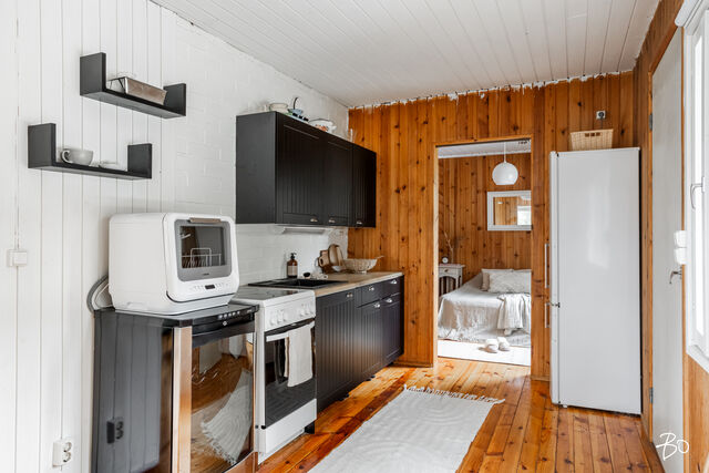 Etusivu / Varsinais-Suomi / Uusikaupunki / Kolkankarintie 169 1 / 1 Kolkankarintie 169 Pyhämaa, Uusikaupunki | Mökki tai huvila | oh,k,rh,mh,ph,s 149 000 € Velaton hinta 63,5 m2 Asuinpinta-ala 1978 Rakennusvuosi Unelmiesi pakopaikka luonnon helmassa ! Tämä vapaa-ajan asunto tarjoaa mainion mahdollisuuden rentoutua omassa rauhassa, samalla kun pääset nauttimaan järvimaisemista ja luonnon kauneudesta.Vuonna 1983 valmistunut mökki kätkee sisälleen lämpimiä puupintoja, jotka luovat tunnelmallisen ilmapiirin. Kodikkaasta olohuoneesta, keittiöstä, ruokailutilasta, makuuhuoneesta sekä saunasta koostuva pohjaratkaisu on kompakti mutta toimiva. On hyvä ottaa huomioon, että kohde vaatii pientä pintaremonttia, mutta tämä tarjoaa erinomaisen mahdollisuuden luoda siitä juuri itsesi näköinen unelmakoti.Kiinteistö sijaitsee kauniilla paikalla, josta avautuu hienot näkymät järvelle. Suuri terassi ja oma ranta laiturilla kutsuvat nauttimaan aurinkoisista päivistä ja rauhallisista illoista veden äärellä. Mökin piha-alue sulautuu saumattomasti ympäröivään luontoon. Vaikka kiinteistö ja piha-alue kaipaavat hieman kunnostusta, potentiaali on ilmeinen niin ympäristön kuin tilojen puolesta.Pyhämaan kauppa on vain noin 2 kilometrin päässä.Mikäli etsit paikkaa, jossa arki ja luonnonläheisyys yhdistyvät saumattomasti, tämä mökki on ihanteellinen valinta sinulle. Tule ja koe itse, millaista on viettää aikaa tässä luonnonkauniissa kohteessa!Sari Kyrkköylempi kiinteistönvälittäjä YKV, LKV, LVV, KiAT, kaupanvahvistaja, partner045 170 6656sari.kyrkko@bo.fi Kiinnostaako tämä kohde?Ota meihin yhteyttä tai jätä viesti Sari Kyrkkö ylempi kiinteistönvälittäjä YKV, LKV, LVV, KiAT, kaupanvahvistaja, partner 045 170 6656 sari.kyrkko@bo.fi Tutustu välittäjään Varaa aika kalenteristani RakennusRakennusvuosi (aloitettu)1978Käyttöönottovuosi1983RakennusmateriaaliPuuKattotyyppiHarjaKatePeltiAsuinpinta-ala63,5 m2 (63,5 m2)Lisätietoja pinta-alastaIlmoitetut pinta-alat ovat suuntaa antavia eikä pinta-alatietojen paikkansapitävyyttä ole voitu varmistaa. Suosittelemme SFS-standardin 5139 mukaista pinta-alamittausta oikean pinta-alatiedon varmistamiseksiKerrokset1Muut tilat0,0 m2LämmitysIlmalämpöpumppu. 2021Lämmitysjärjestelmän kuvausIlmalämpöpumppu, muuHuonelukuOh,k,rh,mh,ph,sKeittiön muut varusteetKiinteät valaisimetLiesiKeraaminen liesiKeittiön työtasojen materiaaliLaminaattiKeittiön lattiamateriaaliLautaKeittiön seinien materiaaliPuuSaunaAsunnossa on saunaSaunan lattiamateriaaliBetoniSaunan seinämateriaaliPuuMakuuhuoneen kuvaus, lisätiedot ja varustusLukumäärä: 1Lattiamateriaalit: lautaSeinämateriaalit: puuOleskelutilojen kuvaus, lisätiedot ja varustusLattiamateriaalit: lautaSeinämateriaalit: puuTehdyt korjauksetTerassi uusittu 2020, oh ja keittiön väliseinä purettu, pihaa siistitty ja puita kaadettu, keittiön kaapistot 2020KuntoTyydyttäväLisätietoja energiatodistuksestaKohteelle ei lain mukaan tarvita energiatodistusta. KiinteistötiedotKiinteistötunnus895-480-4-8Kortteli/Kiinteistön nimiKOLKANKARITyyppiTilaTontin tyyppiRantatonttiTontin koko0,47 haTontin omistusOmaPanttikirjat126 800,00 €Lisätietoja tontistaTie perilleViemäriImeytyskenttäRakennusoikeus200,0 m2Lisätietoja rakennusoikeudestaLomarakennuspaikalla saa olla enintään: - yksiasuntoinen loma-asunto, jonka kerrosala saa olla enintään 150 m² - yksi saunarakennus, jonka kerrosala saa olla enintään 25 m² - yksi vierasmaja, jonka kerrosala saa olla enintään 25 m² - kolme talousrakennusta, pinta-alat sisältyvät kokonaiskerrosalaan - kerrosten lukumäärä saa olla enintään yksi. Venevajan kerrosala saa olla enintään 40 m2 . Venevajan ala otetaan huomioon rakennuspaikan yhteenlaskettua kokonaiskerrosalaa laskettaessa. Venevajan rakentamismahdollisuustutkitaan aina tapauskohtaisesti. Tämän pykälän määräyksiä noudatetaan, ellei kaavassa ole toisin määrätty. Muita tietojaVesistön nimiMakeanveden allas AsumiskustannuksetKiinteistövero379,12 €Muut maksut / lisätietoa maksuistaNykyisillä omistajilla on sähkölasku ollut kesällä 20 € ja talvella 60 €. Ilmalämpöpumppu pitänyt mökin lämpötilan 16 asteessa. Tiemaksuja peritty tarpeen mukaan, ei edes joka vuosi. Varainsiirtovero 3 % HintaVelaton hinta149 000,00 € (2 346,46 €/m2)Myyntihinta149 000,00 € (2 346,46 €/m2)VapautuuHetiMaksuehtoKäteinen. Sinua voisi kiinnostaa Asunnon hinta-arvio ja arviokäynti Asunnon hinta-arvio ja arviokäynti Mitä hinta-arvio maksaa tai miten arviokäyntiä varten kannattaa valmistautua? Katso vastauksemme usein kysyttyihin ky… Sneak Peek® Sneak Peek® Sneak Peek® -palvelumme on askeleen edellä! Löydä alueesi uusimmat ja upeimmat asunnot jo ennen kuin ne ilmestyvät as… Asuntovahti Asuntovahti Etsimässä uutta asuntoa? Aseta itsellesi Bo-asuntovahti. Saat tiedon heti, kun unelmiesi asunto tulee myyntiin. Bo Match Bo Match Kun asuntounelmat ja unelmien asunnot kohtaavat, syntyy Bo Match. Tutustu uudenlaiseen tapaan käydä asuntokauppaa.