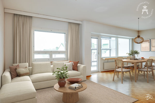 Etusivu / Varsinais-Suomi / Turku / Puutarhakatu 17 1 / 1 Puutarhakatu 17 Keskusta, Turku | Kerrostalo | 3-4h+k+s/ph/wc+wc+terassi+parv (yj: 4h+k+saunaosasto+autopaikka no: 42) 408 000 € Velaton hinta 140,5 m2 Asuinpinta-ala 534,65 €/kk Hoitovastike 1981 Rakennusvuosi Valoa, avaruutta ja oma kattoterassi - koti, jossa viihdyt!Tämä ylimmän kerroksen huoneisto on todellinen harvinaisuus - tilaa, valoa ja näkymiä kaupungin ylle. Koti hurmaa jo heti sisään astuttaessa avaralla tunnelmallaan ja kauniisti rytmitetyillä tiloillaan. Olohuone ja ruokailutila muodostavat yhtenäisen, kutsuvan kokonaisuuden, jossa luonnonvalo tulvii sisään useasta suunnasta. Alakerrassa on tällä hetkellä yksi makuuhuone, mutta toisen makuuhuoneen rakentaminen onnistuu kätevästi. Yläkerran takkahuone tuo lämpöä ja rauhaa arkeen, ja sieltä on suora kulku omalle kattoterassille - täydellinen paikka aamukahveille tai ilta-auringon ihailuun. Yläkerran makuuhuone on omassa rauhassa. Asunnosta löytyy myös oma sauna, josta pääsee vilvoittelemaan isolle terassille. Remontoimalla tästä asunnosta saa juuri oman näköisen kodin, jossa viihtyy pitkään.Asunto Oy Puutarhakatu 17 on hyvin hoidettu taloyhtiö, jonka kunnossapitoa on toteutettu pitkäjänteisesti. Yhtiössä on uusittu mm. ikkunat, parvekkeet ja ilmanvaihtoa sekä kunnostettu kattoterassit ja julkisivuja. Kiinteistö sijaitsee omalla tontilla ja tarjoaa asukkailleen hissin, huoneistokohtaisen varastotilan ja katoksellisen autopaikan. Katoksellinen autopaikka kuuluu tälle isolle asunnolle yhtiöjärjestyksen mukaisesti. Yhteisissä tiloissa on käytännöllisiä säilytysratkaisuja ja huoltoyhtiö huolehtii kiinteistön arjen toimivuudesta.Sijainti Turun keskustassa yhdistää rauhallisen asumisen ja urbaanin elämän parhaat puolet. Puutarhakadun varrelta avautuu vehreitä näkymiä ja arjen palvelut löytyvät kävelyetäisyydeltä. Lähistöltä löytyvät niin puistot, jokiranta kuin kauppatorin vilinä - kaikki helposti saavutettavissa.Varaa oma esittelyaikasi ja tule tutustumaan!Esittelyt ja lisätiedot:Saija PalinAsuntomyyjä, partnerBo LKV Turku Oy040 756 7070saija.palin@bo.fifacebook: Bo LKV Saija Palininstagram: saijapalin.bolkv Kiinnostaako tämä kohde?Ota meihin yhteyttä tai jätä viesti Saija Palin asuntomyyjä, partner 040 756 7070 saija.palin@bo.fi Tutustu välittäjään Varaa aika kalenteristani HuoneistoOsakkeet1783-1922HallintamuotoAsunto-osakeyhtiöHuoneluku3-4h+k+s/ph/wc+wc+terassi+parv (yj: 4h+k+saunaosasto+autopaikka no: 42)Kerros/Kerroksia8/8Asuinpinta-ala140,5 m2Muut tilat0,0 m2Lisätietoja pinta-alasta Isännöitsijäntodistuksen mukainen. Yhtiöjärjestyksen mukainen.ParvekeLasitettuHissiTaloyhtiössä on hissiKeittiön kuvaus, lisätiedot ja varustusKeittiön varustus: astianpesukone, erillisuuni, jääkaappi ja liesituuletin. Vältila on laattaa ja seinät on maalattu.Pesutilojen kuvaus, lisätiedot ja varustusVarustus: suihkukaapppi, wc-istuin ja allas/kaapisto. Lattia ja seinät on laattaa.WC-tilojen kuvausVarustus: pesukoneliitäntä, , allas/kaapisto, peilikaappi, bidee ja wc-istuin. Lattia ja seinät on laattaa.Saunan kuvaus, lisätiedot ja varustusSaunan lattia on laattaa.Makuuhuoneen kuvaus, lisätiedot ja varustusAlakerran makuuhuoneen lattia on parkettia ja yhdellä seinustalla on kaapisto. Yläkerran makuuhuoneen yhteydessä on vaatehuone ja yhdellä seinustalla on kaapisto. Lattia on puuta.Oleskelutilojen kuvaus, lisätiedot ja varustusOlohuoneesta kulku lasitetulle parvekkeelle. Lattia on parkettia ja seinät on maalattu/tapetti. Muuta kauppaan kuuluvaaSälekaihtimet.Kauppaan ei kuuluIrtaimisto.Muutostyöt huoneistossaKylpyhuonesaneeraus 2018. KuntoTyydyttäväLisätietoa kunnostaYläkerran pesutilan kunto on hyvä. TakkatiedotTakka Kiinteistö- ja yhtiötiedotYhtiön nimiAsunto Oy Puutarhakatu 17Tontin omistusOmaTontin koko1 988,00 m2Käyttöönottovuosi1981RakennusmateriaaliBetoniKattotyyppiTasakattoKateHuopaLämmitysjärjestelmäKaukoEnergiatodistusKylläLisätietoja energiatodistuksestaViimeinen voimassaolopäivä: 26.7.2033EnergialuokkaD2018Tehdyt korjaukset ja remontit2000 Yhdeksännen kerroksen kattoterassien vesieristys 2001-2002 Puutarhakadun puoleisen julkisivun ja päädyn korjaus 2005 Autohallirakennuksen katon vesieristys 2009-2010 Rakennuksen pihapuolen julkisivun saneeraus 2011 Autohallirakennuksen saneeraus 2012 Sisäpihan asfaltointi 2012 Ilmastointikoneen pumput 2013 Ilmanvaihdon nuohous ja säätö 2014 Vesikatteen uusinta 2015 Hissin nostokoneiston uusinta 2015-2016 Huoneistojen 20, 21, 22 ja 23 parvekelasit 2016 Asuinhuoneistojen, toimistojen ikkunoiden uusinta sekä parvekeovet ja 9. kerroksen pihasivun ikkunat ja parvekeovet 2017 Porrashuoneen ja yleisten tilojen valaistus, led-liiketunnistinvalaistus 2017-2018 Lukkojen sarjoitus, ILOQ-järjestelmälle, ulko-oven sähköinen ovenavaus 2021 Parvekkeiden saneeraus ja lasitus sekä kattoterassien (4 kpl) saneeraus 2023 Julkisivulatojen kiinnitysTiedossa olevat tulevat korjaukset/remontitHuoneistojen märkätilojen korjauksia tarpeen mukaan, patteriventtiilien uusinta ja lämmitysjärjestelmän tasapainotus, lämmönsiirtimien uusinta, sulku- ja linjasäätöventtiilien uusinta, hissien huoltokorjauksia. Autotallit37Lainat177 214,93 €Kiinnitykset663 975,00 €IsännöitsijäTurun Isännöintikeskus Oy toimisto@turunisannointikeskus.fi Eija Kangas +358265172186 eija.kangas@turunisannointikeskus.fiKiinteistönhoitoHuoltoyhtiöTaloyhtiössä muutaIlmanvaihtojärjestelmä: mekaaninen. Ulkoiluvälinevarasto, Yhtiössä ei ole tehty kaikkia rakenteita kattavaa haitta-ainekartoitusta ja yhtiön rakennusten rakenteissa voi esiintyä asbestia tai muita haitta-aineita. Yhtiöjärjestys 9§: Jos jokin yhtiön huoneistoista tuottaa jätteitä huomattavasti enemmän kuin asuinhuoneistot keskimäärin, on osakas velvollinen huolehtimaan jätteidensä poiskuljetuksesta omalla kustannuksellaan tai korvaamaan yhtiölle aiheuttamansa j