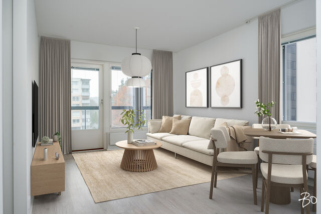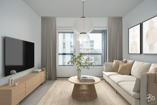 Etusivu / Varsinais-Suomi / Raisio / Tornikatu 4 b 1 / 1 Tornikatu 4 b Keskusta, Raisio | Kerrostalo | 3h, k, kh, s, lasitettu parveke 210 000 € Velaton hinta 70,0 m2 Asuinpinta-ala 217,00 €/kk Hoitovastike 2019 Rakennusvuosi Valoisa saunallinen kulmahuoneisto suurella lasitetulla parvekkeella tontti lunastettu omaksiTervetuloa tutustumaan tyylikkääseen ja hyvin pidettyyn 70 m²:n kulmahuoneistoon, joka sijaitsee vuonna 2019 valmistuneen kerrostalon 4. kerroksessa aivan Raision keskustan palveluiden äärellä. Tämän asunnon tonttiosuus on jo lunastettu, joka tuo huoletonta asumista ja selkeyttää asuinkustannuksia.Asunnon valoisa ja moderni kokonaisuus muodostuu olohuoneesta, kahdesta makuuhuoneesta, keittiöstä sekä tilavasta saunallisesta kylpyhuoneesta. Huoneiston vaaleat pinnat ja suuret ikkunat tekevät tiloista avaran ja kutsuvan jo ensiaskeleilta lähtien. Olohuoneesta avautuu käynti reilunkokoiselle lasitetulle parvekkeelle, joka toimii upeasti lisähuoneena aikaisesta keväästä pitkälle syksyyn.Olohuone ja ruokailutila yhdistyvät toimivaksi kokonaisuudeksi, jossa on helppo viihtyä. Keittiö on varusteltu integroidulla astianpesukoneella, kalusteuunilla, keraamisella liedellä, jääkaappipakastin-yhdistelmällä ja muilla arkea helpottavilla ratkaisuilla. Makuuhuoneissa liukuovikaapistot tarjoavat säilytystilaa ilman, että ne vievät turhaa huonetilaa.Tilava ja tyylikäs kylpyhuone on kauttaaltaan laatoitettu ja varusteltu modernisti: suihku ja suihkuseinä, tilavaraus pesukoneelle ja allaskaapisto tekevät tilasta käytännöllisen. Oman saunan lempeät löylyt viimeistelevät asumismukavuuden.Asunto Oy Raision Sello on uudehko ja hyvin hoidettu taloyhtiö, jossa ei ole näköpiirissä suuria remontteja. Yhtiöstä löytyvät mm. hissi, ulkoiluvälinevarasto ja väestönsuoja. Energialuokka B2018 takaa nykyaikaisen ja energiatehokkaan asumisen.Sijainti Raision keskustassa tarjoaa erinomaiset palvelut, hyvät liikenneyhteydet ja monipuoliset vapaa-ajan mahdollisuudet. Tämä asunto sopii mainiosti niin omaksi kodiksi kuin sijoitukseksi muuttovalmis ja heti vapaa.Esittelyt ja lisätiedotMiika Salmela | 0500 533 582 | miika.salmela@bo.fi________________________________________________Harkitsetko oman asuntosi myyntiä? Pyydä minut sitoumuksetta maksuttomalle arviokäynnille. Kerron samalla lisää tämänhetkisestä asuntomarkkinatilanteesta, palveluistani ja Bo:n loistavasta välityskonseptista sekä miten asunnonvaihdon suhteen kannattaa edetä. Autan mielelläni! Kiinnostaako tämä kohde?Ota meihin yhteyttä tai jätä viesti Miika Salmela asuntomyyjä, partner 0500 533 582 miika.salmela@bo.fi Tutustu välittäjään HuoneistoOsakkeet1025-1100HallintamuotoAsunto-osakeyhtiöHuoneluku3h, k, kh, s, lasitettu parvekeKerros/Kerroksia4/8Asuinpinta-ala70,0 m2Muut tilat0,0 m2Lisätietoja pinta-alasta Yhtiöjärjestyksen mukainen. Isännöitsijäntodistuksen mukainen.NäkymätSuuri lasitettu parveke lännen suuntaan, joten varsinkin kesällä täällä pääsee nauttimaan auringosta iltaan saakka. ParvekeLasitettuParvekkeen ilmansuuntaLänsiHissiTaloyhtiössä on hissiKeittiön kuvaus, lisätiedot ja varustusVarustus: jääkaappi/pakastin, keraminen liesi ja kalusteuuni, liesituuletin, integroitu astianpesukone. Lattia on laminaattia.Pesutilojen kuvaus, lisätiedot ja varustusKylpyhuoneen varustus: suihku, kääntyvä lasinen suihkuseinä, wc-istuin, bidee, allas/laatikosto, valopeili, pesukoneliitäntä. Lattia ja seinät on laattaa.Saunan kuvaus, lisätiedot ja varustus12/2024: Saunan kiukaan kiinnitys varmistettava, saunan panelointi kaipaa kunnostusta. Makuuhuoneen kuvaus, lisätiedot ja varustusKaksi makuuhuonetta, joissa molemmissa on liukuovikaapistot. Lattia on laminaattia ja seinät on maalattu.Oleskelutilojen kuvaus, lisätiedot ja varustusOlohuoneesta käynti tilavalle lasitetulle parvekkeelle. Olohuoneen lattia on laminaattia ja seinät on maalattu. KuntoHyvä Kiinteistö- ja yhtiötiedotYhtiön nimiAsunto Oy Raision SelloTontin omistusValinnainen vuokratoTontin koko1 143,00 m2Tontin vuokraajaÅlandbanken Tonttirahasto ErikoissijoitusrahastoTontin vuokrasopimus päättyy02.11.2048Tontin vuokra37 030,08 €Käyttöönottovuosi2019RakennusmateriaaliMuuKattotyyppiTasakattoKateBitumikermiLämmitysjärjestelmäKauko, muuEnergiatodistusKylläLisätietoja energiatodistuksestaViimeinen voimassaolopäivä 2.2.2034EnergialuokkaB2018Tiedossa olevat tulevat korjaukset/remontit2026 Ilmanvaihtokanavien puhdistus 2028 Kiinteistön kuntotutkimus 10 v. kohdallaLainat2 278 663,89 €Kiinnitykset6 637 000,00 €IsännöitsijäRetta Isännöinti Oy Raisio Tasalanaukio 5, 21200 RAISIO 010 228 7050 Isännöitsijä Pekka Pirinen pekka.pirinen@retta.fi KiinteistönhoitoHuoltoyhtiöTaloyhtiössä muutaIlmanvaihto: Koneellinen tulo/poisto. Ulkoiluvälinevarasto, väestönsuoja, huoneistokohtaiset varastot Osakkeenomistajat ovat velvollisia huolehtimaan kustannuksellaan asuinhuoneistoihin kuuluvien parvekkeiden sekä huoneistoihin A1 ja A2 kuuluvien yhtiöjärjestyksen liitekarttaan merkittyjen pensasaidalla ja penkillä rajattujen pihaterassien asianmukaisesta huollosta ja kunnossapidosta huolehtimalla mahdollisen lumen, jään, puiden lehtien yms. poistosta ko. alueilta asianmukaisesti siten, että ne eivät aiheuta vaurioita rakenteille. Osakkeenomistaja, jonka huoneistoon on yhtiön rakentamisvaiheessa tai myöhemmin tehty ns. lisä- ja muutostyönä ratkaisuja, jotka poikkeavat huoneiston alkuperäisestä tai yhtiön myöhemmin määrittämästä perustasosta, vastaa niiden aiheuttamista hoito-, ylläpito-, kunnostus- ja perusparannuskuluista. Mikäli lisä- ja muutostyöratkaisuista aiheutuu muita kustannuksia yhtiölle, yhtiöllä on oikeus periä osakkeenomistajalta ne kustannukset, jotka ylittävät yhtiön muiden huoneistojen alkuperäisten ratkaisujen yhtiölle aiheuttamat keskimääräiset kulut. Näin perittävän kustannuksen suuruudesta päättää yhtiön hallitus