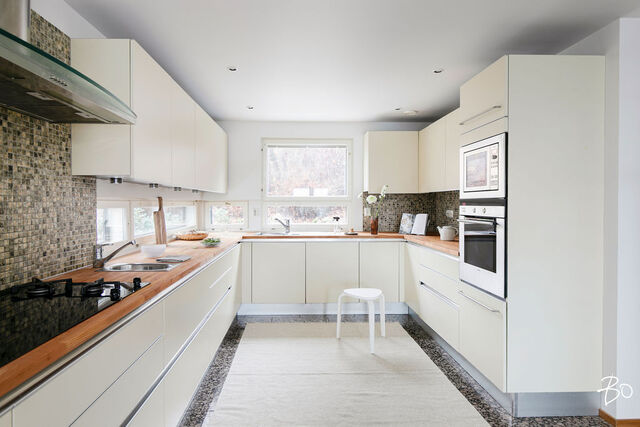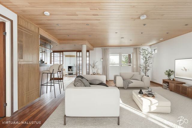 Etusivu / Uusimaa / Helsinki / Jatasalmentie 13 1 / 1 Jatasalmentie 13 Tammisalo, Helsinki | Erillistalo | 6h, k, rt, kh x2, pesutilat, s, wc x2, piha at 1 520 000 € Velaton hinta 323,0 m2 Asuinpinta-ala 375,0 m2 Kokonaispinta-ala 2002 Rakennusvuosi Tyylikäs erillistalo merinäkymin TammisalossaVain parinkymmenen metrin päässä merenrannasta sijaitseva koti on moderni ja ajaton kokonaisuus, joka hurmaa jo ensisilmäyksellä.Tilava kolmen tason skandinaavisen kaunis erillistalo tarjoaa koko perheen unelmakodin rinnetontilla. Eteisaulasta avautuu avara olohuone, jonka suurista ikkunoista tulvii luonnonvaloa ja merimaisema piirtyy osaksi sisustusta. Samassa kerroksessa sijaitsevat ruokailutila, suuri ja hyvin varusteltu keittiö, työ-/makuuhuone sekä erillinen wc.Yläkerrasta löytyy neljä makuuhuonetta ja kaksi kylpyhuonetta, mikä tekee kodista toimivan ja monipuolisen myös isommalle perheelle.Alakerran tunnelmallinen saunaosasto poreammeineen, takkahuone, baari ja kodinhoitotilat tarjoavat täydelliset puitteet rentoutumiseen ja viihtymiseen.Vehreä, aidattu tontti tarjoaa yksityisyyttä ja rauhaa. Tämä koti kuuluu neljän erillistalon yhtiöön, jolla on oma merenrantaan rajoittuva tontti sekä osakkaiden yhteiskäytössä oleva venelaituri. Kahden auton autotalli ja lämmitetty ajoluiska tekevät arjesta sujuvaa ympäri vuoden.Tämä on upea merellinen piilopaikka luonnonkauniissa Tammisalossa - vain lyhyen matkan päässä Helsingin keskustasta.Lämpimästi tervetuloa ihastumaan! Varaa oma esittelyaikasi.Katariina Ahlbäck050 521 2508kata@bo.fiErika Sihtola040 965 2172erika@bo.fi Kiinnostaako tämä kohde?Ota meihin yhteyttä tai jätä viesti Katariina Ahlbäck kiinteistönvälittäjä LKV, KiAT, partner 050 521 2508 katariina.ahlback@bo.fi Tutustu välittäjään Varaa aika kalenteristani HuoneistoOsakkeet2369-4876HallintamuotoAsunto-osakeyhtiöHuoneluku6h, k, rt, kh x2, pesutilat, s, wc x2, piha atKerros/Kerroksia1-3/3Asuinpinta-ala323,0 m2 (375,0 m2)Muut tilat52,0 m2Lisätietoja pinta-alastaPinta-alaa ei ole tarkistusmitattu. Yhtiöjärj. muk. asuinhuoneisto 6h+k 205 m2 kodinhoitotilat ja saunaosasto 118 m2 autotalli ja ulkovarastotila 52 m2 Piha-alue b ja 1 venepaikka (yht. järj. liitekartassa b tunnuksella erotettu) Helsingin kaupungin rakennus - ja huoneistorekisteriotteen muk. huoneistoala 203 m2. Yhtiöjärjestyksen mukainen. Isännöitsijäntodistuksen mukainen.NäkymätTalojen yli merelle asti.ParvekeUlostyönnettyKeittiön kuvaus, lisätiedot ja varustusVarustus: Jääkaappi, pakastin, viinikaappi, induktioliesi, kaasuliesi, liesituuletin, uuni, mikroaaltouuni, astianpesukone, saareke, puutasot, reilusti säilytys- ja laskutilaa.Pesutilojen kuvaus, lisätiedot ja varustusKolme kylpyhuonetta. Alakerrassa suuri saunaosasto, poreammeineen. Yläkerrassa kaksi kylpyhuonetta, jossa toisessa kylpyamme. WC-tilojen kuvausKeskikerroksessa ja alakerrassa erillinen wc. Molemmissa yläkerran kylpyhuoneissa wc:t.Lukumäärä: 2KodinhoitohuonePaljon kaappitilaa. Pyykinpesukone ja kuivausrumpu. Saunan kuvaus, lisätiedot ja varustusSähkökiuas.Makuuhuoneen kuvaus, lisätiedot ja varustusTässä kodissa on yhteensä viisi makuuhuonetta: yksi kätevästi alakerrassa ja neljä omassa rauhassaan yläkerrassa. Yhdestä yläkerran makuuhuoneista on suora yhteys kylpyhuoneeseen, mikä tekee arjesta erityisen vaivatonta. Yläkerran aulasta avautuvat upeat näkymät yli puiden merelle.Lukumäärä: 5Oleskelutilojen kuvaus, lisätiedot ja varustusTodella upea ja avara olohuone, joka jatkuu sulavasti keittiön ruokailutilaan asti. Lattiasta kattoon ulottuvat ikkunat tuovat sisään poikkeuksellisen paljon luonnonvaloa ja korostavat tilan korkeutta. Olohuoneen alaikkuna on varustettu lämmitettävällä lasilla, mikä lisää sekä mukavuutta että käytännöllisyyttä ympäri vuoden.SeinämateriaalitSeinät maalattu. Kylpyhuoneissa laatta.LattiamateriaalitMassivipuuparketti. Keittiössä, eteisessä, kodinhoitohuoneessa ja kylpyhuoneissa laatta.Muutostyöt huoneistossaSisäpinnat ja piharemontti 2007. Parketti uusittu koko huoneistossa 2018.KuntoHyväTakkatiedotTakka Kiinteistö- ja yhtiötiedotYhtiön nimiAsunto Oy Jatasalmentie 13Tontin omistusOmaTontin koko4 015,00 m2Käyttöönottovuosi2002RakennusmateriaaliTiili, betoniKattotyyppiPulpettiKatePeltikateLämmitysjärjestelmäKauko, muuLisätietoja energiatodistuksestaYhtiö on teettämässä energiatodistuksen.Tehdyt korjaukset ja remontitSeinäpinnat maalattu 2025 Ulkoterassin laatat vaihdettu 2025 Tiedossa olevat tulevat korjaukset/remontitYhtiöllä ei ole hallituksen kunnossapitotarveselvitystä.Autotallit8Autokatokset1Lunastusoikeus osakkaillaKylläMuut rajoituksetYhtiöjärjestyksessä lunastuspykälä 17§. Lunastusaika on yksi kuukausi. Rakennus n:o 2 käsittää huoneiston B seuraavin rajauksin. Rakennuksessa sijaitsee yhtiöhallinnassa oleva tekninen tila, mihin on pääsy yhtiön edustajilla. Osakkeenomistaja on velvollinen omakotitaloperiaatteella omalla kustannuksellaan huolehtimaan rakennuksensa ja sen laitteiden kunnosta vastaten itse kaikista talon sisä- ja ulkopuolisista korjauksista mukaan lukien talon rakenteista johtuvat viat. Osakkeenomistaja ei ole oikeutettu vuokraamaan tai muutoin luovuttamaan venepaikkaansa ilman hallituksen kirjallista ja etukäteen antamaa suostumusta.IsännöitsijäOmatoiminen isännöitsijä Jari Vikiö, Jatasalmentie 13 D, 00830 HelsinkiKiinteistönhoitoHuoltoyhtiö Muita tietojaKouluPorolahden peruskoulu ala- ja yläkoulu Degerö lågstadieskola Botby grundskola Brändö lågstadium 1-6 Brändö gymnasiumPäiväkotiPäiväkoti TammisaloLiikenneyhteydetBussit, Metro HerttoniemiLisätietoa kaavoituksestaHelsingin kaupunki, kartta.hel.fi -> aineistot -> kaavoitus ja liikennesuunnittelu p. 09 310 221 11 Tammisalon asemakaavan suunnitelman kuvaus: Koko Tammisalon alueelle laaditaan asemakaava ja asemakaavan muutos. Tarkoituksena on mahdollistaa tonttien nykyistä tehokkaampi rakentaminen yl