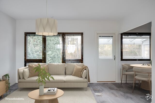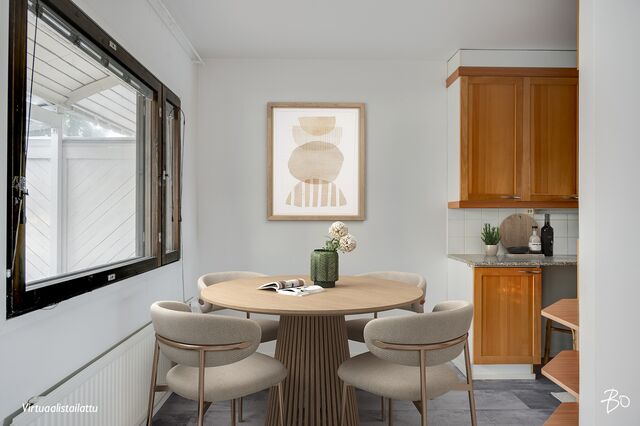 Etusivu / Varsinais-Suomi / Turku / Pitkäsalmenkatu 5 1 / 1 Pitkäsalmenkatu 5 Hirvensalo, Moikoinen, Turku | Rivitalo | 3h, k, wc, kph/s, parv., terassi, var, ap (yj:ssä 3h+k+s) 197 000 € Velaton hinta 80,0 m2 Asuinpinta-ala 390,50 €/kk Hoitovastike 1987 Rakennusvuosi Hirvensalon Moikoisissa kodikas ja valoisa kolmio kahdessa kerroksessa!Sisääntulokerroksesta löytyvät kodin kaksi tilavaa makuuhuonetta sekä iso, vuonna 2014 yhtiön toimesta remontoitu kylpyhuone omalla saunalla. Portaiden alla olevat neliöt ovat kätevästi otettu käyttöön komeron muodossa. Makuuhuoneiden ikkunat ovat rauhaisasti oman takapihan suuntaan. Toisesta makuuhuoneesta on myös käynti omalle pihalle, missä voi rentoutua luontomaisemissa. Takapihan laatoitukset, muurit sekä rima-aita terasseineen on uusittu 2024.Valoisan yläkerran pohjaratkaisu on erittäin toimiva. Keittiössä on paljon laskutilaa sekä säilytysratkaisut ovat toimivat. Kaikki kodinkoneet on uusittu vuonna 2021. Keittiön ja olohuoneen väliin voit sijoittaa ruokapöydän, jolla yhdistät tilat kätevästi ystävien kanssa seurusteluun toimivaksi. Olohuoneesta avaat oven katetulle ja lasitetulle parvekkeelle, jonka luot omaksi ihanaksi keitaaksi. Arkea helpottamaan löytyy yläkerrasta myös oma erillinen wc.Hirvensalon Moikoinen on sijainniltaan ihanteellinen niin lapsiperheelle kuin pariskunnallekin. Meri ja luonto ovat vahvasti läsnä sekä kaikki palvelut, kuten kaupat ja apteekki löytyvät läheltä. Ulkoilumahdollisuudet ovat monipuoliset, sillä nurkan takaa löytyy ranta, venelaituri, leikkipuisto, metsä ja kauniita luontopolkuja. Turun keskustaan ajaa noin kymmenessä minuutissa ja bussiyhteydet ovat erinomaiset.Asunto vapautuu uusille asukkailleen heti kaupanteossa, lämpimästi tervetuloa tutustumaan!KATRI LAGRÉN | 044 519 9421| katri@bo.fifacebook: Bo LKV Katri Lagréninstagram: katrilagrenbolkvHarkitsetko oman asuntosi myyntiä? Pyydä minut sitoumuksetta maksuttomalle arviokäynnille. Kerron samalla lisää tämänhetkisestä asuntomarkkinatilanteesta, palveluistani ja Bo:n loistavasta välityskonseptista sekä miten asunnonvaihdon suhteen kannattaa edetä. Autan mielelläni! Kiinnostaako tämä kohde?Ota meihin yhteyttä tai jätä viesti Katri Lagrén asuntomyyjä, partner 044 519 9421 katri@bo.fi Tutustu välittäjään Varaa aika kalenteristani HuoneistoOsakkeet5973-6327HallintamuotoAsunto-osakeyhtiöHuoneluku3h, k, wc, kph/s, parv., terassi, var, ap (yj:ssä 3h+k+s)Kerros/Kerroksia1/2Asuinpinta-ala80,0 m2Muut tilat0,0 m2Lisätietoja pinta-alastaPinta-aloja ei ole tarkistusmitattu, huoneiston todellinen pinta-ala voi siis olla yhtiöjärjestyksessä, isännöitsijäntodistuksessa ja esitteessä mainittua pienempi tai suurempi. Isännöitsijäntodistuksen mukainen. Yhtiöjärjestyksen mukainen.ParvekeLasitettuKeittiön kuvaus, lisätiedot ja varustusJääkaappi, pakastin, liesi+uuni, liesituuletin, allas, astianpesukone. Kodinkoneet uusittu 2021.Pesutilojen kuvaus, lisätiedot ja varustusSuihku, wc-istuin, allas, allaskaappi, peili, lattialämmitys, liitäntä pesukoneelle. Kylpyhuone saneerattu yhtiön toimesta 2014.WC-tilojen kuvausYläkerrassa erillinen wc.Lukumäärä: 1Saunan kuvaus, lisätiedot ja varustusSauna remontoitu kylpyhuonesaneerauksen yhteydessä 2014.Makuuhuoneen kuvaus, lisätiedot ja varustusToisesta makuuhuoneesta käynti takaterassille.Lukumäärä: 2Oleskelutilojen kuvaus, lisätiedot ja varustusOlohuoneesta käynti lasitetulle parvekkeelle.Muuta kauppaan kuuluvaaKiinteät kaapistot, kiinteät valaisimet.Muutostyöt huoneistossaN. 11v. sitten parveke katettu ja lasitettu. n. 2021 kaikki lattiat (pl. pienempi mh), keittiön kodinkoneet uusittu, seinät ja katot maalattu (pl. pienempi mh). 2014 Yhtiön toimesta kylpyhuone, wc ja sauna remontoitu. 2024 takapihan remontti: laatoitukset, muuri, portti, rima-aidat. KuntoTyydyttävä Kiinteistö- ja yhtiötiedotYhtiön nimiAs. Oy Turun PähkinälehtoTontin omistusOmaTontin koko8 238,00 m2Käyttöönottovuosi1987RakennusmateriaaliTiiliKattotyyppiHarjakattoKateTiiliLämmitysjärjestelmäKaukoEnergiatodistusKylläLisätietoja energiatodistuksestaVoimassa 26.7.2032 saakka.EnergialuokkaD2018Tehdyt korjaukset ja remontit2004 Asunnon A1 märkätila uusittu, 2006 Antenniverkko saneerattu (Kaapeli-tv), 2007 E26 kosteusvaurion korjaus, 2008 Lukot uusittu Abloy execillä, 2008 Märkätilojen kosteuskartoitus, 2009 Liittyminen kaukolämpöön, 2009 Lämpökanaalin vuotokorjaus, 2009 Tiilikaton pesu osittain, 2010-2011 Märkätilaremontit, kuntokartoituksen perusteella Sata-Taito Oy:n toimesta: A4, A6, A25, E21, C15, A5, 2010-2011 Kylpyhuoneiden seinien levytys ja koolaus suoritettu asunnoissa 4, 5, 6, 15, 21, 25, 2012 Pelastussuunnitelma päivitetty, 2012 Ilmastoinnin nuohous ja perussäätö, 2012 Märkätilaremontti D19, 2013 Lämmitysjärjestelmän perussäätö ja patteriventtiilien uusiminen, 2013 Märkätilaremontti & kosteusvaurioituneen sisäseinän korjaus B7, 2013 Pullistuneen sisäseinän korjaus A5, 2013 Lämmitysverkoston perussäätö, patteriventtiilien vaihto ja verkoston täyttö, 2014 Pohjaviemäreiden sekä salaojien pesu ja kuvaus (kuntokartoitus), sakkapesien tyhjennys, 2014 kaukolämpövuotojen korjaus & sadevesiviemäröinnin lisäys, 2014 Katon ja yläpohjan kuntokartoitus ja suositeltavat kiireelliset korjaukset, 2014 Katteen puhdistus, suoja-ainekäsittely ja julkisivun ulkoverhoilun kasvustontuho, 2014 Tiilipintojen puhdistus, impregnointi ja tuuletuksen lisääminen ulkoverhoilun taakse, 2014 Asuntojen 7, 23 ja 17 märkätilojen saneeraus nykymääräysten mukaisiksi, 2014 Leikkikentän kunnostus, 2015 Asuintalojen puuyläosien ja ikkunoiden huoltomaalaus ja korjaus, 2015 Asuntojen 2, 8, 12, 13, 14, 20, 22, 27 märkätilojen saneeraus nykymääräysten mukaisiksi, 2015 Julkisivun puuosien huoltomaalaus, ikkunoiden huoltomaalaus, 2016 Asuntojen 9, 18, 24, 11 märkätilojen saneeraus nykymääräysten mukaisiksi, 2016 Asuintal