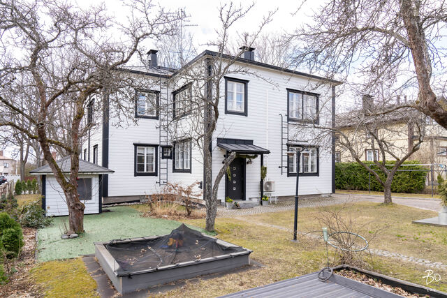 Etusivu / Uusimaa / Porvoo / Sibeliuksenbulevardi 25 as. 1 1 / 1 Sibeliuksenbulevardi 25 as. 1 Keskusta, Porvoo | Paritalo | oh, k, 4h + kellari 345 000 € Velaton hinta 126,0 m2 Asuinpinta-ala 146,0 m2 Kokonaispinta-ala 1933 Rakennusvuosi Suloisessa 1930-luvun hirsitalossa, aivan keskustan kupeessa, sijaitsee lämminhenkinen ja tunnelmallinen ensimmäisen kerroksen paritalohuoneisto. Tämä koti hurmaa heti sisään astuttaessa perinteinen henki on säilytetty kauniisti, ja yksityiskohdista huokuu vanhan ajan charmia.Tilava keittiö kutsuu kokkaamaan puulieden lämmössä, ja huoneistossa säilyneet alkuperäiset kaakeliuunit tuovat sekä lämpöä että silmäniloa. Kodin sähkö- ja putkiremontit on jo tehty, ja kylpyhuone on rakennettu vuonna 2010.Myös koko taloa on ylläpidetty esimerkillisesti: piiput on osin muurattu uudelleen, julkisivu on uusittu energiaremontin yhteydessä, peltikatto vaihdettu ja ulkoseinät maalattu. Lämmitys hoituu vaivattomasti ja edullisesti kaukolämmöllä.Kruununa pihapiiristä löytyy oma idyllinen pihasauna täydellinen paikka rentoutumiseen ja rauhoittumiseen arjen keskellä. Kiinnostaako tämä kohde?Ota meihin yhteyttä tai jätä viesti Jatta Toivola kiinteistönvälittäjä LKV, partner 040 764 4316 jatta@bo.fi Tutustu välittäjään Varaa aika kalenteristani RakennusRakennusvuosi (aloitettu)1933Käyttöönottovuosi1933RakennusmateriaaliPuu, hirsiRakennusmateriaalien kuvausAlakerta on hirsirakenteinen ja yläkerta puurakenteinen. Alakerran laajennusosa on lautarakenteinen. KattotyyppiAumakattoKateKonesaumattu peltikateKaton kuntoUusittu 2016Asuinpinta-ala126,0 m2 (146,0 m2)Lisätietoja pinta-alastaPorvoon rakennusvalvonnan mukaan asunnon huoneistoala on 126 m2, johon lasketaan mukaan yhteiskäyttössä oleva eteinen n. 7, 8 m2. Muut tilat kellari 20 m2. Pinta-alat ovat suuntaa-antavia, eikä niitä ole tarkistusmitattu.Muut tilat20,0 m2IlmanvaihtojärjestelmäKoneellinen poisto kph ja wc.Lämmitysjärjestelmän kuvausKaukoLämmön jakotapaVesikiertoinen patterilämmitys, muuHuonelukuOh, k, 4h + kellariKeittiön muut varusteetAstianpesukone, kiinteät valaisimet, liesituuletin / suodatinLiesiKeraaminen liesi, puuliesiKeittiön työtasojen materiaaliPuuKeittiön lattiamateriaaliLautaKeittiön seinien materiaaliMaalattu, tapettiPesutilojen kuvaus, lisätiedot ja varustusKph uusittu 2010.Kylpyhuoneen varustusSuihkukaappi, pesukoneliitäntä, lattialämmitys, wc-istuin, suihku, peili, kiinteät valaisimetKylpyhuoneen lattiamateriaaliLaattaKylpyhuoneen seinämateriaaliKaakeliSaunaAsunnossa on saunaSaunan kuvaus, lisätiedot ja varustusErillinen sauna. Sauna uusittu 2023 talousrakennuksessa.Saunan lattiamateriaaliLautaSaunan seinämateriaaliPuuWC-tilojen kuvausAllaskaappi (uusittu 2020), peili, hana uusittu 2020.Varustus: bidee-suihkuLattiamateriaalit: lautaSeinämateriaalit: puuMakuuhuoneen kuvaus, lisätiedot ja varustusLattiamateriaalit: lautaSeinämateriaalit: maalattu, tapettiOleskelutilojen kuvaus, lisätiedot ja varustusLattiamateriaalit: lautaSeinämateriaalit: maalattu, puu, tapettiTulisija3 kaakeliuunia + puuliesiTakkatiedotMuuMuut säilytystilatUlkovarastoTehdyt korjaukset2005 putkia uusittu ja sähköt uusittu, kph rakennettu 2010, 2016 asennettu konesaumattu peltikatto (Vaskiseppät) , 2019 paikallisen urakoitsijan tekemä ulkovuoraus- ja energiatehokkuusremontti, jossa vanha rakenne purettu runkoon ja sisäpintaan saakka, runkoa vahvistettu ja paikalliset lahovauriot korjattu, asennettu uudet ilmansulkupaperit (ekovilla), eristeet (ekovilla levy 125 mm) sekä tuulensuojalevyt (25 mm puukuitu) sekä ulkoverhouslaudat. (Veljekset Vaaran Lapin tiukkasyistä päätypontattua paneelia). 2019 uusittu yhteisen eteisen katto sekä lattia kantavine palkistoineen, 2020 Julkisivun maalaus,, 2025 tuulikaappi, portaat ja pikku kaapisto uusittiin.Muuta kauppaan kuuluvaaKeittiön vitriinikaappi.KuntoTyydyttäväEnergiatodistusKylläEnergialuokkaD2018 KiinteistötiedotKiinteistötunnus638-5-149-2TyyppiOmakotitaloTontin koko831,00 m2Tontin omistusOmaPanttikirjat459 450,00 €Lisätietoja tontistaKoko kiinteistön pinta-ala on 831 m2. Molemmat asunnot hallitsevat piha-aluetta yhteisesti.Tie perilleVesijohtoKunnanViemäriKunnanRakennusoikeus350,0 m2Lisätietoja rakennusoikeudestaAsuinrakennus 300 k-m2 + talousrakennus 50 m2. AsumiskustannuksetLämmitys170,00 €Vesi ja jätevesi75,00 €Puhtaanapito17,50 €Kiinteistövero216,88 €Muut maksut / lisätietoa maksuistaVesi- ja kaukolämpömaksut on maksettu puoliksi toisen osakkaan kanssa. Vedenkulutus n. 100 m3/vuosi. Sähkö 4 262 kWh/vuosi, n. 850 euroa eli 71 euroa/kk. Sähkönkulutukseen sisältyvät kaukolämminvaihdin, pihavalaistus ja ulkorakennuksen sähköt. Valokuitu 9,90 euroa/kk. Nuohous 130 euroa/kerta. Talon yhteinen vakuutus koko kiinteistölle 519,24 euroa/v. Lisäksi molemmilla oma kotivakuutus. HintaVelaton hinta345 000,00 € (2 738,10 €/m2)Myyntihinta345 000,00 € (2 738,10 €/m2)VapautuuSopimuksen mukaanMaksuehtoKäteinen. Sinua voisi kiinnostaa Asunnon hinta-arvio ja arviokäynti Asunnon hinta-arvio ja arviokäynti Mitä hinta-arvio maksaa tai miten arviokäyntiä varten kannattaa valmistautua? Katso vastauksemme usein kysyttyihin ky… Sneak Peek® Sneak Peek® Sneak Peek® -palvelumme on askeleen edellä! Löydä alueesi uusimmat ja upeimmat asunnot jo ennen kuin ne ilmestyvät as… Asuntovahti Asuntovahti Etsimässä uutta asuntoa? Aseta itsellesi Bo-asuntovahti. Saat tiedon heti, kun unelmiesi asunto tulee myyntiin. Bo Match Bo Match Kun asuntounelmat ja unelmien asunnot kohtaavat, syntyy Bo Match. Tutustu uudenlaiseen tapaan käydä asuntokauppaa.