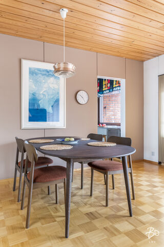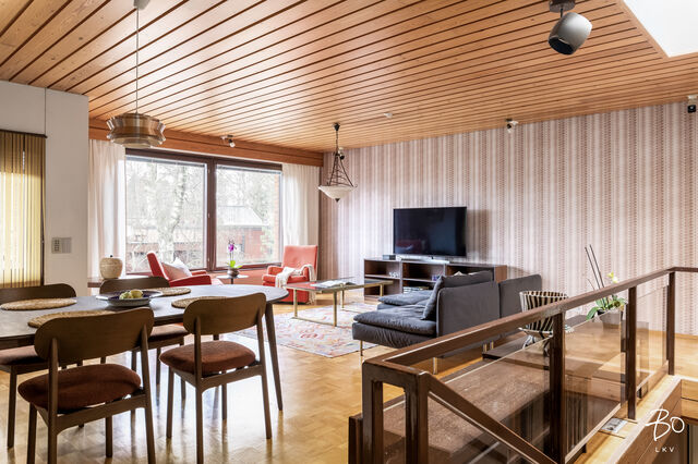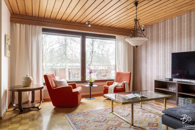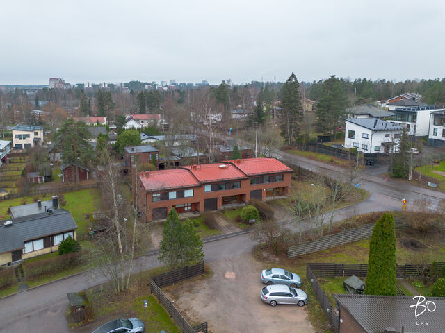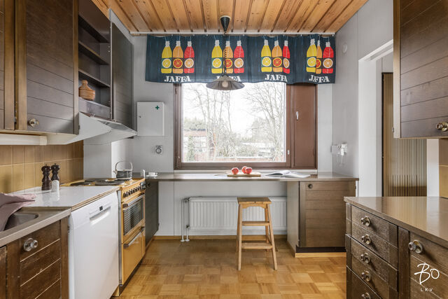 Etusivu / Uusimaa / Espoo / Syyskuja 1 1 / 1 Syyskuja 1 Olari, Olarinmäki, Lystimäki, Espoo | Rivitalo | 5h, k, s, 2 kph, wc, at, var (yj. 4h+k+saunaos.+aput.+autotalli) 435 000 € Velaton hinta 142,0 m2 Asuinpinta-ala 174,0 m2 Kokonaispinta-ala 1978 Rakennusvuosi Hyväpohjainen rivitalokoti 142 / 174 m2 Olarin LystimäessäTämä koti henkii alkuperäistä 1970 luvun lopun tunnelmaa. Asunnon oleskelutiloissa on suuret ikkunat, lattiassa ruututammiparkettia sekä seinissä ja katossa juuri sopiva määrä laadukasta mäntypaneelia. Asunto on lähes alkuperäisessä asussaan. Varovaisella korjauksella ja kunnostuksella tästä saa aivan upean ajan henkeä kunnioittavan kodin.Olohuone, keittiö, ruokailutila, kolme makuuhuonetta sekä kylpyhuone sijaitsevat ylemmässä kerroksessa, jonne noustaan leveitä ja tukevia portaita pitkin eteisestä. Alakerrassa on sauna- ja pesutilat, työhuoneeksi tai saunan pukeutumishuoneeksi sopiva huone, erillinen wc ja ajalle tyypillinen kylmiö. Lisäksi asuntoon kuuluu lämmin varasto ja autotalli. Toista autoa voi säilyttää etupihalla tallin edessä. Talon takana on reilun kokoinen piha-alue pergoloineen. Yläkerrassa on keittiön ja olohuoneen yhteydessä hyvän mallinen parveke, jossa on kiva kokkailla ja ruokailla ulkoilmassa. Lystimäki tunnetaan turvallisena ja lapsiystävällisenä pientaloalueena, jossa on koulut ja päiväkodit kävelyetäisyydellä. Niittykummun metroasemalle ja palveluiden ääreen on kävelymatkaa vain n. 20 minuuttia, omalla autolla pääsee Länsiväylää ja kehäteitä pitkin sujuvasti ulosmenoteille. Helsingin keskustaan on matkaa vain 12 kilometriä.Tervetuloa tutustumaan tähän viihtyisään rivitalokotiin.Esitteet ja esittelyt: Pekka Kujala, 040 832 8888, pekka@bo.fitai Raya Virtanen, 040 820 7717, raya@bo.fi Kiinnostaako tämä kohde?Ota meihin yhteyttä tai jätä viesti Pekka Kujala kiinteistönvälittäjä LKV, partner 040 832 8888 pekka@bo.fi Tutustu välittäjään Varaa aika kalenteristani HuoneistoOsakkeet41-80HallintamuotoAsunto-osakeyhtiöHuoneluku5h, k, s, 2 kph, wc, at, var (yj. 4h+k+saunaos.+aput.+autotalli)Kerros/Kerroksia1-2/2Asuinpinta-ala142,0 m2Muut tilat32,0 m2Lisätietoja pinta-alastaYhtiöjärjestyksen ja isännöitsijäntodistuksen mukainen pinta-ala on 174 m2. Ilmoitettuun pinta-alaan sisältyy asuin- ja muuta asumista palvelevia tiloja n. 142 m2, lisäksi huoneistolla on autotalli n. 25 m2 sekä lämmin varasto n. 7 m2. Edellä mainittu pinta-ala saattaa tämän ikäisessä kohteessa poiketa olennaisestikin huoneiston nykyisen ja rakentamisaikaisen mittaustapojen ja standardien mukaan laskettavasta pinta-alasta. Huoneiston todellinen pinta-ala voi siis olla yhtiöjärjestyksessä, isännöitsijäntodistuksessa ja esitteessä mainittua pienempi tai suurempi. Ostaja voi halutessaan teettää kustannuksellaan pinta-alan tarkistusmittauksen tarkan pinta-alatiedon varmistamiseksi.NäkymätHuoneiston keittiöstä ja olohuoneesta ja alakerran arki-olohuoneesta on näkymät piha-alueelle ja lähikortteleihin. Makuuhuoneista on näkymät naapurustoon noin pohjoiseen. Parvekkeelta on näkymät piha-alueen yli lähiympäristöön. Ilmansuunta n. etelä. ParvekeUlostyönnettyParvekkeen ilmansuuntaEteläKeittiön kuvaus, lisätiedot ja varustusIkkunallinen keittiö sijaitsee kätevästi olohuoneen ja ruokailutilan välittömässä läheisyydessä. Keittiön kalusteet ovat tummaksi petsattua puuta ja tasot laminaattia. Keittiökoneita on uusittu matkan varrella. Pesutilojen kuvaus, lisätiedot ja varustusTässä kodissa on kaksi kylpyhuonetta. Yläkerran kylpyhuoneessa on suihku, allaskaappi sekä wc-istuin. Lattiat ja seinät ovat keraamista laattaa rakentamisajalta, katto on puupaneelia. Alakerran saunan yhteydessä on pesuhuone, jossa on suihkun ja lavuaarin lisäksi tila myös pesukoneelle. Lattia ja seinät ovat 1970-luvulta keraamista laattaa. Puupaneelikatto. Molemmat kylpyhuoneet ovat alkuperäisessä kunnossa. WC-tilojen kuvausAlakerrassa on erillinen wc. Seinät maalattu, lattia keraamista laattaa. Tilavassa wc:ssä on wc-istuimen lisäksi lavuaari ja peili. Wc:n materiaalit ovat rakennusajalta. Yläkerran kylpyhuoneen yhteydessä on talon toinen wc-istuin. Lukumäärä: 2Saunan kuvaus, lisätiedot ja varustusSaunan seinät ja katto on puupaneelia, lauteet ovat apaschia. Lattiassa on keraaminen laatta. Saunassa on sähkötoiminen kiuas. Lauteilta on näkymä ikkunasta piha-alueelle.Makuuhuoneen kuvaus, lisätiedot ja varustusYlemmässä kerroksessa on kolme makuuhuonetta. Makuuhuoneiden seinät ovat maalatut, lattia on muovimattoa ja katossa on Haltex sisustuspaneelit.Lukumäärä: 3Oleskelutilojen kuvaus, lisätiedot ja varustusTämän kodin ylemmässä kerroksessa on avara ja tyylikäs olohuone. Isot ikkunapinnat, tammiruutuparketti ja paneelikatto ovat rakennusajalta ja tuovat tilaan alkuperäistä tunnelmaa ja sen ajan henkeä. Olohuoneessa on reilusti tilaa sohvaryhmälle ja ruokapöydälle ja sieltä on käynti tilavalle noin etelään avautuvalle parvekkeelle.Muut säilytystilatMuu erillinen varastoKuntoTyydyttävä Kiinteistö- ja yhtiötiedotYhtiön nimiAsunto Oy SoldalTontin omistusOmaTontin koko1 386,00 m2Käyttöönottovuosi1978RakennusmateriaaliPuu, tiili, betoniKattotyyppiHarjakattoKatePeltikateLämmitysjärjestelmäKaukoLisätietoja energiatodistuksestaOstaja on tietoinen, ettei kaupan kohteesta ole laadittu lain edellyttämää energiatodistusta. Kaupan osapuolet ovat tietoisia energiatodistuksen hankkimatta jättämisen aiheuttamista mahdollisista seurauksista. Energiatodistus on lakisääteinen asiakirja ja sen hankinnasta vastaa rakennuksen omistaja tai omistajan edustaja, joka asunto-osakeyhtiöissä on useimmiten taloyhtiö (hallitus/isännöitsijä). Energiatodistuslain noudattamista valvoo Asumisen rahoitus- ja kehittämiskeskus (ARA). Mikäli todistusta ei hankita, ARA voi vaatia energiatodistuksen hankkimiseen jopa uhkasakon uhalla.Tehdyt korjaukset ja remontit2024 C