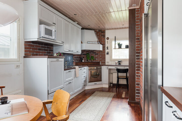 Etusivu / Pirkanmaa / Nokia / Orelinkatu 23 1 / 1 Orelinkatu 23 Koskenmäki, Nokia | Paritalo | 3h-4h, k, th, s, kph, wc,vh 159 000 € Velaton hinta 110,0 m2 Asuinpinta-ala 192,5 m2 Kokonaispinta-ala 1947 Rakennusvuosi Tervetuloa tutustumaan tähän ihastuttavaan asuntoon osoitteessa Orelinkatu 23, Nokia, jossa on tilava olohuone sekä runsaat säilytystilat tekevät arjesta sujuvaa ja viihtyisää. Tämä viehättävä vuonna 1947 valmistunut rakennus, joka on vanha pankki, tarjoaa lämpimiä sisustussävyjä ja kodikasta tyyliä. Asunnon pohjaratkaisu on nerokkaasti suunniteltu, hyödyntäen eritasoratkaisuja, jotka tuovat lisäulottuvuuksia tilankäyttöön. Asunnossa on tilavat makuuhuoneet, keittiö, sauna, kylpyhuone, erillinen wc ja vaatehuone. Tilava olohuone on kuin luotu yhdessäoloon ja sen suuret ikkunat tuovat valoa ja avaruutta koko asuntoon. Asunnolle kuuluu oma suuri pihavarasto, joka on täydellinen tila kädentaitajan omille projekteille tai työkalujen säilytykseen.Nokia on lapsiperheille ihanteellinen alue, missä kaikki tarvittavat palvelut ovat käden ulottuvilla. Lähialueella sijaitsevat koulut ja päiväkodit tekevät arjen logistiikasta vaivatonta. Kattavat palvelut, kuten kaupat, terveyspalvelut sekä liikuntamahdollisuudet, tekevät tästä alueesta monipuolisen ja suositun. Hyvät liikenneyhteydet takaavat sujuvan kulkemisen myös kauemmas. Tämä kohde kutsuu sinut tutustumaan sen ainutlaatuisiin mahdollisuuksiin. Tule kokemaan paikan päälle, miten tämä kaunis asunto voi olla juuri se etsimäsi koti!KOHDETTA MYY: Marko Lamu040 801 3166 I marko.lamu@bo.fi Kiinnostaako tämä kohde?Ota meihin yhteyttä tai jätä viesti Marko Lamu myyntijohtaja, kiinteistönvälittäjä LKV, KiAT 040 801 3166 marko.lamu@bo.fi Tutustu välittäjään Varaa aika kalenteristani RakennusKäyttöönottovuosi1947RakennusmateriaaliPuu, betoniKattotyyppiHarjakattoKatePeltiAsuinpinta-ala110,0 m2 (192,5 m2)Lisätietoja pinta-alastaPinta-ala myyjän ilmoittaman mukaanMuut tilat82,5 m2Lämmitysjärjestelmän kuvausöljyLämmön jakotapaVesikiertoinen patterilämmitys, muuHuoneluku3h-4h, k, th, s, kph, wc,vhKeittiön kuvaus, lisätiedot ja varustusKeittiöstä löytyy, jääkaappi, pakastin, induktioliesi, liesituuletin, erillisuuni, astianpesukone. Työtaso, Laminaatti Lattiat; Laminaatti Seinät; Maali, TiililaattaPesutilojen kuvaus, lisätiedot ja varustusSuihku, Pesukoneliitäntä, Seinät; Lautapaneeli/Laatta Lattiat; LaattaSaunaAsunnossa on saunaSaunan seinämateriaaliPuuWC-tilojen kuvausVarustus: bidee-suihkuLattiamateriaalit: laattaSeinämateriaalit: maalattuMakuuhuoneen kuvaus, lisätiedot ja varustusLukumäärä: 2Lattiamateriaalit: parketti, laminaattiOleskelutilojen kuvaus, lisätiedot ja varustusLattiamateriaalit: laminaattiSeinämateriaalit: maalattu, puuTehdyt korjaukset2001-2004; Patteriputket ja patterit on uusittu keittiöön, eteiseen, olohuoneeseen ja vessaan 2001-2004; Viemäriputket uusittu keittiöön ja vessaan 2001-2004; Sähköt uusittu osittain 2001-2004; Osa ikkunoista uusittu 2001-2004, Julkisivu osittain lisäeristetty uretaanilevyllä 2017; Uusittu kattoluukku, asennettu kulkusillat 2019-2021; Piha-aitojen kunnostus, maalaus ja käsittely. Pensasaidan istutus Orelinkadun puolelle. 2021; Talousrakennuksen vesi-ja aluskate, sisäänkäynnin vesikate. 2021; Pienemmän makuuhuoneen lisäeristys sisäpuolelta ja sisäkaton remontointi. Kauppaan ei kuuluIrtaimistoKuntoTyydyttäväLisätietoja energiatodistuksestaMyyjä hankkii energiatodistuksen KiinteistötiedotKiinteistötunnus536-5-24-10Kortteli/Kiinteistön nimi24TyyppiTonttiTontin tyyppiTasamaatonttiTontin koko767,00 m2Tontin omistusOmaPanttikirjat250 000,00 €Lisätietoja tontistaTämän asunnon omistajalla on hallinnanjakosopimuksen puitteissa omistus kiinteistön määräosasta 43/100. Sen mukaan jakautuvat asunnon käyttö-ja hallintaoikeus sekä muut hallinnanjokosopimuksessa määritellyt oikeudet ja velvollisuudet. Tie perilleVesijohtoKunnanViemäriKunnanLisätietoja rakennusoikeudestaKaavan mukainen rakennusoikeus 350k-m2 Muita tietojaPalvelutK-Market 500m päässä Samoin Nokian kauppa keskittymä 1.3km päässäKouluKoskenmäki-Tervasuon koulu 1-6 vuosiluokat, 900m päässä. Emäkosken koulu 7-9 vuosiluokat, 550m päässä.PäiväkotiMenkalanpäiväkoti 1.1km päässä.LiikenneyhteydetBussipysäkki 500m päässä.Lisätietoa palveluistaMenkalan leikkipuisto, jalkapallo- ja jääkiekkokenttä, sekä Potkosen ulkosali 850m päässä AsumiskustannuksetKiinteistövero206,00 €Muut maksut / lisätietoa maksuistaÖljyn kulutus noin 1600€ per vuosi Sähkönkulutus noin 5050kwh/v Vesi; 20€ / KK / henkilö (arvio) Jätemaksu 5€/kk Hulevesimaksu 49€ / vuosi HintaVelaton hinta159 000,00 € (1 445,45 €/m2)Myyntihinta159 000,00 € (1 445,45 €/m2)Vapautuu2kk / sopimuksen mukaaanMaksuehtoKäteinen. Sinua voisi kiinnostaa Asunnon hinta-arvio ja arviokäynti Asunnon hinta-arvio ja arviokäynti Mitä hinta-arvio maksaa tai miten arviokäyntiä varten kannattaa valmistautua? Katso vastauksemme usein kysyttyihin ky… Sneak Peek® Sneak Peek® Sneak Peek® -palvelumme on askeleen edellä! Löydä alueesi uusimmat ja upeimmat asunnot jo ennen kuin ne ilmestyvät as… Asuntovahti Asuntovahti Etsimässä uutta asuntoa? Aseta itsellesi Bo-asuntovahti. Saat tiedon heti, kun unelmiesi asunto tulee myyntiin. Bo Match Bo Match Kun asuntounelmat ja unelmien asunnot kohtaavat, syntyy Bo Match. Tutustu uudenlaiseen tapaan käydä asuntokauppaa.