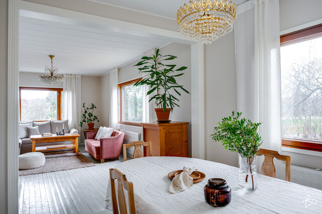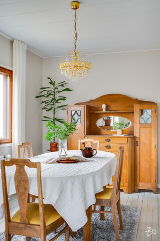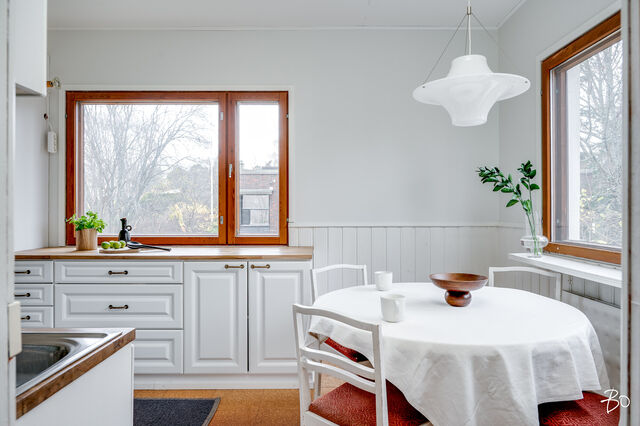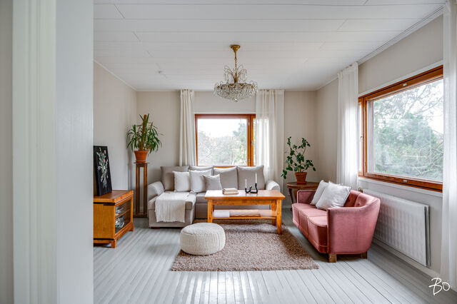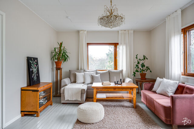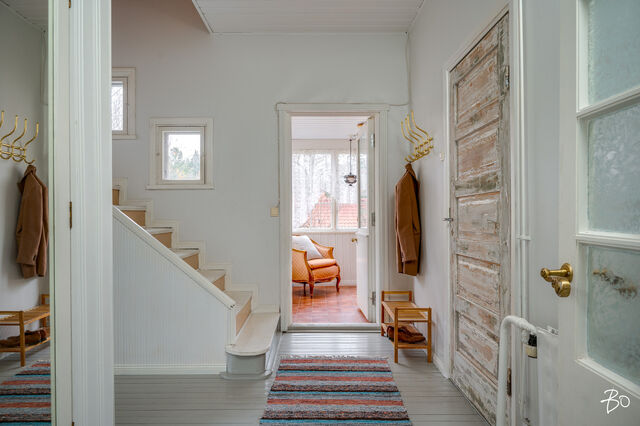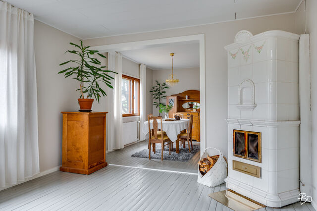 Etusivu / Varsinais-Suomi / Turku / Vanha Littoistentie 63 1 / 1 Vanha Littoistentie 63 Itäharju, Turku | Omakotitalo | 4h+k+2wc+rh+kph+s+ask.h+at+erillinen at 344 000 € Velaton hinta 116,0 m2 Asuinpinta-ala 160,0 m2 Kokonaispinta-ala 1952 Rakennusvuosi Upea 1950-luvun omakotitalo Itäharjun halutulla alueella poikkeuksellisen suurella ja suojaisalla omalla tontillaTämä kauniisti rapattu, 1950-luvun henkeä vaaliva maalämpötalo hurmaa ajattomalla eleganssillaan ja modernilla asumismukavuudellaan. Sijainti Itäharjun arvostetulla, rauhallisella alueella tarjoaa täydellisen yhdistelmän viihtyisyyttä, hyviä palveluja ja sujuvia kulkuyhteyksiä.Sisääntulokerroksessa avautuvat kutsuvat ja valoisat tilat: tyylikäs keittiö, suuri ruokailutila sekä avara olohuone, jonka katseenvangitsijana toimii kaunis kaakeliuuni. Kerroksessa sijaitsevat myös makuuhuone, erillinen wc sekä viehättävä puolilämmin veranta. Alkuperäinen lautalattia tuo kotiin lämmintä tunnelmaa ja klassista ilmettä.Yläkerrassa on kaksi tilavaa makuuhuonetta, hallitila, kaksi vaatehuonetta sekä runsaasti ullakkotilaa. Kylmäan ullakon ansiosta myös lisärakentaminen on mahdollista.Kellarikerros tarjoaa monipuoliset puitteet arjen sujuvuuteen ja harrastuksiin: askarteluhuone, wc, tekninen tila, kylpyhuone ja sauna, jossa on sekä puu- että sähkökiuas. Kellarista löytyy myös erittäin tilava autotalli.Tontin laidalla sijaitsee lisäksi kookas, vanha linja-autotalli, johon on käynti suoraan kadulta. Tila on tällä hetkellä vuokrattuna ja tuo mukavaa lisätuottoa.Kiinteistöön on tehty vuosien varrella runsaasti merkittäviä uudistuksia:maalämpö 2025lattiat ja sisäpinnat päivitetty 20242025ikkunoita uusittu ja kunnostettu 2025vesikatto ja rännit uusittu 2018käyttövesiputkia uusittu 2016julkisivua kunnostettu 2017sauna- ja kylpyhuoneremontti 2000-luvun alussaviemäriputkistot uusittu 1990-luvun lopulla (pois lukien pohjaviemäritTämä kokonaisuus on harvinainen löytö: omaa rauhaa, väljyyttä, perinteikästä arkkitehtuuria ja modernia mukavuutta täydelliset puitteet perhe-elämälle, viihtymiselle ja harrastuksille.Mauno Heinonenkiinteistönvälittäjä LKV, KiAT, partner040 937 2247mauno.heinonen@bo.fi Kiinnostaako tämä kohde?Ota meihin yhteyttä tai jätä viesti Mauno Heinonen kiinteistönvälittäjä LKV, KiAT, partner 040 937 2247 mauno.heinonen@bo.fi Tutustu välittäjään Varaa aika kalenteristani RakennusKäyttöönottovuosi1952RakennusmateriaaliPuu, betoniRakennusmateriaalien kuvausKellarikerroksen osalta betonirunkoinen ja yläkerroksien osalta puurankarunkoinenKattotyyppiHarjakattoKateProfiilipeltikate (kuistilla saumattupeltikate)Katon kuntoVesikatto uusittu 2018Asuinpinta-ala116,0 m2 (160,0 m2)Lisätietoja pinta-alastaPinta-aloja ei ole tarkistusmitattu. Asiakastiedosta saadun rakennuksen tiedot dokumentin mukaan asuinrakennuksen kerrosala on 116m2. Energiatodistuksen mukainen lämmitetty nettoala on 160,3 m2. Mainitut pinta-alat voivat poiketa virallisista nykystandardien mukaan mitattavista pinta-aloista olennaisestikin. Huoneiston todellinen pinta-ala voi siis olla esitteessä mainittua pienempi tai suurempi. Suosittelemme pinta-alan tarkastusmittausta oikean pinta-alatiedon varmistamiseksi. Kerrokset3Muut tilat44,0 m2LämmitysVesikiertoinen patterilämmitys, muu. Maalämpö asennettu 2025Lämmitysjärjestelmän kuvausMaalämpöHuoneluku4h+k+2wc+rh+kph+s+ask.h+at+erillinen atKeittiön kuvaus, lisätiedot ja varustusKeittiön työtasot on uusittu vuonna 2025. Välitilassa on tyylikäs Espanjalainen kaakeli. Keittiössä on runsaasti kaappi- ja laskutilaa, ja erikoisuutena siellä on tilava ruokakomero. Varusteluun kuuluvat jääkaappi/pakastin, astianpesukone, aktiivihiilisuodattimella varustettu liesituuletin sekä keraaminen liesi. Lattiat ovat korkkia ja seinät maalattuja. Keittiöön mahtuu myös hyvin ruokapöytä.Pesutilojen kuvaus, lisätiedot ja varustusKylpyhuone remontoitu arviolta noin vuonna 2000, jolloin on myös lattialämmitys asennettu.Kylpyhuoneen lattiamateriaaliLaattaKylpyhuoneen seinämateriaaliKaakeliSaunaAsunnossa on saunaSaunan kuvaus, lisätiedot ja varustusTunnelmallinen sauna, jossa L-muotoiset lauteet. Saunasta löytyy sekä sähkö, että puu kiuas. Lattia laattaa, yksi seinä laattaa ja muut seinät puupaneelia.WC-tilojen kuvausKeskikerroksen wc: Seinät laattaa. Allaskaappi, peili bidee-suihku. Kellarin wc: Seinät maalattu tiili ja lattia laattaa. Bidee, peili, käsienpesuallas.Lukumäärä: 2Lattiamateriaalit: laattaSeinämateriaalit: kaakeli, maalattuMakuuhuoneen kuvaus, lisätiedot ja varustusLukumäärä: 3Oleskelutilojen kuvaus, lisätiedot ja varustusAlakerran mh: lauta ja maalattu. yläkerran mh: laminaatti, tapettiLattiamateriaalit: lautaSeinämateriaalit: maalattuTulisijaTurun uuniseppien kaakeliuuni TakkatiedotMuuMuut säilytystilatVaatehuone, ullakkoTehdyt korjauksetMaalämpö 2025; lattiat, sisäpinnat ja katot (pääosin) 2024 ja 2025, keittiö (osin) 2025, vessat (osin) 2024-2025. Vanha Littoistentie puoleisen päädyn ikkunat uusittu 2025. Vanhojen ikkunoiden huoltomaalaus 2025. Saunan ja kylpyhuoneen remontti 2000-luvun alussa, kellarikerros paneloitu ja maalattu noin 2003, käyttövesiputket uusittu osittain 2016, julkisivun rappaus uusittu yhdeltä sivulta 2017 ja talon muut sivut maalattu, katto ja rännit uusittu 2018. Viemäri on uusittu 1990-luvun lopulla, paitsi pohjaviemäri, joka on alkuperäinen. Kellarin suihkutilassa sähkökäyttöinen lattialämmitys 2000-luvun alussa. Yläkerran seinäpatterit uusittu ja lämmitysputket myös.Kohteen kuvausOlemassa olevan lupakuvan mukaan kellarikerroksen Wc:tilan paikalla on ruokakellari ja kph on osittain piirustusten mukaan pukeutumissuoja. Alakerran pohja ei ole voimassa olevien lupakuvien mukainen.KuntoHyväEnergiatodistusKylläEnergialuokkaE2018 KiinteistötiedotKiinteistötunnus853-11-60-23Kortteli/Kiinteistön nimi60TyyppiTonttiTontin tyyppiTasamaatonttiTontin koko1