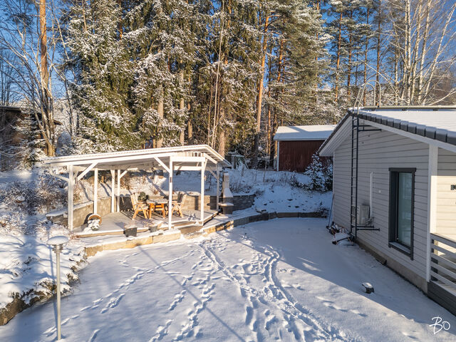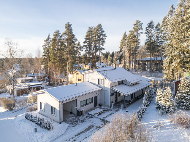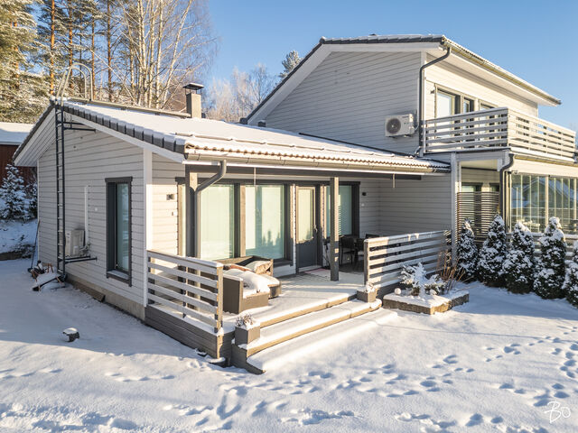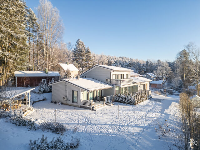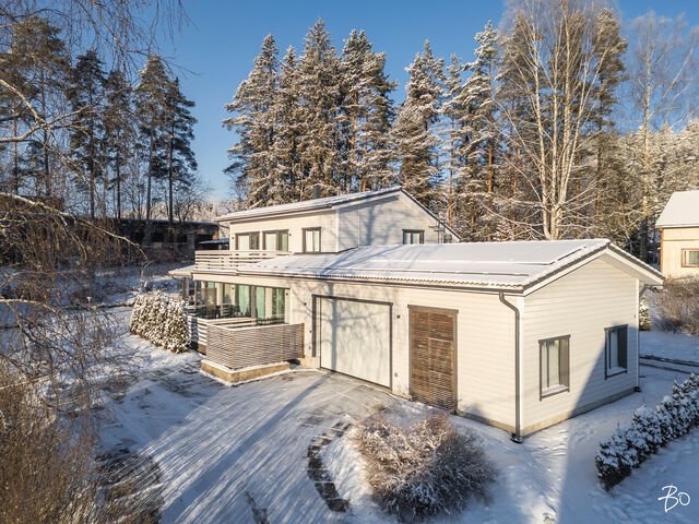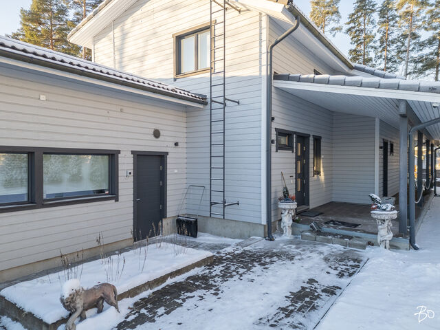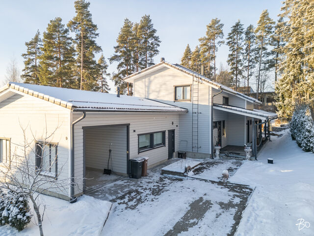 Etusivu / Pirkanmaa / Kangasala / Pikontie 9 1 / 1 Pikontie 9 Pikonkangas, Kangasala | Omakotitalo | 5h, k, s, ph, khh, 2wc ja 2h, k, kph ja autotalli, -katos 529 000 € Velaton hinta 191,0 m2 Asuinpinta-ala 233,6 m2 Kokonaispinta-ala 2015 Rakennusvuosi Tämä viihtyisäksi suunniteltu ja laadukkaasti toteutettu talo ja kaunis pihapiiri toteuttaa asumisen haaveet erilaisissa elämäntilanteissa.Vuonna 2015 valmistuneen talon lämmönlähteenä on maalämpö ja muukin talotekniikka on huoletonta tätä päivää. Rakennuksessa (191/233 m2) on kaksi asuntoa, tilava ja korkea autotalli sekä autokatos. Oma 1350 m2 tontti, jonka oleskelupiha avautuu etelään. Isompi asunto on kaksikerroksinen. Alakerran kodikas sydän on keittiön ja olohuoneen muodostama tila, josta on käynti isolle lasitetulle terassille. Alakerrassa on myös kylpytilat, wc, kaksi vaatehuonetta ja kodinhoitohuone. Yläkerrassa on kolme hyvän kokoista makuuhuonetta, iso aula ja sen yhteydessä työhuone. Tilat on helppo muokata omiin käyttötarkoituksiin sopivaksi. Pienempi asunto on kodikas ja tilava kaksio. Tässäkin asunnossa voi olohuoneessa nauttia varaavan takan lämmöstä ja tunnelmasta. Kylpyhuone on fiksusti suunniteltu, joten tilaa myös pyykkihuollolle. Kaksiolla on oma terassi ja oma yksityinen sisäänkäyntinsä. Tämä asunto sopiikin hyvin isovanhempien kodiksi tai vaikka työtilaksi kodin yhteydessä. Asunnot ovat myös yhdistettävissä yhdeksi, isoksi kokonaisuudeksi.Kangasalan Pikonkangas on mukava paikka asua. Tämän talon sijainti on rauhallinen, ylhäällä rinteessä ja lähellä Kirkkohajun monipuolisia ulkoilumaastoja. Perheelle sijainti on mitä parhain, päiväkoti ja koulut sekä monet harrastusmahdollisuudet ovat lähellä. Lähikauppa 400 m päässä. Bussipysäkki 300 m kotiovelta ja omalla autolla liikkuvalle Lahdentien risteys vain 900 m, jonka kautta ajaa Tampereen keskustan alueelle noin 20 minuuttia.Tervetuloa tutustumaan tähän kotiin yksityisesittelyissä! Lisätiedot ja esittelyt Sari Mesirantakiinteistönvälittäjä LKV, partner045 2230 600sari@bo.fiBo LKV Tampere Kiinnostaako tämä kohde?Ota meihin yhteyttä tai jätä viesti Sari Mesiranta kiinteistönvälittäjä LKV, partner 045 223 0600 sari@bo.fi Tutustu välittäjään Varaa aika kalenteristani RakennusRakennusvuosi (aloitettu)2015Käyttöönottovuosi2015RakennusmateriaaliPuuKattotyyppiHarjakattoKateTiilikateAsuinpinta-ala191,0 m2 (233,6 m2)Lisätietoja pinta-alastaTalossa on kaksi asuntoa. Asunto 1 (k, oh, 3 mh, yläaula, s, ph, khh, 2 wc, 3 vaateh, parveke, lasit.terassi) ja asunto 2 (k, oh, mh, kph/khh, vaateh, terassi). Huoneistoala yhteensä 191 m2 (josta asunto 1 on 72 + 66 m2 ja asunto 2 on 53 m2). Autotalli 42,6 m2. Kerrosala yhteensä 272,5 m2 (josta asunto 1 on 160,5 m2, asunto 2 on 61,5 m2 ja muut tilat 50,5 m2). Pinta-aloja ei ole tarkistusmitattu, tiedot rakennuslupapiirustuksista. Kerrokset2Muut tilat42,6 m2Lämmitysjärjestelmän kuvausMaalämpöLämmön jakotapaVesikiertoinen lattialämmitysHuoneluku5h, k, s, ph, khh, 2wc ja 2h, k, kph ja autotalli, -katosKeittiön kuvaus, lisätiedot ja varustusAsunto 1: kaapistot, laminaattityötasot ja komposiittiallas. Induktiokeittotaso, erillisuuni, integroitu astianpesukone (2017), liesituuletin huippuimurilla, jääkaappi ja kaappipakastin. Kaapistojen välitila ja lattia laatoitettu, maalatut seinät. Käynti lasitetulle terassille. Asunto 2: kaapistot (tammiovet), allas ja laminaattitasot. Induktiokeittotaso, erillisuuni, liesituuletin huippuimurilla, integroitu astianpesukone ja jääkaappi/pakastin. kaapistojen välitila laatoitettu, parkettilattia ja seinät maalatut.Pesutilojen kuvaus, lisätiedot ja varustusAsunto 1:pesuhuoneessa seinät ja lattia laatoitettu. Kaksi sadesuihkua. Lattialämmitys. Asunto 2: kylpyhuoneessa seinät ja lattia laatoitettu. Lattialämmitys. Höyrysuihkukaappi, allas, allaslaatikosto, peili, wc-istuin, kaapistot, laminaattitaso ja tilavaraus pyykinpesukoneelle.SaunaAsunnossa on saunaSaunan kuvaus, lisätiedot ja varustusAsunto 1: laattalattia, seinät ja katto paneloitu. Sähkökiuas Harvian Kivi.WC-tilojen kuvausAsunto 1 alakerran wc: lattia ja seinät laatoitettu. Allas ja allaskaapisto, peili, peilivalo, kaappi ja wc-istuin. Yläkerran wc: lattia ja seinät laatoitettu, lattiakaivo, kaksi allasta, allaslaatikosto, peilikaappi ja wc-istuin.KodinhoitohuoneAsunto 1 khh: laattalattia, seinät maalatut/osittain laatoitettu. Käynti ulos. Kaapistot, laminaattitaso, allas, tilavaraus pesutornille ja kura-allas + suihku. Makuuhuoneen kuvaus, lisätiedot ja varustusAsunto 1: yläkerrassa kolme makuuhuonetta ja lisäksi tilava aulahuone, jonka yhteydessä työtila. Aulasta ja yhdestä makuuhuoneesta käynti parvekkeelle. Parkettilattiat, seinät maalatut / tapetoidut. Päämakuuhuoneessa vaatehuone. Kahdessa makuuhuoneessa kaapistot. Asunto 2: parkettilattia, seinät tapetoidut. Liukuovikaapisto.Oleskelutilojen kuvaus, lisätiedot ja varustusAsunto 1: parkettilattia, seinät maalatut / tapetoidut, varaava takka ja katossa kotiteatteri varaus. Asunto 2: parkettilattia, seinät tapetoidut, varaava takka, käynti terassille.Muut tilatAsunto 1: katettu, lasitettu terassi (puulattiat). Asunto 2: katettu terassi.TulisijaMolemmissa asunnoissa varaava takkaTakkatiedotTakka, muuSeinämateriaalitMaalatut / tapetoidutLattiamateriaalitAsunto 1: laattalattia keittiö, eteinen ja eteisen vaatehuone, muutoin parkettilattiat. Asunto 2: parkettilattiat.Tehdyt korjaukset2024 tarkistettu IV-koneet (asunnoissa omat IV-koneet) ja vaihdettu niihin puhaltimien laakerit. 2024 tarkistettu lattialämmityksen termostaatit, uusittu tarvittavin osin. 2021 puhdistettu tiilikatteet. 2019/ 2017 asennettu ilmalämpöpumput Muuta kauppaan kuuluvaaKaikissa tiloissa himmennettävä led-valaistus, lisäksi eteinen ja wc:t liiketunnistimilla. CAT 6 verkko. Ilmalämpöpumput viilennykseen. Ulkona valvontakamerajärjestelmä. Hälytinjärjestelmä (murto ja kosteus). Säle
