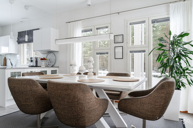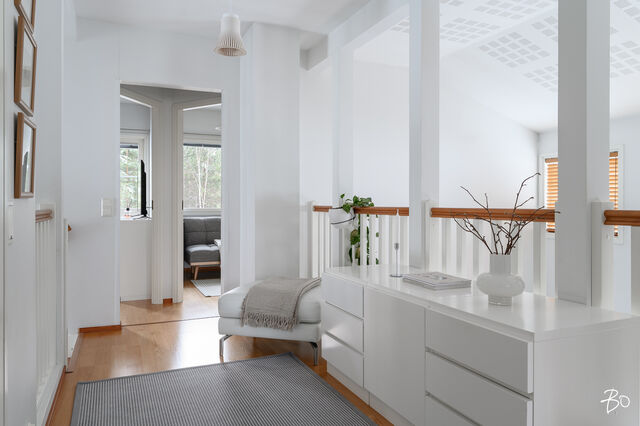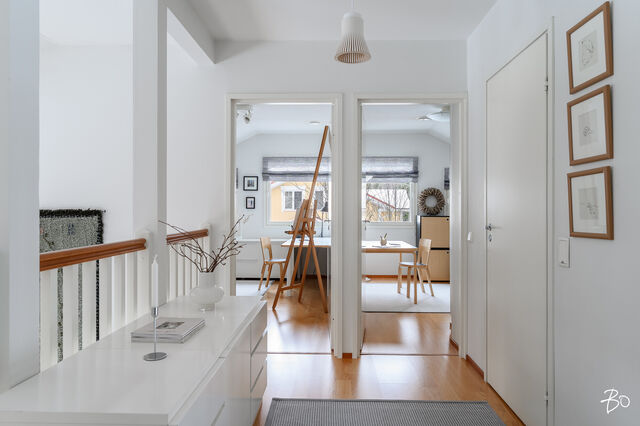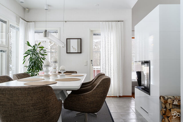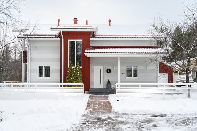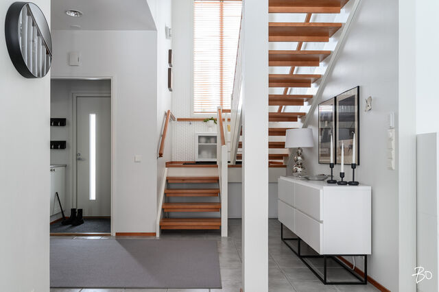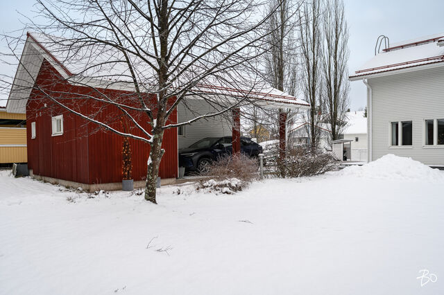 Etusivu / Pohjois-Pohjanmaa / Oulu / Ukonvaaja 6 1 / 1 Ukonvaaja 6 Metelinkangas, Kaakkuri, Oulu | Omakotitalo | 4mh,oh,kirjasto,rt,k,khh,vh,ph,s,2wc, autotalli, varastot 395 000 € Velaton hinta 148,0 m2 Asuinpinta-ala 149,0 m2 Kokonaispinta-ala 2003 Rakennusvuosi Seuraava esittely: 23.02.2026 klo 17.00-17.30 Kodikas, kaunis ja hyvin hoidettu omakotitalo - loistava sijainti Metelinkankaalla!Tervetuloa tutustumaan tähän lämminhenkiseen ja klassisen kauniiseen kotiin, joka sijaitee tien päässä omalla 857 m2 kulmatontilla, joka rajoittuu kahdelta puolelta puistoalueeseen. Kahteen tasoon vuonna 2003 rakennettutusta arkkitehdin suunnittelemasta talosta on pidetty hyvää huolta vuosien varrella.Sisään astuessa huomio kiinnittyy korkeaan olohuoneeseen. Tunnelmaa täydentää linjakas takka, joka avautuu sekä ruokailutilaan, että olohuoneeseen, joka yhdistyy saumattomasti keittiöön ja ruokailutilaan muodostaen avaran ja viihtyisän kokonaisuuden. Ajaton vaalea 2018 uusittu keittiö on varusteltu laadukkain materiaalein ja kodinkonein, runsaalla säilytystilalla sekä käytännöllisillä toiminnoilla. Alakerrassa on lisäksi kirjastohuone kauniine lasiliukuovineen, joka sopii myös työ-/vierashuonekäyttöön. Arkea helpottaa toimiva kodinhoitohuone, jossa on kurapiste ja käynti ulos, sekä pesuhuone/sauna tilat. Toisessa kerroksessa sijaitsee neljä mukavan tilavaa makuuhuonetta, parveke ja wc/pesuhuone.Kaukolämpö ja vesikiertoinen lattialämmitys tekevät asumisesta miellyttävää ja kustannuksiltaan maltillista ympäri vuoden. Etätöitä tekeville kodita löytyy valokuituyhteys.Erillisessä rakennuksessa on lämmitettävä ja eristetty autotalli/varasto tilaa. Lisäksi autokatos tuo helpotusta arkeen. Suojaisa ja kaunis aidattu piha kiveyksineen ja terasseineen on kesällä viihtyisä keidas koko perheelle.Metelinkangas on erityisesti lapsiperheiden suosiossa, ja se tarjoaa erinomaiset puitteet perheiden arkeen. Alueelta löytyy kattavat palvelut ja monipuoliset ulkoilumahdollisuudet ovat kirjaimellisesti ulko-oven tuntumassa. Tämä koti on täydellinen valinta niille, jotka arvostavat rauhallista ja turvallista asuinympäristöä sekä monipuolisia palveluja. Lämpimästi tervetuloa tutustumaan tähän kauniiseen kotiin!Maarit Nevalainenkiinteistönvälittäjä LKV, KJK, partner040 828 0063maarit.nevalainen@bo.fi_____________________________________________________________ETSITKÖ KODILLESI KIINTEISTÖNVÄLITTÄJÄÄ?Varaa minut helposti kalenterini kautta arvioimaan kotiasi.https://bo.fi/henkilo/maarit-nevalainen/#kalenteri Kiinnostaako tämä kohde?Ota meihin yhteyttä tai jätä viesti Maarit Nevalainen kiinteistönvälittäjä LKV, KJK, partner 040 828 0063 maarit.nevalainen@bo.fi Tutustu välittäjään Varaa aika kalenteristani RakennusRakennusvuosi (aloitettu)2002Käyttöönottovuosi2003RakennusmateriaaliPuuRakennusmateriaalien kuvausPuuKattotyyppiHarjakattoKateTiiliAsuinpinta-ala148,0 m2 (149,0 m2)Lisätietoja pinta-alastaRakennuspiirustusten mukaan asuinrakennuksen huoneistoala on n. 148 m2 ja tekninentila n. 1 m2, kerrosala n. 167 m2 Erillinen lämmin autotalli-varastorakennus 37/45 m2Kerrokset2Muut tilat1,0 m2Lämmitysjärjestelmän kuvausKaukoLämmön jakotapaVesikiertoinen lattialämmitysHuoneluku4mh,oh,kirjasto,rt,k,khh,vh,ph,s,2wc, autotalli, varastotKeittiön kuvaus, lisätiedot ja varustusAla Carte keittiö uusittu 2018, Ylämaan Graniitti Oy:n Silestone kvartsikomposiitti tasot, LG:n jääkaappi ja pakastin uusittu 2023, viinikaappi 2024, muut laitteet SiemensKeittiön muut varusteetLiesituuletin, mikroaaltouuni, astianpesukone, kiinteät valaisimetLiesiErillisuuni, liesitasoKeittiön työtasojen materiaaliKiviKeittiön lattiamateriaaliLaattaKeittiön seinien materiaaliMaalattuKylpyhuoneen varustusSuihkuseinä, suihku, kiinteät valaisimet, kylpyhuonekaapistoKylpyhuoneen lattiamateriaaliLaattaKylpyhuoneen seinämateriaaliKaakeliSaunaAsunnossa on saunaSaunan lattiamateriaaliLaattaSaunan seinämateriaaliPuuWC-tilojen kuvausAlakerran WC on uusittu 2023Lukumäärä: 2Lattiamateriaalit: laattaSeinämateriaalit: kaakeliKodinhoitohuoneVarustus: pesukone, pesukoneliitäntä, kuivausrumpu, lattiakaivo, pyykkikaapit, kurapiste, pöytätaso, keskuspölynimuriLattiamateriaalit: laattaSeinämateriaalit: maalattuMakuuhuoneen kuvaus, lisätiedot ja varustusLukumäärä: 4Lattiamateriaalit: parkettiSeinämateriaalit: maalattu, tapettiOleskelutilojen kuvaus, lisätiedot ja varustusOlohuoneessa korkea kattoLattiamateriaalit: parkettiSeinämateriaalit: maalattuMuut tilatEteisaulan lattia laattaa Ruokailutilan lattia laattaa Alakerran kirjastohuoneen lattia parkettia TulisijaUusittu 2021TakkatiedotTakkaMuut säilytystilatVaatehuone, ulkovarastoTehdyt korjauksetUlkopuoliset remontit: 2025 Aitojen huolto, korjaus ja maalaus 2025 Ilmanvaihdon puhdistus, mittaus ja säätö 2024 Pihakiveysten pesu ja pinnoitus, uusi jätekatos 2023 Kattojen huolto (tiilien vaihtoa, pesu ja pinnoitus/maalaus) piipun pellitysten tarkistus ja huolto, rännien tarkistus, terassin valokatteen uusiminen 2021 Talon ja ulkorakennusten maalaus (perinnemaaliosuudet maalattu myös aikaisemmin) Sisäpuoliset remontit: 2023 Alakerran WC:n uusiminen, eteisen kaapisto ja kirjastohuoneen ovet 2021 Takan uusiminen 2018 Keittiön uusiminenKuntoHyväEnergiatodistusKylläEnergialuokkaC2018Lisätietoja energiatodistuksestaVoimassa 28.1.2036 saakka KiinteistötiedotKiinteistötunnus564-27-137-10TyyppiOmakotitaloTontin tyyppiTasamaatonttiTontin koko857,00 m2Tontin omistusOmaPanttikirjat250 000,00 €Lisätietoja tontistaKulmatontti rajoittuu kahdelta puolelta puistoalueeseen. Tie perilleVesijohtoKunnanViemäriKunnanRakennusoikeus280,0 m2Lisätietoja rakennusoikeudestaKäytetty 212km2, käyttämättä n. 70km2 AsumiskustannuksetKiinteistövero636,48 €Muut maksut / lisätietoa maksuistaKaukolämmön vuosikäyttöarvio on 24 MWh ja sähkön vuosikäyttöarvio 7 658 kWh (sisältää käyttösähkön, varastojen ja au