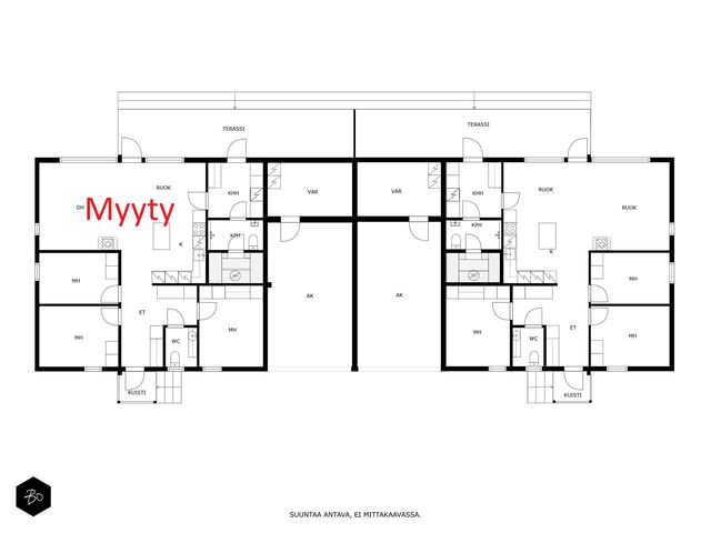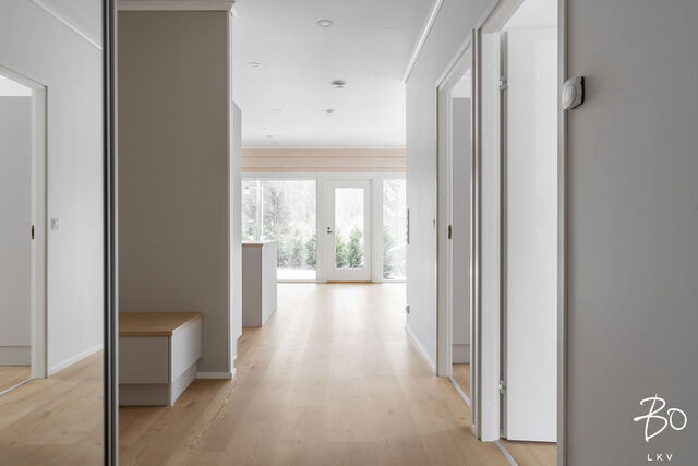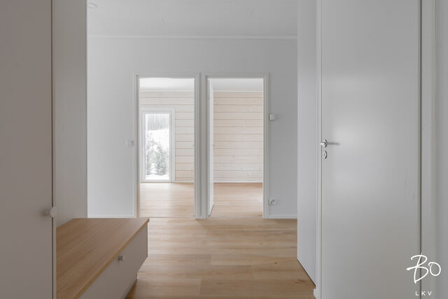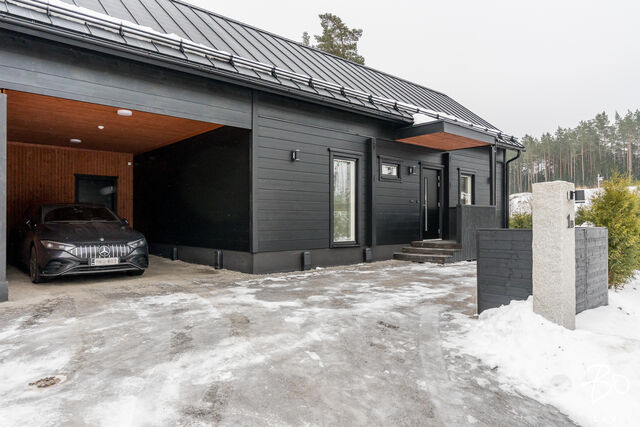 Etusivu / Varsinais-Suomi / Lieto / Jalokiventie 1 as 2 1 / 1 Jalokiventie 1 as 2 Vanhalinna, Lieto | Paritalo | 4h+k+kph/wc+s+khh+wc+terassi+autokatos+lämmin varasto 416 000 € Velaton hinta 101,0 m2 Asuinpinta-ala 111,0 m2 Kokonaispinta-ala 2025 Rakennusvuosi Villa Black Diamond on MUUTTOVALMIS Hirsi uudiskohde, joka yhdistää laadun, ekologisuuden ja ainutlaatuisen sijainnin. Villa Black Diamond on kiinteistömuotoinen hirsiparitalo uudiskohde arvostetulla Vanhalinnan Kartanoalueella! Tämä ainutlaatuinen hirsiparitalo yhdistää modernin asumismukavuuden, perinteikkään rakennustyylin sekä poikkeuksellisen luonnonläheisyyden.Sijainti, joka tarjoaa parasta kaikilta osinVilla Black Diamond sijaitsee Vanhalinnan Kartanoalueella, yhdellä seudun arvostetuimmista ja uniikeimmista asuinalueista. Tämä rauhallinen asuinpaikka tarjoaa erinomaiset kulkuyhteydet kaikkiin ilmansuuntiin sekä sujuvan arjen palveluiden äärellä. Läheisyydessä sijaitsevat Ravattulan Citymarketin kauppakeskittymä, Liedon keskusta sekä Turun palvelut, joihin on nopeat yhteydet niin julkisilla kulkuvälineillä kuin kevyenliikenteen väyliäkin. Lähin linja-autopysäkki on vain noin 150 metrin päässä.Alueella ei ole läpiajoliikennettä, ja asumisrauhaa lisäävät suurikokoiset meluvallit, jotka suojaavat Hämeentien ääniltä. Lisäksi Vanhalinnan upeat luontopolut kulkevat aivan rakennuspaikan vieressä, tuoden luonnon osaksi jokapäiväistä elämää.Ekologista ja energiatehokasta hirsirakentamistaVilla Black Diamond on rakennettu arvostaen alueen perinteitä, luonnonmukaisuutta ja kestävää kehitystä. Rakennusmateriaalina käytetty Kuusamo Hirsitalot Oy:n kotimainen kuusihirsi takaa terveellisen sisäilman ja kestävän rakenteen. Hirsi on hengittävä materiaali, joka sitoo ja vapauttaa kosteutta luonnollisesti, varmistaen asumismukavuuden kaikissa olosuhteissa.Lämmitysjärjestelmässä on panostettu energiatehokkuuteen ja kustannustehokkuuteen. Päälämmitysmuotona toimii markkinoiden johtava NIBE S735 -poistoilmalämpöpumppu. Lisäksi asunnoissa on vakiona ilmalämpöpumppu, joka tarjoaa tehokkaan lämmitys- ja viilennysratkaisun. Kiinteistöllä on valmius aurinkopaneeleille sekä sähköauton latausasemille, mikä mahdollistaa entistä ekologisemman asumisen tulevaisuudessa.Laadukkaat ja huolella suunnitellut sisustusratkaisutVilla Black Diamond tarjoaa korkeatasoista asumista, jossa materiaalivalinnat ja sisustusratkaisut ovat tarkoin harkittuja. Arvostetun sisustussuunnittelijan suunnittelemat pintamateriaalit sekä Siemensin iQ-sarjan kodinkoneet takaavat tyylikkään ja käytännöllisen lopputuloksen.Avarat ja valoisat oleskelutilat: Runsaat ikkunapinnat tuovat luonnonvalon osaksi sisustusta.Tarkoin valitut lattiamateriaalit: Kuivissa tiloissa kestävät ja laadukkaat vinyylilankkulattiat, kylpyhuoneissa suuret 600x600 mm laatat sekä näyttävä linjalattiakaivojärjestelmä.Viimeistelty valaistus: Kiinteät LED-spottivalot himmennysominaisuuksilla lisäävät asumismukavuutta.Keittiö ja kodinhoitotilat: Täysikorkeat jääkaapit ja pakastimet, modernit keittiökalusteet sekä toimivat kodinhoitoratkaisut tekevät arjesta sujuvaa.Takkavaraus: Mahdollisuus lisätä tunnelmaa luova takka asuntoon.Upeat ulkotilat ja viimeistellyt rakenteetTakapiha rajoittuu viihtyisään puistoalueeseen, tarjoten yksityisyyttä ja luonnonläheisyyttä.Terassitilat: Yli 40 m² terassitilaa. Asunnossa on lisäksi noin 30 m² aurinkoterassivaraus.Tilava autokatos ja varasto: Asuntoon kuuluu oma todella tilava autokatos sekä lämmin ulkovarasto/tekninen tila, minkä lisäksi molemmille huoneistoille on asemakuvan mukainen lisäautopaikka.Varmatoiminen ja turvallinen perustustapaRakennuksen perustana toimii tuulettuva alapohja, joka on varma ja turvallinen ratkaisu laadukkaalle rakennukselle. Tämä estää tehokkaasti kosteuden kapillaarisen nousun ja takaa rakenteiden pitkäikäisyyden.Esittelyt ja lisätiedot:Kiinteistönvälittäjä Mauno Heinonen040 937 2247 | mauno.heinonen@bo.fi Kiinnostaako tämä kohde?Ota meihin yhteyttä tai jätä viesti Mauno Heinonen kiinteistönvälittäjä LKV, KiAT, partner 040 937 2247 mauno.heinonen@bo.fi Tutustu välittäjään Varaa aika kalenteristani RakennusKäyttöönottovuosi2025RakennusmateriaaliHirsiRakennusmateriaalien kuvausRakenteet: Hirsikehikko LHM 202x220 mm Jiirinurkka, tasanousu Kattoristikoiden päädyt hirsipaneeli 28x198 mm Autokatoksen ja terassin väliseinät moderni UTV ST/kuusi pystypaneeli 29x95 mmKattotyyppiHarjakattoKateLukkosaumapeltikate JANLA, pinnoitetakuu 25 vuottaKaton kuntoUusiAsuinpinta-ala101,0 m2 (111,0 m2)Lisätietoja pinta-alastaHuoneistoala 101 m2 ja lämmin varasto 10 m 2.Muut tilat10,0 m2LämmitysVesikiertoinen lattialämmitys, muu. UusiLämmitysjärjestelmän kuvausMuuHuoneluku4h+k+kph/wc+s+khh+wc+terassi+autokatos+lämmin varastoKeittiön kuvaus, lisätiedot ja varustusLaadukas Puustellin keittiö. Lattia vinyylilankkua seinät hirsi/maalattu. Siemensin laadukkaat iQ-sarjan kodinkoneet Täysikorkea erillinen jääkaappi Siemens iQ500 Täysikorkea erillinen pakastin Siemens iQ500 Liesi iQ100 induktiokeittotaso Liesituuletin Lapetek Flex, musta (aktiivihiilisuodatin) Astianpesukone iQ300 Kalusteuuni iQ300 kalusteisiin sijoitettava, musta Mikroaaltouuni iQ500 kalusteisiin sijoitettava, mustaPesutilojen kuvaus, lisätiedot ja varustusKylpyhuone laadukasta Limestone 600x600 mm laattaa, linjalattiakaivo vakiona. SaunaAsunnossa on saunaSaunan kuvaus, lisätiedot ja varustusLattia: Laattaa 100x100 mm. Seinät: lämpöhaapa 120 mm paneelia. Lauteet: Lämpöhaapa 28x120 mm, saunan lattiataso rakennetaan nykyaikaisesti umpeen (ns. integroitu malli) Harvia Cilindro Black Steel PC70XE intregroitu kiuas digitaalisella etäohjauksella.WC-tilojen kuvausLattia laattaa 600x600 mm. Seinät maali ja kaappien välitila laattaa. Kalusteet Puustellilta tarkemmat tiedot välittäjältä. Lukumäärä: 2KodinhoitohuoneTilava kodinhoitohuone, jo