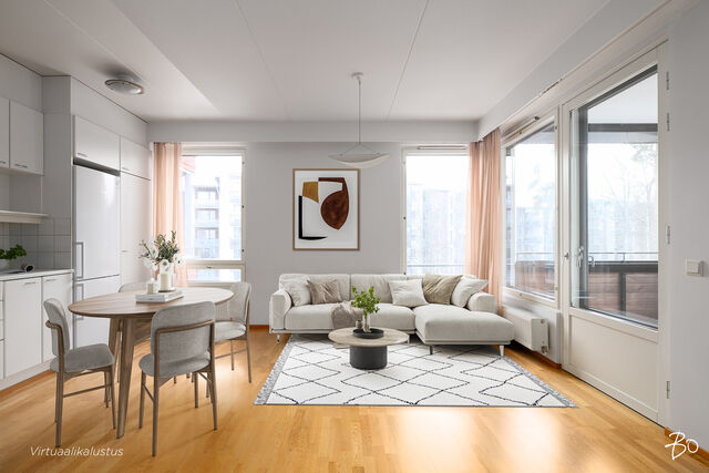 Etusivu / Uusimaa / Espoo / Gyldenärinkatu 5 1 / 1 Gyldenärinkatu 5 Leppävaara, Espoo | Kerrostalo | 3h,kk,s (yj. 3h+kk+s) 248 000 € Velaton hinta 59,0 m2 Asuinpinta-ala 330,40 €/kk Hoitovastike 2003 Rakennusvuosi Seuraava esittely: 15.02.2026 klo 13.00-13.45 Tämä heti kaupasta vapaa, kahden makuuhuoneen koti tarjoaa toimivan ja selkeän pohjaratkaisun, jossa arki rullaa mutkattomasti. Olohuone ja keittiö muodostavat yhtenäisen kokonaisuuden, joka tuntuu avaralta ja valoisalta. Erittäin tilava lasitettu parveke tuo mukavasti lisätilaa oleskeluun aikaisesta keväästä pitkälle syksyyn. Kaksi makuuhuonetta antavat joustavuutta niin perheelle, etätyöhön kuin vierashuoneen tarpeisiin ja oma sauna kruunaa kokonaisuuden.Asunnon sijainti Leppävaarassa on yksi sen suurimmista valteista. Kaikki arjen palvelut löytyvät kävelyetäisyydeltä: kauppakeskus Sello, ruokakaupat, kahvilat, ravintolat ja monipuoliset erikoisliikkeet ovat aivan lähellä. Julkiset liikenneyhteydet ovat erinomaiset juna vie Helsingin keskustaan nopeasti, ja bussiyhteydet toimivat sujuvasti eri suuntiin. Alue tarjoaa loistavat puitteet myös vapaa-aikaan. Läheltä löytyvät Leppävaaran urheilupuisto, uimahalli, ulkoilureitit ja vehreät puistoalueet, jotka houkuttelevat liikkumaan ympäri vuoden. Tässä kodissa yhdistyvät keskeinen sijainti, toimiva pohja ja huoleton asuminen - erinomainen valinta sinulle, joka arvostat sujuvaa arkea ja hyviä yhteyksiä.Ota yhteyttä ja varaa oma esittelyaikasi.Tarmo Wuolab 044 0807630Kiinteistönvälittäjä LKV, LVV, KiAT, Partnertarmo@bo.fihttp://www.tarmomyyasuntosi.fiTOSISSAAN, VAAN EI VAKAVASTIEi nimi miestä pahenna, sillä olen tehnyt Tarmokasta asuntokauppaa jo 35 vuotta ja noin 1900 kaupan kokemuksella.OMA ASUNTO MYYMÄTTÄ? Varaa minut helposti kalenterini kautta arvioimaan kotiasi.https://bo.fi/henkilo/tarmo-wuolab/#kalenteri Kiinnostaako tämä kohde?Ota meihin yhteyttä tai jätä viesti Tarmo Wuolab kiinteistönvälittäjä LKV, LVV, KiAT, partner 044 080 7630 tarmo@bo.fi Tutustu välittäjään Varaa aika kalenteristani HuoneistoOsakkeet5425-5906HallintamuotoAsunto-osakeyhtiöHuoneluku3h,kk,s (yj. 3h+kk+s)Kerros/Kerroksia3/5Asuinpinta-ala59,0 m2Muut tilat0,0 m2Lisätietoja pinta-alasta Yhtiöjärjestyksen mukainen. Isännöitsijäntodistuksen mukainen.ParvekeLasitettuParvekkeen ilmansuuntaEteläHissiTaloyhtiössä on hissiLiesiSähköliesiKeittiön työtasojen materiaaliLaminaatti, metalliKeittiön lattiamateriaaliParkettiKeittiön seinien materiaaliKaakeli, maalattuPesutilojen kuvaus, lisätiedot ja varustusVarustelu: wc-istuin, suihku, suihkuseinä, pyykinpesukoneliitäntä, peilikaappi, allas, bidee-suihkuKylpyhuoneen lattiamateriaaliLaattaKylpyhuoneen seinämateriaaliKaakeliSaunan lattiamateriaaliLaattaSaunan seinämateriaaliPuuMakuuhuoneen kuvaus, lisätiedot ja varustusLukumäärä: 2Lattiamateriaalit: parkettiSeinämateriaalit: maalattuOleskelutilojen kuvaus, lisätiedot ja varustusLattiamateriaalit: parkettiSeinämateriaalit: maalattuKuntoHyvä Kiinteistö- ja yhtiötiedotYhtiön nimiAsunto Oy Espoon RosavillaTontin omistusOmaTontin koko1 106,00 m2Käyttöönottovuosi2003RakennusmateriaaliBetoniKattotyyppiTasakattoKateBitumihuopaLämmitysjärjestelmäKaukoEnergiatodistusKylläLisätietoja energiatodistuksestaViimeinen voimassaolopäivä 09.06.2033EnergialuokkaD2018Tehdyt korjaukset ja remontit2006 Ovipuhelimet 2012 Rännien saattolämmitykset 2013 Parvekkeiden ulkopuolisten puupintojen maalaus 2014 Ilmanvaihtokanavien puhdistus 2014 Pesuhuoneiden kopojen seinälaattojen injektointi takuutöinä 2015 A3 pihan terassilaatan reunan maan vajoamakohdan korjaus 2016 Kaikkien huoneistojen ikkunoiden tiivisteiden vaihto ja mekanismien huolto 2017 Julkisivujen elementtien ja ikkunasaumojen uusintasaumaukset 2017 Metalliportti pihan rappujen yläpäähän 2019 Huoneistojen ja yleistilojen lämmityspattereiden venttiilien herkistykset, termostaattien säädöt 2020 Pihapuiden leikkuut 2021 Pyörävaraston, verkkokellarivaraston käytävien ja roskatilan lattioiden maalaus 2022 Huoneistojen ja yleistilojen lämmityspattereiden venttiilien herkistykset, termostaattien säädöt 2022 Kattoluukun uusinta 2023 Kaukolämmönvaihtimen uusinta 2023 Ikkuna- ja porrasovitiivisteiden tarkastus ja tarvittavat korjaukset 2023 Parvekkeiden ulkopuolisen pilarin korjaus ja maalaus sekä parvekelinjan osittaiset uusintasaumaukset 2023 Porrashuoneen pienpaikkaukset ja paikkamaalaukset 2023 Huoneistopiha-aitojen huoltomaalaus ja kunnostus 2024 Punajäkälän poisto ja kasvuestoaineen levitys 2024 Sähkökeskuksen lämpökuvaus 2025 Piha-alueiden hoitoleikkaukset, PalovaroitinjärjestelmäTiedossa olevat tulevat korjaukset/remontit2026 Pihapenkkien kunnostus, Kellaritilan seinärakenteiden tuuletuksen parantaminen 2026 Viemäriverkoston toimintakunnon tarkastaminen, Märkätilojen kuntoarvio, Lukitusjärjestelmän uusinta, kopiosuoja päättynyt 2027 Ilmanvaihtokanavien puhdistus ja säätö 2028 Ovipuhelinjärjestelmän uudistaminen 2029 Pylväsvalaisimien uusiminen Led- valaisimiksiSähköpistokepaikkoja15Lainat11 645,57 €Kiinnitykset1 124 000,00 €IsännöitsijäEhta isännöinti, Mäntyviita 2, 02110 Espoo Isännöitsijä Annariikka Orrensalo, asiakaspalvelu 020 750 5400 KiinteistönhoitoHuoltoyhtiöTaloyhtiössä muutaYhtiössä koneellinen poistoilmanvaihto. Yhteiset tilat: ulkoiluvälinevarasto, irtaimistovarastot, kuivaushuone, kerhohuone (vuokrattuna). Muita tietojaLisätietoa kaavoituksestaEspoon kaupunki, kaavoitus, https://kartat.espoo.fi/VapautuuHeti AsumiskustannuksetHoitovastike330,40 €/kk (5,60 €/m2)Rahoitusvastike36,58 €/kk (0,62 €/m2)Yhtiövastike yhteensä366,98 €Vesi23,00 €/hlö/kkMuut maksut / lisätietoa maksuistaVesimaksu on ennakko, tasaus todellisen kulutuksen mukaan. Autopaikka 36,00 € / kk, sekä latausmaksu paikoilla, jossa latausmahdollisuus 0,125 € / kWh. Käyttösähkö kulutuksen/oman sähkösopimuksen mukaisesti. Kotiva