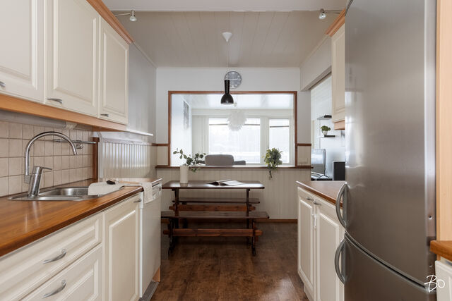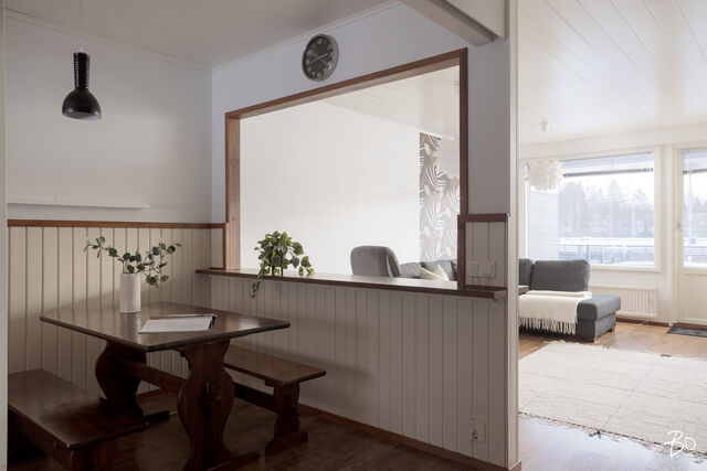 Etusivu / Keski-Suomi / Jyväskylä / Kivirannantie 22 1 / 1 Kivirannantie 22 Palokka, Jyväskylä | Rivitalo | 3h, k, kph, s, wc, vh, terassi 145 000 € Velaton hinta 79,0 m2 Asuinpinta-ala 316,00 €/kk Hoitovastike 1980 Rakennusvuosi Siistikuntoinen tilava kolmio halutulta sijainnilta Palokan palveluiden lähettyviltä. Tämän yksitasoisen kaukolämmöllä lämpiävän talon tontti on oma ja pihapiiri rajoittuu metsäalueeseen. Sisään saavuttaessa naulakko löytyy eteisestä, oikealle avautuu ensimmäinen tilava makuuhuone. Asunnon erillinen tilava wc on oikealla puolella, jonka viereltä on kulku uusittuun kylkyhuone- saunatilaan. Moderni marmorikuvioitu kylpyhuone pitää sisällään myös mainion tilan kodinhoidolle. Keittiö on tulosuunnasta vasemmassa laidassa ja ruokailuun varattu tila on keittiön ja olohuoneen välissä. Olohuoneen päädystä on kulku toiseen makuuhuoneeseen, jonka vaatehuoneen kautta pääsee kätevästi suoraan kylpyhuoneen ovelle. Piha-alue on tasainen ja helppohoitoinen. Takapiha on avoin ja rajattu isolla lasiseinäisellä aitauksella. Terassilla komeilee ympärivuoden käytössä oleva kuuden hengen poreallas tuomaan arjen luksusta. Kalliimmista remonteista mainitakseni terassi rakennettu ja poreallas asennettu 2022, kylpyhuone uusittu 2021 sekä sauna 2020 uusittu. Muutoin pinnat kohtuullisessa kunnossa. Asunto Oy Papinhelmi on omalla tilavalla 6292 m2 tontillaan. Yhtiön kahteen rivitaloon kuuluu 16 asuntoa. Viimeisimpänä remontti vesikattosaneeraus on toteutettu 2024, lukituksen uusiminen 2022, piharemontti 2021 sekä käyttövesiputkiston uusinta 2016. Komeasti hoidettu taloyhtiö kohtuullisella vastiketasolla. Läheltäsi löytyy Palokan keskustan palvelut perheille, terveydenhoitoon sekä päivittäisasiointiin. Lenkkimaastot kutsuu etuoveltasi ja myös talviaikaan hiihdon ystäville löytyy loistavat Touruvuoren ladut, jotka osaltaan kesällä toimivat kauniina metsävaelluspaikkana. Lähistöllä on useita hyviä puistoja lapsille, päiväkoti sekä myös juuri valmistunut ulkokoriskenttä. Muutaman sadan metrin päästä löytyy S-Market tämän alueen asukkaiden pääasiallisena markettina, mutta autolla hurautat hetkessä Palokankeskuksen marketteihin. Varaa oma esittelyaikasi! Tätä siistiä asuntoa välittää: Antti Saleva Bo LKV Jyväskylä 041 315 3527 Kiinnostaako tämä kohde?Ota meihin yhteyttä tai jätä viesti Antti Saleva asuntomyyjä, KTM, partner 041 315 3527 antti.saleva@bo.fi Tutustu välittäjään Varaa aika kalenteristani HuoneistoOsakkeet1004-1082HallintamuotoAsunto-osakeyhtiöHuoneluku3h, k, kph, s, wc, vh, terassiKerros/Kerroksia1/1Asuinpinta-ala79,0 m2Muut tilat0,0 m2Lisätietoja pinta-alasta Yhtiöjärjestyksen mukainen. Isännöitsijäntodistuksen mukainen.NäkymätNäkymät naapurustoon ja isolle piha-alueelle. Terassilla ympärivuotisessa käytössä oleva poreallas.Keittiön kuvaus, lisätiedot ja varustusTilava keittiö jossa hulppeasti tasotilaa. Keittiön ohessa ruokailutila.LiesiLiesitasoKeittiön työtasojen materiaaliLaminaattiKeittiön lattiamateriaaliLaminaattiKeittiön seinien materiaaliMaalattu, osalaatoitusPesutilojen kuvaus, lisätiedot ja varustusKylpyhuone uusittu 2021. Hieno ja moderni värimaailma. Kylpyhuoneen varustusPesukoneliitäntä, lattialämmitys, suihku, kiinteät valaisimetKylpyhuoneen lattiamateriaaliLaattaKylpyhuoneen seinämateriaaliKaakeliWC-tilojen kuvausErillinen wc hyvillä säilytystiloilla. Allaskaappi sekä peili. Varustus: bidee-suihkuLukumäärä: 1Lattiamateriaalit: laattaSeinämateriaalit: kaakeli, puolipaneeliSaunan kuvaus, lisätiedot ja varustusSauna uusittu 2020. Harvia-pylväskiuas. Saunan lattiamateriaaliLaattaSaunan seinämateriaaliPuuMakuuhuoneen kuvaus, lisätiedot ja varustusKummassakin makuuhuoneessa omat säilytyskaapistot. Takapihan puoleisesti makuuhuoneesta kulku vaatehuoneeseen, josta läpikulku myös kylpyhuoneen eteen. Lukumäärä: 2Lattiamateriaalit: laminaattiSeinämateriaalit: maalattu, tapettiOleskelutilojen kuvaus, lisätiedot ja varustusOlohuoneesta kulku terassille. Olohuone ja keittiö on jaettu osittain avoimella elemetillä. Lattiamateriaalit: laminaattiSeinämateriaalit: maalattuMuuta kauppaan kuuluvaaPoreallas (2022). Valokuitumuunnin jää asuntoon. Muutostyöt huoneistossaKylpyhuone uusittu 2021, terassi 2023, sauna paneloitu 2020, muut rakenteet uusittu 2021.KuntoHyvä Kiinteistö- ja yhtiötiedotYhtiön nimiAsunto Oy PapinhelmiTontin omistusOmaTontin koko6 292,00 m2Käyttöönottovuosi1980RakennusmateriaaliPuu, tiiliKattotyyppiHarjaKatePeltiLämmitysjärjestelmäKaukoEnergiatodistusKylläEnergialuokkaD2018Tehdyt korjaukset ja remontit1999 Lukitus, huoneisto-ovien uusinta 2005 Piharemontti A-talo 2008 Kaukolämpösiirrin uusittu 2011 Kuntotutkimus katteesta 2012 Katteen kunnostus, ilmanvaihdon huolto 2016 Käyttövesiputkiston uusinta, patteriverkoston tasapainoitus 2016 B 12 Sokkelin rakennekorjaus 2019 Olohuoneen ikkunanvaihto (ikkunat vaihdettu huoneistoihin A2, B12, B13 ja B14 2020 B-talon piharemontin hankesuunnittelu 2021 Piharemontti (B-talon pihan-, sokkelien, salaojien ja sadevesiviemäreiden korjaukset) 2022 Kiinteistön kuntoarvio 2022 Lukituksen uusiminen (Abloy Easy) 2023 Kattoremontin suunnittelu 2023 Lämmitysautomatiikan uusiminen (Ouman) 2024 Vesikattosaneeraus 2024 Huippuimureiden uusinta vesikattosaneerauksen yhteydessäTiedossa olevat tulevat korjaukset/remontit2025 Iv-kanavien puhdistus ja säätö 2025 Palovaroittimien asennus jokaiseen huoneistoon sekä yleisiin tiloihin 2025 Valokuituyhteyden hankinta (Lounea) 2025-2026 Lämmitysverkoston perussäätö ja tasapainotus 2025-2029 Riskietäisyydellä sijaitsevien kasvien poisto 2025-2029 A-talon salaojien ja sokkelin vedeneristeiden lisäselvitykset, tarkastus ja huuhtelu 2025-2029 Selvitykset asunnoista poistetuista palkeista 2025-2029 Julkisivumuurausten pystysaumojen tuuletusrakojen avaus 2025-2029 Puujulkisivujen huoltomaalaus ja vaurioituneiden osien uusinta 