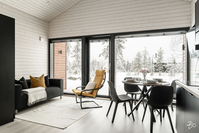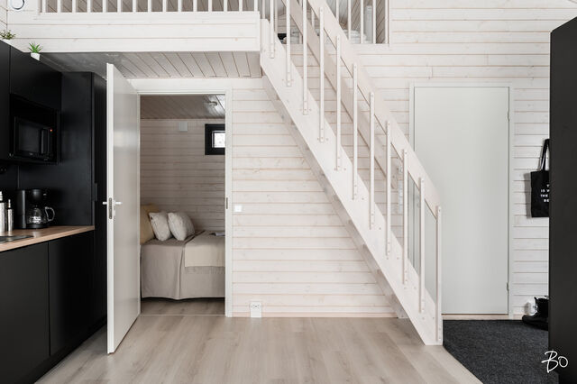 Etusivu / Pohjois-Pohjanmaa / Pudasjärvi / Luokkikuja 6 1 / 1 Luokkikuja 6 Syöte, Pudasjärvi | Mökki tai huvila | 2h, k, kph + parvi 164 000 € Velaton hinta 30,9 m2 Asuinpinta-ala 38,7 m2 Kokonaispinta-ala 2024 Rakennusvuosi Luokkikujan rauhassa, Syötteen tunturimaisemien sylissä, odottaa moderni ja harkiten toteutettu loma-asunto, jossa pienet neliöt on käytetty poikkeuksellisen fiksusti. Tämä vuonna 2023 rakennettu ja 2024 käyttöön otettu kokonaisuus tarjoaa vaivattoman tukikohdan niin aktiiviseen lomailuun kuin kiireettömiin irtiottoihin luonnon keskellä.Sisääntulon jälkeen avautuu valoisa oleskelutila, jossa olohuone ja keittiö muodostavat yhtenäisen, avaran kokonaisuuden. Suuret ikkunapinnat tuovat maiseman osaksi sisätiloja ja päästävät luonnonvalon virtaamaan sisään vuodenajasta toiseen. Tyylikäs, mustasävyinen keittiö on varusteltu nykyaikaisesti ja tarjoaa hyvät puitteet niin nopeille aamupaloille kuin pidemmille illallisillekin. Oleskelutilasta on suora käynti terassille, jossa on helppo kuvitella aamuhetket kahvikupin kanssa tai iltojen rauhalliset tauot ulkoilmassa.Alakerrassa sijaitseva makuuhuone on rauhallinen ja selkeälinjainen, ja kylpyhuone jatkaa modernia ilmettä laadukkailla materiaaleilla ja sähköisellä lattialämmityksellä. Parvi tuo kokonaisuuteen lisää tilaa ja joustavuutta - se toimii omana rauhallisena nukkuma- tai oleskelupaikkanaan.Rakennus on puurakenteinen, lämmityksestä vastaa sähköinen lattialämmitys ja ilmanvaihto on toteutettu koneellisella tulo- ja poistojärjestelmällä lämmön talteenotolla. Kokonaisuus on kunnoltaan hyvä, ja kauppaan kuuluu myös irtaimisto, mikä tekee käyttöönotosta erityisen helppoa. Lisäksi saunan sekä grillikodan rakentamiseen on jo olemassa rakennuslupa ja piirustukset - halutessasi voit siis täydentää kokonaisuutta entisestään.Sijainti Syötteellä tarjoaa upeat puitteet ympärivuotiseen lomailuun: hiihtoladut, rinteet, ulkoilureitit ja luonnonrauha ovat kaikki aivan lähellä. Tie tuo perille asti, ja kunnalliset vesi- ja viemäriliittymät lisäävät asumismukavuutta. Tämä on loma-asunto, jossa moderni mukavuus ja pohjoisen luonnon rauha kohtaavat harkitulla ja toimivalla tavalla.Tervetuloa tutustumaan!Jussi Suopanki | 040 019 5529 | jussi@bo.fi | Instagram jussisuopanki* * * * * * * * * *Harkitsetko oman asuntosi myyntiä? Pyydä minut arviokäynnille niin kerron samalla lisää tämänhetkisestä asuntomarkkinatilanteesta, palveluistani ja Bo:n loistavasta välityskonseptista sekä miten asunnonvaihdon suhteen kannattaa edetä. Olen saanut Bo Best -tunnustuksen vuonna 2023 ja 2025. Tunnustus myönnetään vuosittain poikkeuksellisen upeaa myynnillistä työtä tehneille Bo:n huippuvälittäjille. Ota siis yhteyttä minuun, autan mielelläni! Kiinnostaako tämä kohde?Ota meihin yhteyttä tai jätä viesti Jussi Suopanki asuntomyyjä, partner 040 019 5529 jussi.suopanki@bo.fi Tutustu välittäjään Varaa aika kalenteristani RakennusRakennusvuosi (aloitettu)2023Käyttöönottovuosi2024RakennusmateriaaliPuuKattotyyppiHarjakattoKatePeltiAsuinpinta-ala30,9 m2 (38,7 m2)Lisätietoja pinta-alastaAsuinpinta-alana rakennuspiirustusten mukainen huoneistoala. Rakennuspiirustusten mukaan kerrosala on 37,5 m2. Rakennuspiirustusten mukaan parven pinta-ala on 7,8 m2.Kerrokset1Muut tilat7,8 m2Lämmitysjärjestelmän kuvausSähköLämmön jakotapaSähköinen lattialämmitysHuoneluku2h, k, kph + parvi Keittiön muut varusteetMikroaaltouuni, astianpesukone, kiinteät valaisimet, liesituuletin / hormiLiesiIntegroitu liesi, erillisuuniKeittiön työtasojen materiaaliLaminaattiKeittiön lattiamateriaaliLaminaattiKeittiön seinien materiaaliMaalattu, puuKylpyhuoneen varustusPesukoneliitäntä, lattialämmitys, wc-istuin, suihku, kiinteät valaisimet, kylpyhuonekaapistoKylpyhuoneen lattiamateriaaliLaattaKylpyhuoneen seinämateriaaliKaakeliSaunan kuvaus, lisätiedot ja varustusSaunan ja grillikodan rakentamiselle on olemassa rakennuslupa ja piirustukset. Rakennustyö on aloitettava 28.12.2026 mennessä ja saatettava loppuun 28.12.2028 mennessä. Makuuhuoneen kuvaus, lisätiedot ja varustusLukumäärä: 1Lattiamateriaalit: laminaattiSeinämateriaalit: maalattu, puuOleskelutilojen kuvaus, lisätiedot ja varustusLattiamateriaalit: laminaattiSeinämateriaalit: maalattu, puuMuuta kauppaan kuuluvaaIrtaimisto kuuluu kauppaanKuntoHyvä KiinteistötiedotKiinteistötunnus615-408-17-79-L14TyyppiMääräalaTontin tyyppiTasamaatonttiTontin koko1 522,00 m2Tontin omistusVuokrattuTontin vuokrasopimus päättyy30.11.2053Tontin vuokra1 800,00 €Tontin vuokraajaPudasjärven kaupunkiPanttikirjat400 000,00 €Lisätietoja tontistaMaanvuokrasopimuksen mukaan vuokran määrä on 1800 euroa. Tontin vuokra on sidottu elinkustannusindeksiin seuraavasti: Vuosivuokraa (perusvuokra) muutetaan virallisen elinkustannusindeksin (v.1951 = 100) muutosta vastaavasti. Vuokran muutoksen suuruus ilmenee, kun perusindeksiä verrataan tarkistusindeksiin. Mikäli tarkistusindeksin luku on korkeampi tai alempi kuin perusindeksin luku, perusvuokraa korotetaan tai alennetaan vastaavasti.Tie perilleVesijohtoKunnanViemäriKunnanRakennusoikeus175,0 m2Lisätietoja rakennusoikeudestaPudasjärven kaupunki Rakennusvalvonta AsumiskustannuksetKiinteistövero286,06 €Muut maksut / lisätietoa maksuistaIlmoitetut kustannukset ja kulutusperusteiset maksut perustuvat nykyiseen kulutukseen ja ne saattavat muuttua ilmoitetuista käytön mukaan ja voivat siten olla pienempiä tai suurempia riippuen asukasmäärästä, asumistottumuksista ja palveluntarjoajasta. Sähkö kulutuksen/oman sähkösopimuksen mukaisesti. Sähköisten panttikirjojen siirtomaksusta vastaa ostaja. Varainsiirtovero 3 % kauppahinnasta. HintaVelaton hinta164 000,00 € (5 307,44 €/m2)Myyntihinta164 000,00 € (5 307,44 €/m2)VapautuuSopimuksen mukaanMaksuehtoKäteinen. Sinua voisi kiinnostaa Asunnon hinta-arvio ja arviokäynti Asunnon hinta-arvio ja arviokäynti Mitä 