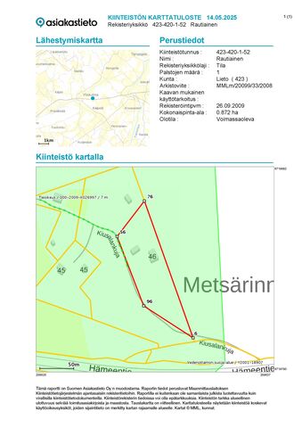 Etusivu / Varsinais-Suomi / Lieto / Kiusalankuja 46 1 / 1 Kiusalankuja 46 Yliskulma, Lieto | Omakotitalo | 7h+avok+2wc+khh+kph+s+4vh+parveke+kuisti+patio+savusauna+ulkosauna+talousrakennus 399 000 € Velaton hinta 250,0 m2 Asuinpinta-ala 2010 Rakennusvuosi Hurmaava kokonaisuus Liedon YliskulmallaLiedon Yliskulman rauhaisissa maisemissa odottaa harvinainen koti, joka yhdistää laadukkaan asumisen, luonnon läheisyyden ja tilan tuomat mahdollisuudet. Vuonna 2010 valmistunut, huoneistoalaltaan 250 m² kokoinen omakotitalo sijoittuu jykevälle kalliopohjaiselle rinnetontille, jota ympäröi yli 2,7 hehtaaria omaa maata. Kaksi kiinteistöä muodostavat kokonaisuuden, jonka kaltaisia tulee harvoin tarjolle.Päärakennuksen lisäksi pihapiiriin kuuluu talousrakennus, tunnelmallinen pihasauna, perinteinen hirsinen savusauna sekä oma lampi, jonka äärellä arki unohtuu. Myös ratsastusta harrastavalle paikka tarjoaa loistavat puitteet omalla ratsastuskentällään.Talo on suunniteltu vastaamaan isommankin perheen tarpeisiin. Kahteen kerrokseen jaettu pohjaratkaisu yhdistää tilan, toiminnallisuuden ja tyylin onnistuneesti. Yläkerrasta löytyy neljä reilunkokoista makuuhuonetta, joista yksi toimii päämakuuhuoneena. Käytännölliset vaatehuoneet 3 kpl, arjen keskuksena toimiva oleskelutila sekä katettu parveke tuovat mukavuutta jokapäiväiseen elämään.Alakerrassa sijaitsevat muun muassa kodin sydän olohuone ja keittiö sekä ruokailutila. Lisäksi kerroksessa on makuuhuone, saunaosasto, kodinhoitohuone ja runsaasti säilytystilaa. Kaksi suurta, katettua terassia kruunaavat kokonaisuuden toiseen niistä on upotettu oma ulkoporeallas.Kodissa on ajattomat materiaalit ja hyväkuntoiset pinnat. Tunnelma on rauhallinen ja kutsuva, ja ympäröivä luonto tuo siihen oman lisänsä.Tämä koti sopii täydellisesti luonnon rauhaa, yksityisyyttä ja aktiivista elämäntapaa arvostavalle. Savusaunan lämmössä tai omassa metsässä samoillen on helppo unohtaa kiireet ja nauttia elämästä. Liedon keskustan palvelut ovat silti lyhyen ajomatkan päässä täällä yhdistyvät maalaisidylli ja arjen sujuvuus poikkeuksellisella tavalla.Tule ja koe tämä ainutlaatuinen kokonaisuus itse.Esittelyt ja lisätiedot:Mauno Heinonen LKV040 937 2247 | mauno.heinonen@bo.fi Kiinnostaako tämä kohde?Ota meihin yhteyttä tai jätä viesti Mauno Heinonen kiinteistönvälittäjä LKV, KiAT, partner 040 937 2247 mauno.heinonen@bo.fi Tutustu välittäjään Varaa aika kalenteristani RakennusRakennusvuosi (aloitettu)2009Käyttöönottovuosi2010RakennusmateriaaliPuuKattotyyppiHarjakattoKateTiilikateAsuinpinta-ala250,0 m2 (250,0 m2)Lisätietoja pinta-alastaRakennuspiirustusten ja rakennuslupa-asiakirjojen mukaan asunrakennuksen kerrosala on 283m2 ja huoneistoala 250m2. Mainitut pinta-alat voivat poiketa virallisista nykystandardien mukaan mitattavista pinta-aloista olennaisestikin. Huoneiston todellinen pinta-ala voi siis olla esitteessä mainittua pienempi tai suurempi. Kohde myydään kokonaisuutena ja kohteen myyntihinta ei perustu rakennusten pinta-aloihin, vaan kokonaisuuteen.Kerrokset2Muut tilat0,0 m2Lämmitysjärjestelmän kuvausSähkö, ilmalämpöpumppuLämmön jakotapaSähköpatterilämmitys, sähköinen lattialämmitys, ilmalämpöpumppu, muuHuoneluku7h+avok+2wc+khh+kph+s+4vh+parveke+kuisti+patio+savusauna+ulkosauna+talousrakennusKeittiön kuvaus, lisätiedot ja varustusVaalea Moderni keittiö, jossa reilusti kaappi- ja työtilaa. Keittiön kalusteovet, työtasot ja yläkaapit uusittu 2024. Seinäpinnat maalattu, poltettu hirsipaneeli. Keittiön muut varusteetLiesituuletin, astianpesukone, irralliset kaapistotLiesiInduktioliesi, erillisuuniKeittiön lattiamateriaaliVinyyliKeittiön seinien materiaaliMaalattuPesutilojen kuvaus, lisätiedot ja varustusTyylikäs moderni kylpyhuone. Kylpyhuoneessa kaksi sadesuihkua.Kylpyhuoneen varustusLattialämmitys, suihkuKylpyhuoneen lattiamateriaaliLaattaKylpyhuoneen seinämateriaaliKaakeliSaunaAsunnossa on saunaSaunan kuvaus, lisätiedot ja varustusTodella tilava tunnelmallinen sauna, jossa lauteisiin integroitu pilarikius Erillinen ulkosauna sekä savusauna. Saunasta ikkuna ulos.Saunan lattiamateriaaliLaattaSaunan seinämateriaaliPuuWC-tilojen kuvausAlakerran wc:n lattia ja seinät laatoitettu. Yläkerran wc:n seinät laattaa ja lattiat vinyylilankkua. Alakerran ja yläkerran wc:ssä malja allas, alakaapit ja peili. Varustus: lattialämmitys, peilikaappi, bidee-suihkuLukumäärä: 2KodinhoitohuoneTilava valoisa kodinhoitohuone, jossa reilusti säilytystilaa ja kulku suoraan ulos. Lattiat ja seinät laattaa.Varustus: pesukoneliitäntä, lattiakaivo, pöytätasoMakuuhuoneen kuvaus, lisätiedot ja varustusViisi isoa makuuhuonetta. Lattiat vinyylilankkua ja seinät maalattuja.Lukumäärä: 5Lattiamateriaalit: vinyyliSeinämateriaalit: maalattuOleskelutilojen kuvaus, lisätiedot ja varustusTodella tilava valoisa olohuone, jossa lattiat vaaleaa vinyylilankkua uusittu 2023. Seinät maalattuja. Varaava takka.Lattiamateriaalit: vinyyliSeinämateriaalit: maalattu, tapettiMuut tilatKatettu terassi.TulisijaVaraava takkaTakkatiedotTakkaMuut säilytystilatVaatehuoneTehdyt korjaukset-Laminaattialattia vaihdettu vinyylilankkuun 2023. -Yläkerrassa porrasaukon vieressä oli alunperin 2 pienempää makuuhuonetta, väliseinä poistettu 2022 ja samalla tehty vaatehuone. -Ulkoverhouksen maalaus 2023. -Sisäseinät maalattu 2023Muuta kauppaan kuuluvaaSavusaunan vieressä palju. Katetulla terassilla ulkoporeallas. KuntoHyväEnergiatodistusKylläEnergialuokkaC2018Lisätietoja energiatodistuksestaVoimassa 28.8.2034 saakka. KiinteistötiedotKiinteistötunnus423-420-1-52, 423-420-1-53Kortteli/Kiinteistön nimiRautiainen ja TurkutalonmetsäTyyppiTilaTontin tyyppiTasamaatonttiTontin koko2,78 haTontin omistusOmaPanttikirjat500 000,00 €Rasitukset ja rasitteetSähköisiä panttikirjoja 3 kappaletta, yhteensä 500 000,00 euroa, jotka luovutetaan ostajalle kauppahintaa vastaan rasituksista vapaana. 