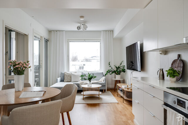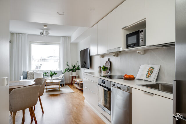 Etusivu / Varsinais-Suomi / Turku / Satamakatu 31 C 95 1 / 1 Satamakatu 31 C 95 Turun satama, Turku | Kerrostalo | 2h, k, kph, vh, et, lasitettu parveke (yj 2h+kt) 209 000 € Velaton hinta 43,0 m2 Asuinpinta-ala 159,10 €/kk Hoitovastike 2019 Rakennusvuosi Viidennen kerroksen valoisa ja avara kaksio hurmaa toimivalla pohjaratkaisullaan ja huolella suunnitelluilla neliöillään. Jokainen neliö on käytetty järkevästi, ja selkeä tilaratkaisu tekee kodista avaran, toimivan ja viihtyisän.Vaaleat pinnat ja kauniit parkettilattiat luovat modernin ja ajattoman ilmeen, johon on helppo tuoda oma tyyli. Suuret ikkunat tulvivat luonnonvaloa ja tekevät tunnelmasta raikkaan ympäri vuoden. Arjen luksusta tarjoaa iso, valoisa ja suojaisa parveke täydellinen paikka aamukahville, kesäilloille tai rauhallisiin hetkiin kaupungin yläpuolella. Eteisen käytännöllinen peilikaapisto sekä makuuhuoneen yhteydessä oleva vaatehuone tuovat runsaasti säilytystilaa. Tilava kylpyhuone viimeistelee asumismukavuuden, ja laadukkaat Pukkilan keraamiset laatat tuovat tilaan tyylikkyyttä ja kestävyyttä. Vesikiertoinen lattialämmitys lisää mukavuutta ympäri vuoden, ja kesähelteillä viilennyksestä huolehtii vuonna 2023 asennettu ilmalämpöpumppu.Harppuunakortteli on lähes energiaomavarainen, ekologinen ja yhteisöllinen asuinkokonaisuus, jossa asumismukavuus on mietitty viimeiseen asti. Korttelin viihtyisä sisäpiha tarjoaa loistavat puitteet vapaa-aikaan ja yhdessäoloon: käytössä ovat muun muassa ulkokuntosali, leikkipuisto, juoksurata sekä monipuoliset yhteiskäyttötilat, kuten asukkaiden varattavissa oleva sauna.Mahdollisuus pysäköintiin Harppuunaparkin parkkihallissa, jonne pääsee suoraan hissillä arkea helpottavaa mukavuutta parhaimmillaan.Alueen rauhallinen sijainti tarjoaa levolliset puitteet arkeen, samalla kun ympäristö kehittyy vauhdilla palveluiden ja liikenneyhteyksien osalta. Arkea helpottaa myös juuri valmistunut iso K-Supermarket, joka sijaitsee vain noin 400 metrin päässä.Täällä yhdistyvät moderni kaupunkiasuminen, kestävät ratkaisut ja huoleton arki koti, jossa viihdytään pitkään.Esittelyt ja lisätiedot:Mauno Heinonen040 937 2247 | mauno.heinonen@bo.fi Kiinnostaako tämä kohde?Ota meihin yhteyttä tai jätä viesti Mauno Heinonen kiinteistönvälittäjä LKV, KiAT, partner 040 937 2247 mauno.heinonen@bo.fi Tutustu välittäjään Varaa aika kalenteristani HuoneistoOsakkeet46026-46500HallintamuotoAsunto-osakeyhtiöHuoneluku2h, k, kph, vh, et, lasitettu parveke (yj 2h+kt)Kerros/Kerroksia5/6Asuinpinta-ala43,0 m2Muut tilat0,0 m2Lisätietoja pinta-alastaPinta-aloja ei ole tarkistusmitattu, huoneiston todellinen pinta-ala voi siis olla yhtiöjärjestyksessä, isännöitsijäntodistuksessa ja esitteessä mainittua pienempi tai suurempi. Isännöitsijäntodistuksen mukainen. Yhtiöjärjestyksen mukainen.NäkymätIso noin 10 neliön lasitettu parveke. ParvekeLasitettu, ulostyönnettyHissiTaloyhtiössä on hissiKeittiön kuvaus, lisätiedot ja varustusLattia lakattu parketti (Tammi Natur mattalakattu), seinäpinnat maalattu. Keittiön kiintokalusteet MDF ja tasot laminaattia, kalustevälitila Pukkilan keraaminen laatta. Kodinkoneet UPO, rst pintaiset.LiesiKeraaminen liesi, erillisuuniPesutilojen kuvaus, lisätiedot ja varustusBidee-suihku. Pukkilan keraaminen laatta. MDF kalusteet.Kylpyhuoneen varustusSuihkuseinä, pesukoneliitäntä, lattialämmitys, wc-istuin, suihku, peilikaappi, kiinteät valaisimet, kylpyhuonekaapistoMakuuhuoneen kuvaus, lisätiedot ja varustusLattia lakattu parketti (Tammi Natur mattalakattu), seinäpinnat maalattu.Lukumäärä: 1Oleskelutilojen kuvaus, lisätiedot ja varustusLattia lakattu parketti (Tammi Natur mattalakattu), seinäpinnat maalattu.Muutostyöt huoneistossaIlmalämpöpumppu Toshiba Haori 10, asennettu 15.7.2023KuntoHyvä Kiinteistö- ja yhtiötiedotYhtiön nimiAsunto Oy Turun Harppuunan PuosuTontin omistusOmaTontin koko1 333,00 m2Käyttöönottovuosi2019RakennusmateriaaliBetoniKattotyyppiAumakattoKatePeltiLämmitysjärjestelmäMaalämpö, muuEnergiatodistusKylläLisätietoja energiatodistuksestaVoimassa 8.4.2029 saakka.EnergialuokkaB2013Tehdyt korjaukset ja remontitKameravalvonnan asennus 2023 Kiinteiden lasitusten pesu 2024 Porraskäytävän valaistuksen (led-nauhat) uusiminen (takuutyö) 2024 Hissin evakuointiakkujen uusiminen 2024 Sähköisen porrasnäytön uusiminen 2024 Linnunpelättimien (tarrat) asennus porraskäytävän laseihin 2025 Parvekelasitusten ja kiinteiden lasitusten pesu 2025 Esteettömyyskartoituksen laatiminen 2025, sen tuloksena tilattu kääntöovikoneistot sisäpihan ja autohallin oviin, asennetaan tammi-helmikuun aikana Julkisivun puhdistus 2025 Toistuvat toimenpiteet: Ilmanvaihdon puhdistus ja säätö n. 8 vuoden välein, tehty 2019 Pihan kasvillisuuden tarkastus vuosittain, tehty 2024 Sammuttimien huolto kahden vuoden välein, tehty 2024 Katon, rännien ja syöksyjen tarkastus/puhdistus vuosittain, tehty 2024 Suursiivous (peruspesu ja vahaus) vuosittain/tarvittaessa, tehty 2023Tiedossa olevat tulevat korjaukset/remontitParvekelasitusten huolto 2025, tehdään tämän kevään aikana, jos hallitus tilaa työn. Kiinteistön kuntoarvio 2026 Ilmanvaihdon säätö ja puhdistus 2027 Palovaroittimien uusiminen 2029 Kiinteistöhuolto vaihtaa ilmanvaihtokoneen suodattimet kaksi kertaa vuodessa.Lainat1 843 963,64 €Kiinnitykset16 558 200,00 €IsännöitsijäIsännöintitoimisto Trio Isännöinti Oy Logomo Byrå, Junakatu 9, 20100 Turku Isännöitsijä Henri Kauhala 02 720 021KiinteistönhoitoHuoltoyhtiöTaloyhtiössä muutaVesikiertoinen jäähdytysjärjestelmä. Taloyhtiön yhteissaunatilat sijaitsevat pihan keskellä Korttelitalossa. Taloyhtiön pohjakerroksessa maantasossa sijaitsevia yhteistiloja ovat väestönsuoja, irtaimistovarastot, harrastus- ja kerhotila, ulkoiluväline- ja talovarastot, kuivaushuone, siivouskeskus sekä tekniset tilat. Korttelin yhteiskäytössä ovat mm. jätehuone, leikki- 