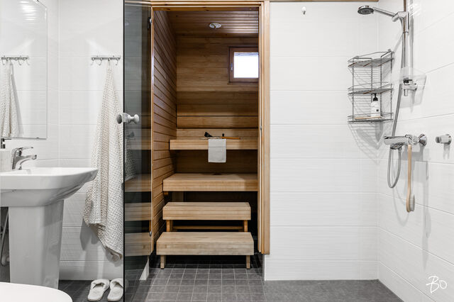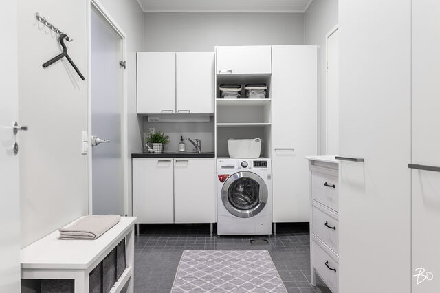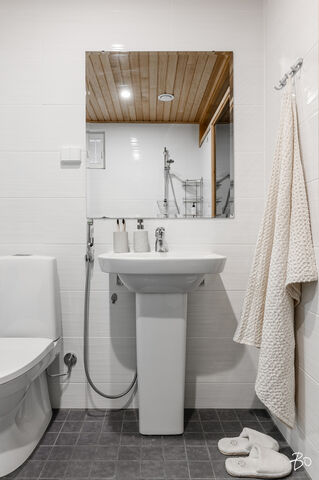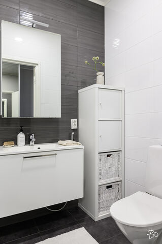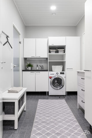 Varustus: pesukoneliitäntä, pesuallas, pyykkikaapit, keskuspölynimuri