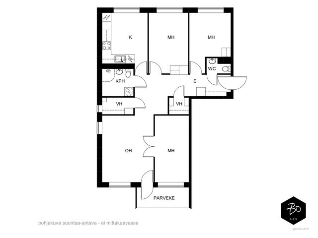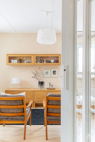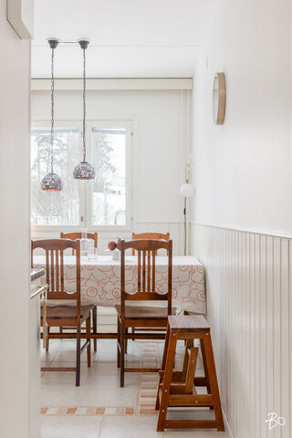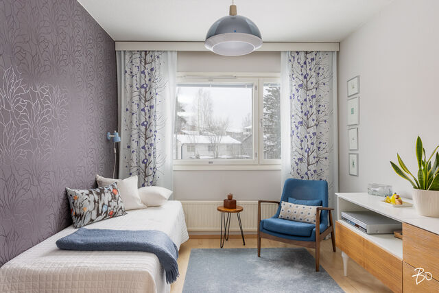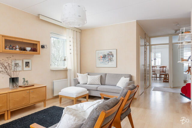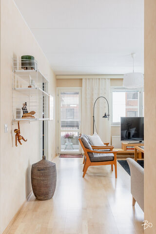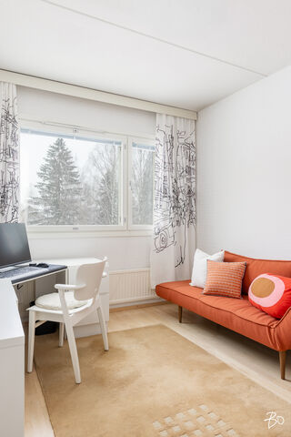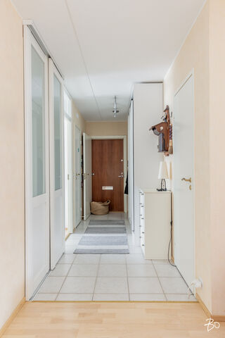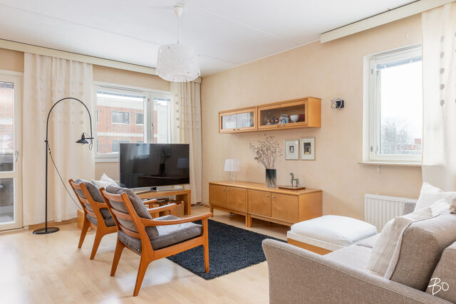 Tämä valoisa neljän huoneen ja keittiön päätyhuoneisto tarjoaa tilavat asuintilat perheelle ja tilaa arvostavalle asukkaalle. Huoneiston pohjaratkaisu on erittäin toimiva. Erillisessä keittiössä on hyvin tilaa ruokailuryhmälle, ja olohuone avautuu suoraan kodikkaalle parvekkeelle, mikä tuo mukavasti lisää oleskelutilaa. Kaksi vaatehuonetta takaavat riittävän säilytystilan.